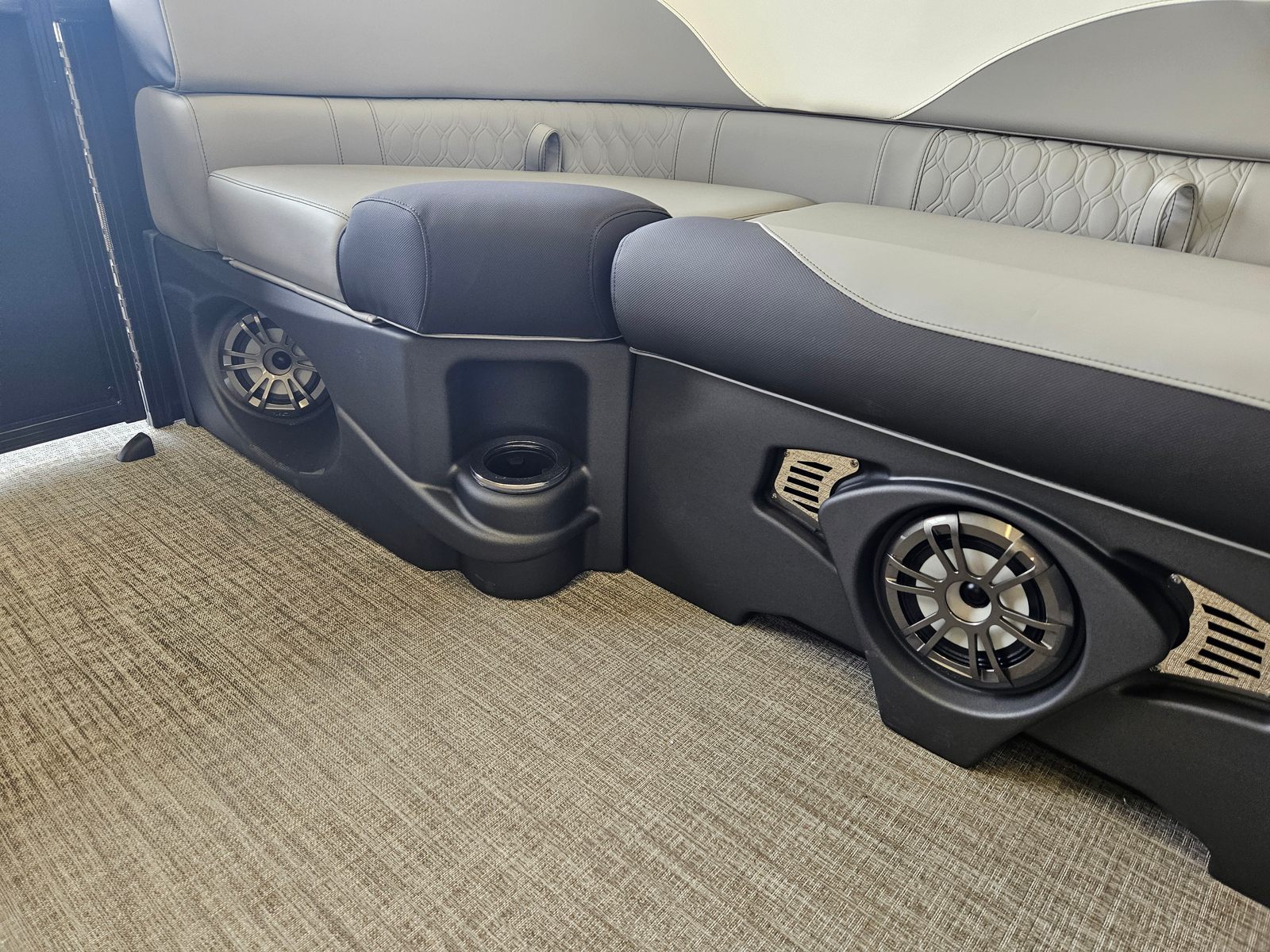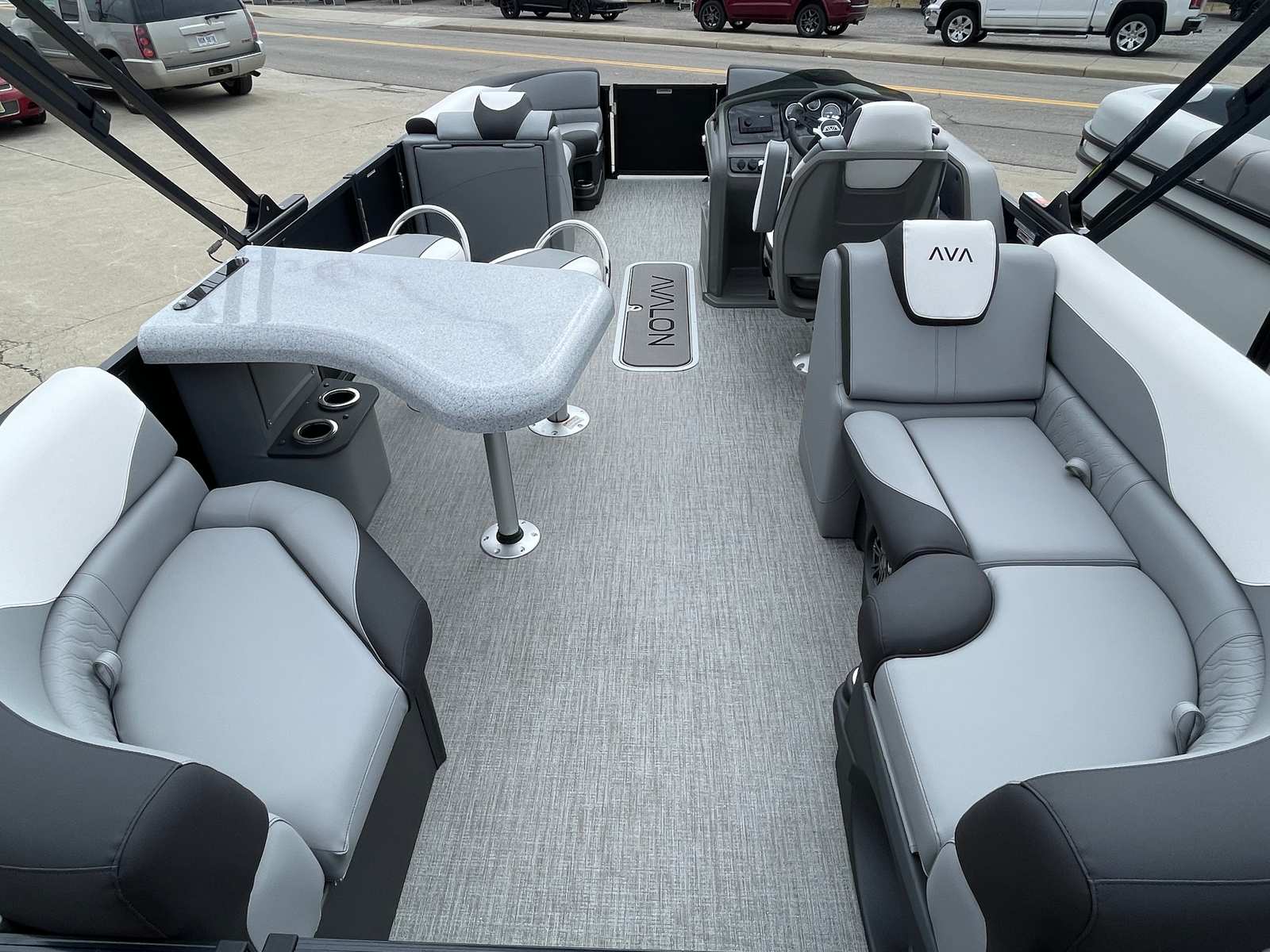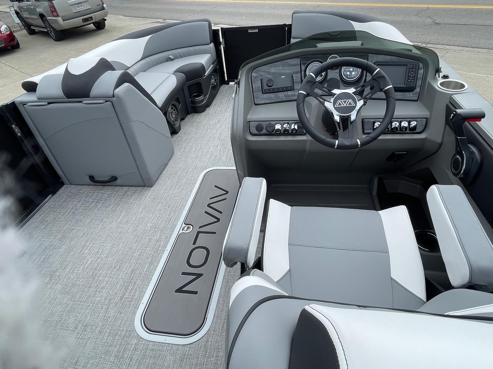 The Avalon LSZ ENT-23T is packed with premium features designed to maximize enjoyment and convenience. The LSZ Platinum Edition brings a touch of elegance, while the Sport Performance Package ensures top-tier handling and maneuverability. The Blue Ice Package adds a cool, modern aesthetic, complemented by the Blackout Package for a bold, sophisticated look. Step inside and you’ll be greeted by the Ultrafine Vinyl Upgrade, featuring Ultrafine Koolfab Graphite Base 1 Vinyl, Ultrafine Bright White Base 2 Vinyl, and Koolfab Black Accent Vinyl. These materials not only enhance comfort but also provide durability and easy maintenance. The Blue Canvas offers stylish protection from the sun, ensuring your time on the water is both enjoyable and safe.