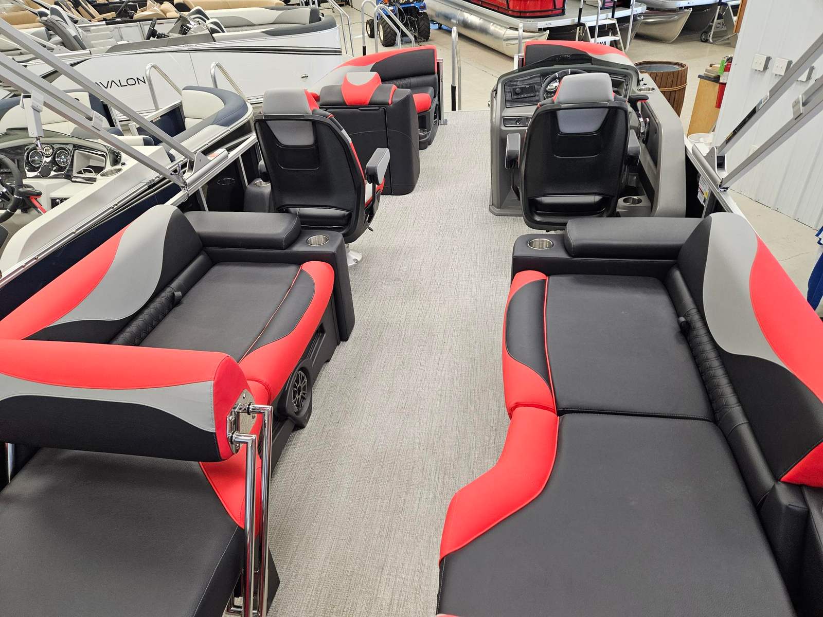 The 2026 Avalon LSZ QLS-23T pontoon boat for sale is a remarkable blend of innovation, luxury, and fun. With its powerful 150-horsepower engine, eye-catching black and red exterior, premium vinyl seating, and advanced Sport Performance Package, this boat is designed to deliver exceptional experiences on the water. The high back reclining chairs and protective black canvas add comfort and convenience, while the spacious layout makes it perfect for socializing, relaxing, or enjoying a variety of water activities. If you’re searching for an Avalon boat for sale that combines style, performance, and versatility, the LSZ QLS-23T is an outstanding choice. Don’t miss the opportunity to make unforgettable memories – contact your local dealer today to learn more about this exciting pontoon boat and start your next adventure!