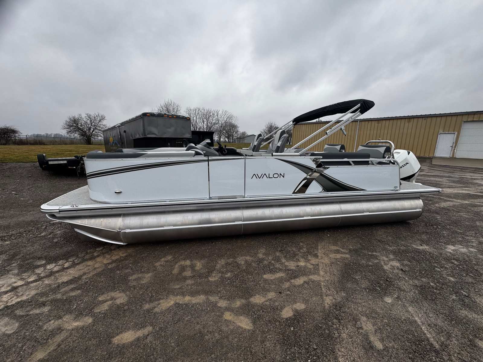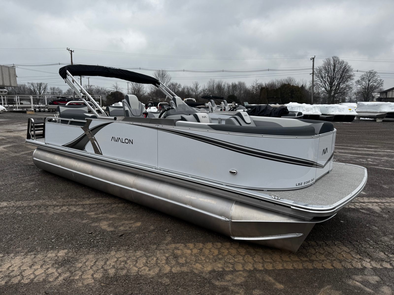 The 2026 Avalon LSZ QLS-23T is a 23-foot pontoon boat that exudes modern elegance and robust craftsmanship. Its sleek profile is highlighted by White Flake Metallic Walls, complemented by a matching 2nd Wall Color, ensuring you turn heads at every dock. The combination of Leon Graphite Base 1 Vinyl and Leon Silver Base 2 Vinyl, accented with Koolfab Charcoal, creates a sophisticated and inviting atmosphere onboard. As a new pontoon boat, this model offers the latest in design and technology, ensuring you enjoy every moment on the water with peace of mind and style.