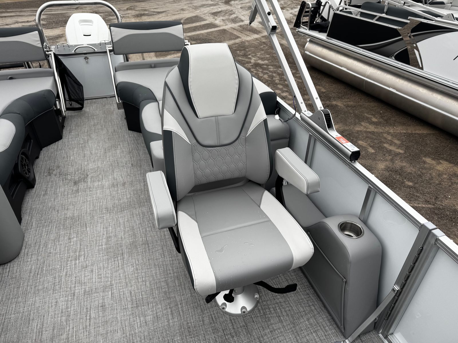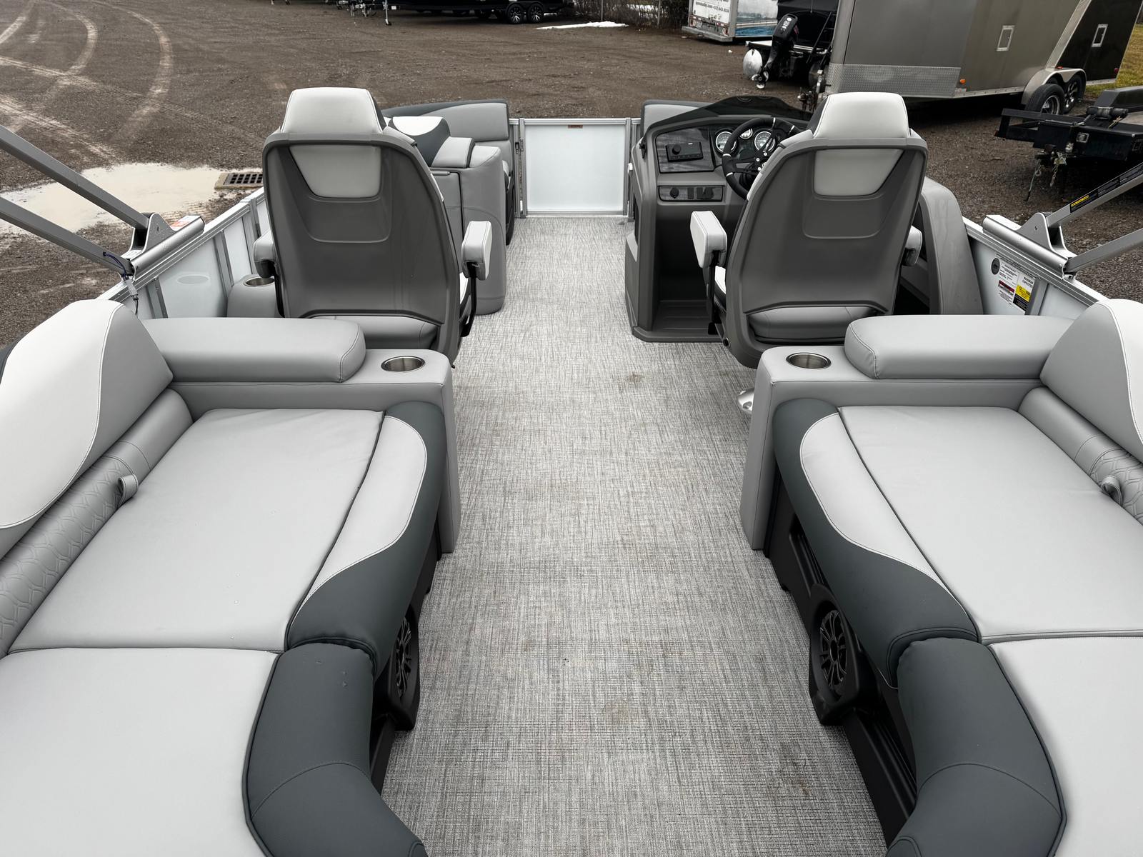 The Avalon LSZ QLS-23T is loaded with features designed to elevate your boating experience. The White Flake Metallic Walls and matching 2nd Wall Color not only add a touch of luxury but also provide durability and resistance to the elements. The interior is crafted with Leon Graphite Base 1 Vinyl and Leon Silver Base 2 Vinyl, offering a plush and comfortable seating area that is both stylish and easy to maintain. Koolfab Charcoal Accent Vinyl adds a modern flair, ensuring the interior feels as premium as it looks.For those who value comfort, the Port Sport High Back Reclining Chair and Starboard Sport High Back Reclining Chair provide exceptional support, making long days on the water more enjoyable. The Black Canvas offers shade and protection from the sun, allowing you to relax in comfort no matter the weather. The Sport Performance Package is engineered for those who crave excitement, delivering enhanced handling and stability for a more dynamic boating experience.