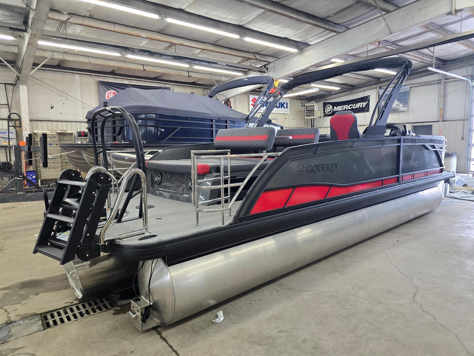 At the heart of the Godfrey MC 255 MTF is the powerful Suzuki DF350ATX engine, delivering an exhilarating 350 horsepower. This robust engine ensures smooth acceleration, impressive top speeds, and reliable performance, making it easy to navigate both calm waters and choppier conditions. The advanced engineering of the Suzuki DF350ATX guarantees fuel efficiency and quiet operation, so you can enjoy longer days on the water with less time spent refueling and more time making memories. Whether you are towing water toys, cruising with a full crew, or exploring new destinations, the MC 255 MTF’s performance will exceed your expectations.