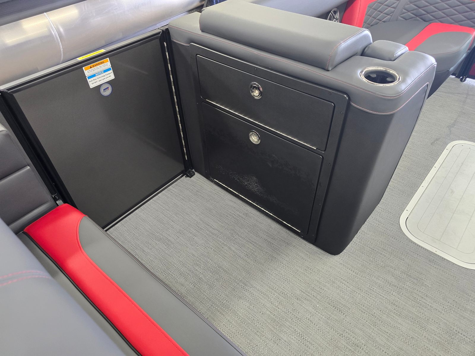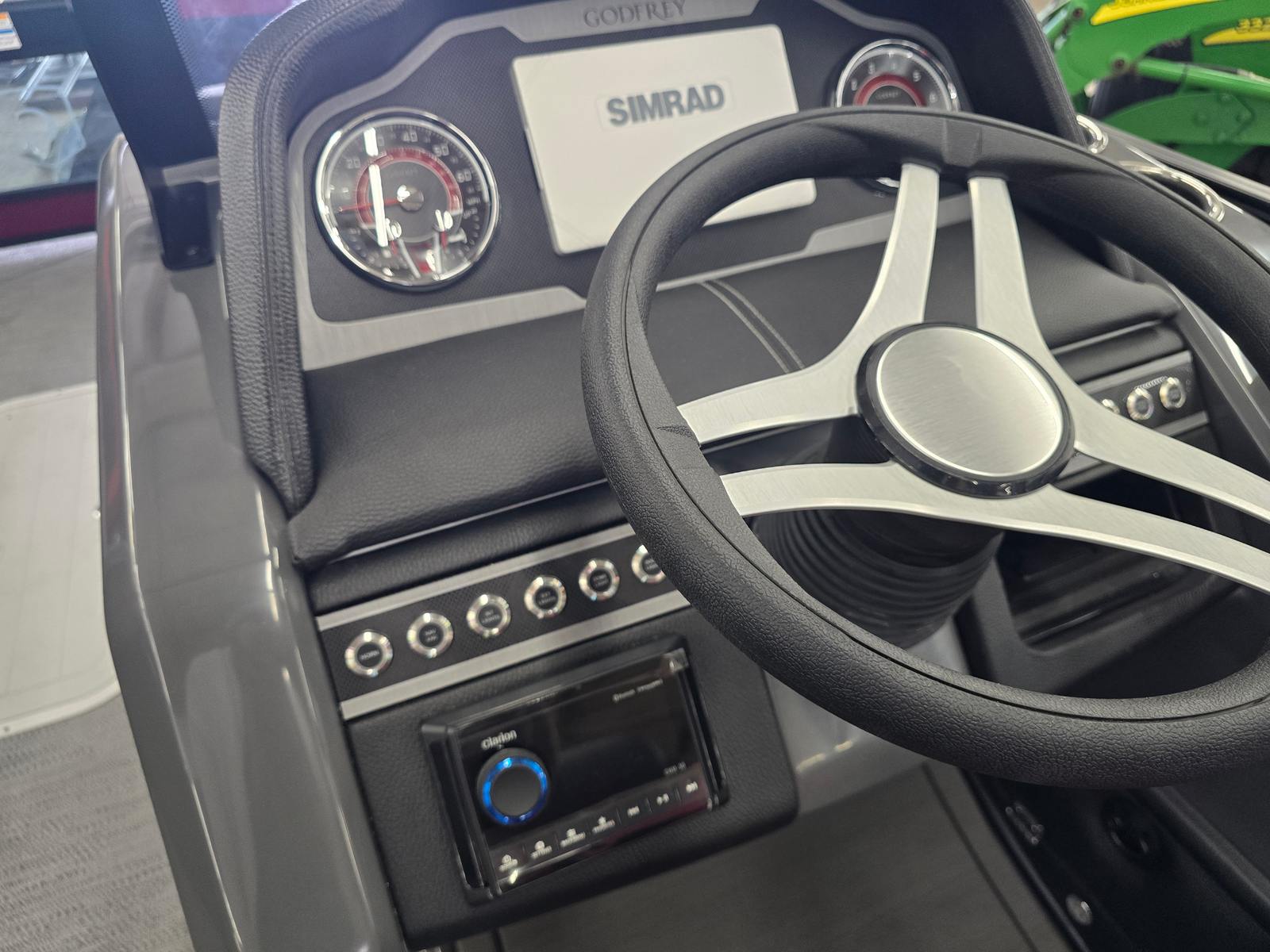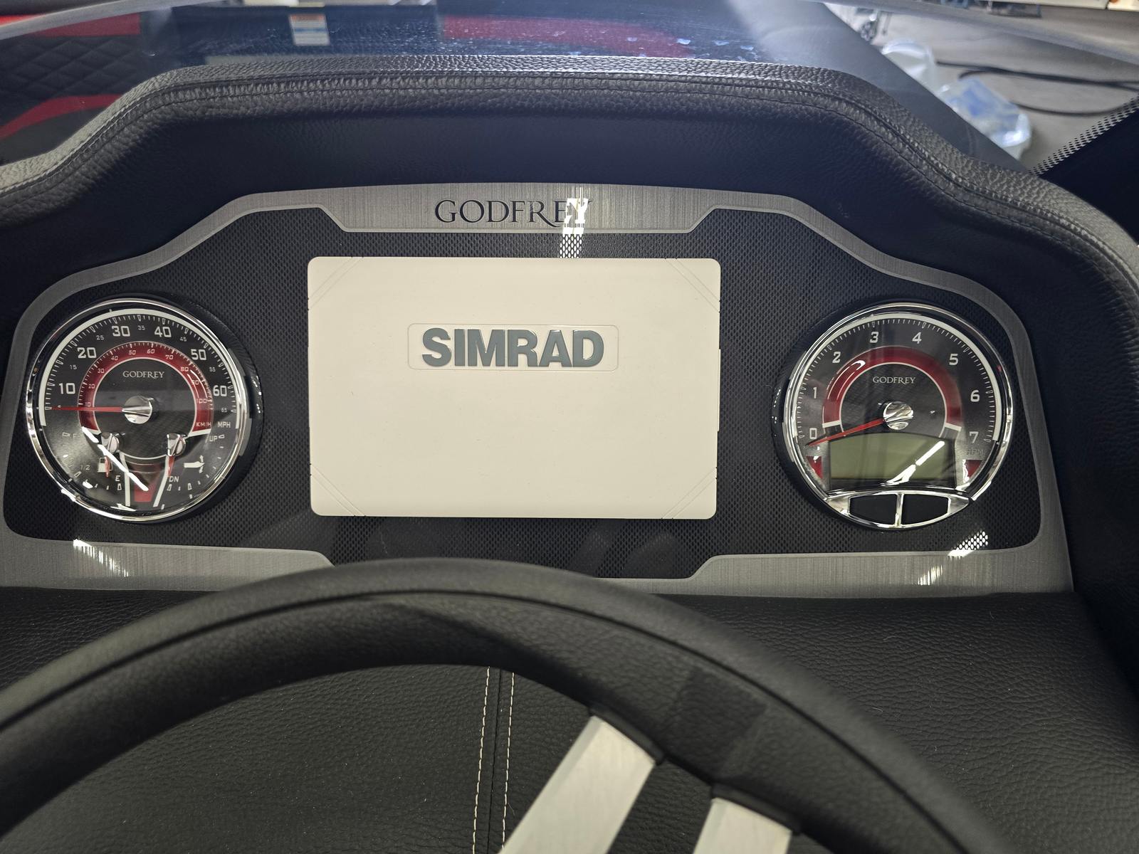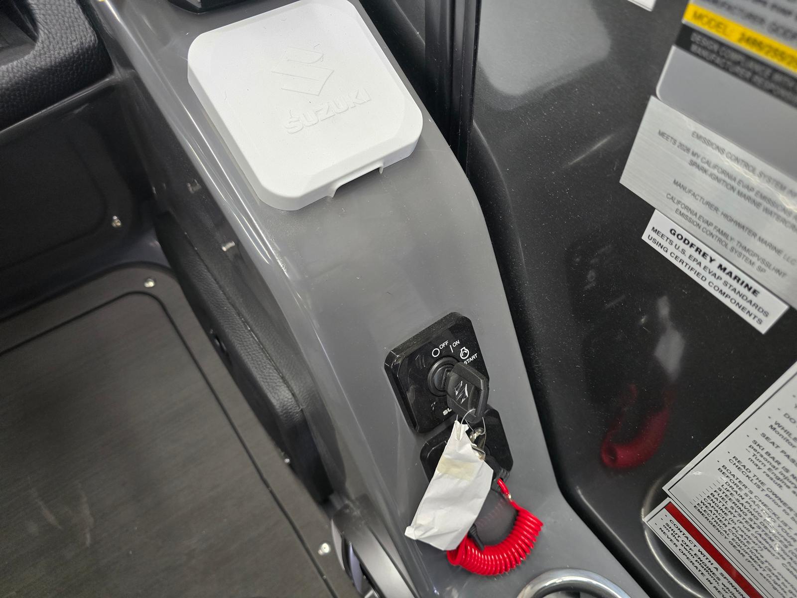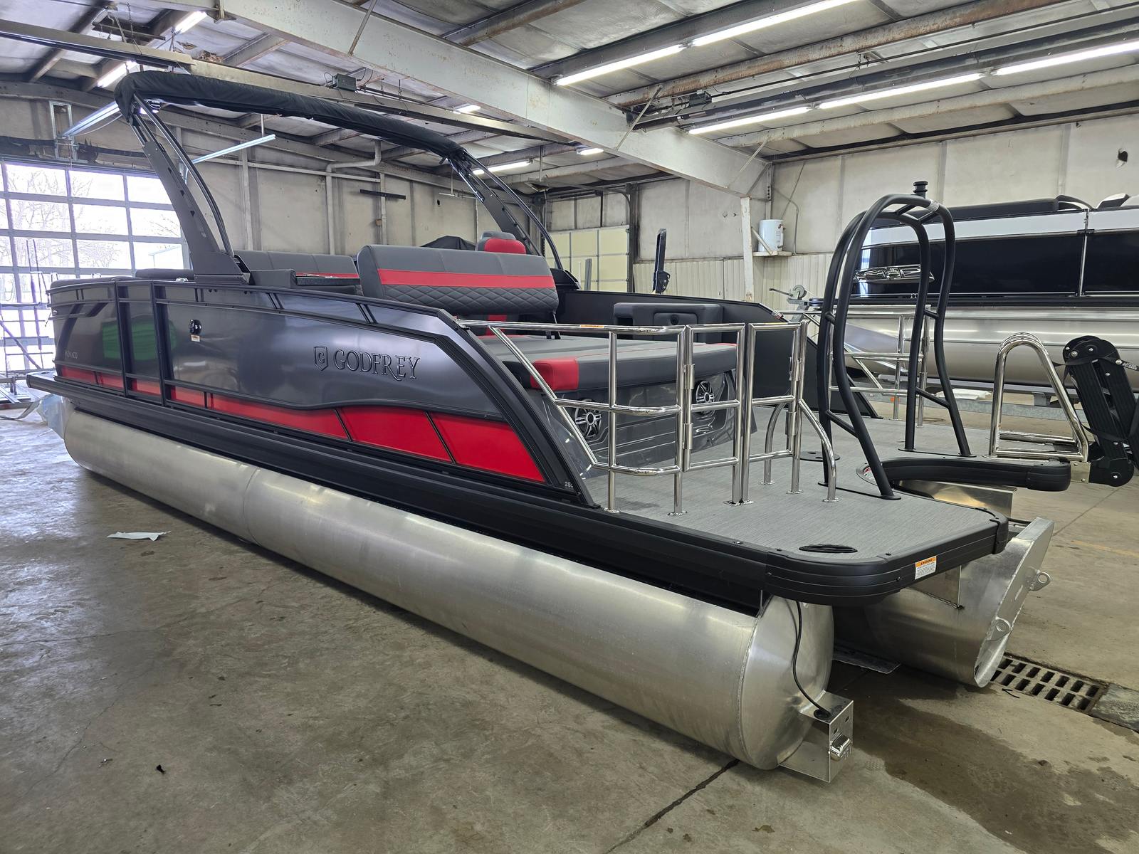 The 2026 Godfrey MC 255 MTF is loaded with innovative features designed to enhance your boating lifestyle. The Sport Wave Bimini in Black offers stylish and effective shade, keeping you and your guests cool and comfortable during sunny afternoons. The anchor bracket, mounted inside the in-floor storage, allows for safe and easily accessible storage of your box anchor, ensuring quick deployment and secure anchoring wherever your journey takes you.Practicality meets convenience with the dual battery switch and trays, providing reliable power management for all your onboard electronics and accessories. The helm features a tip-out, lockable glovebox for secure storage of valuables and essentials, while the in-floor storage mat in Slate adds a touch of sophistication and protection for your gear. Additional in-floor and transom storage options, including a spacious 25-inch transom compartment, offer plenty of room for water toys, life jackets, and other necessities.One of the standout features is the ScanStrut ATMOS Integrated Air Station, which brings modern convenience to your boating experience. This integrated air station makes inflating water toys, paddleboards, or even air mattresses quick and effortless, so you can spend more time enjoying the water and less time preparing for fun.