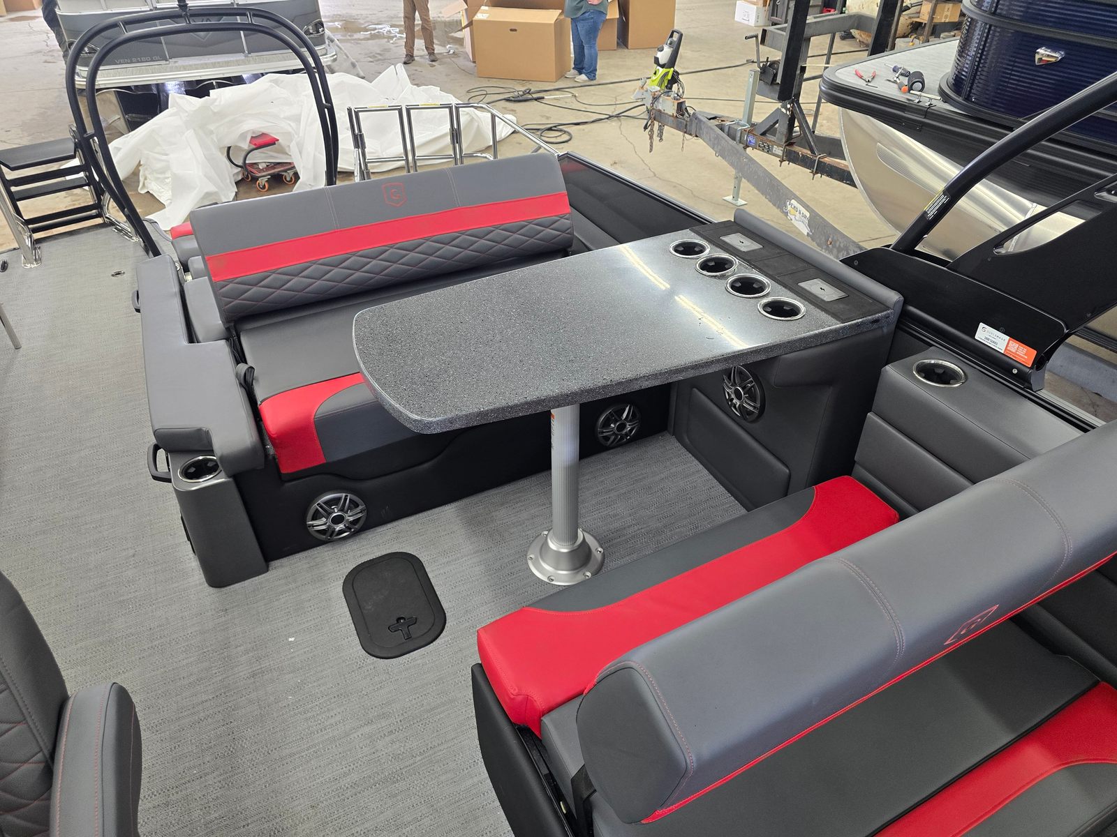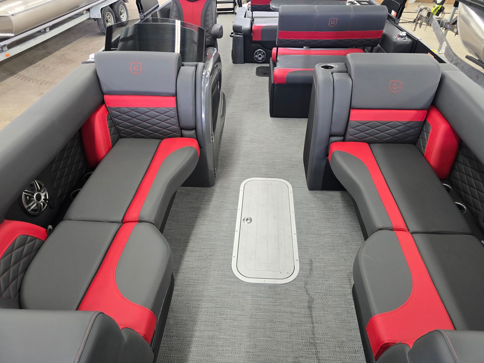 The Godfrey MC 255 MTF is as practical as it is luxurious. The in-floor and transom storage compartments provide ample space for all your gear, making it easy to keep the deck tidy and ready for action. The dual battery system ensures reliable power for extended outings, while the integrated air station adds a layer of convenience for families and watersports enthusiasts alike.Docking and maneuvering are made simple thanks to the pontoon’s responsive handling and well-balanced design. The anchor bracket’s strategic placement allows for quick and safe anchoring, giving you peace of mind when stopping to swim, fish, or relax. The durable construction and high-quality materials ensure that your investment will provide years of enjoyment with minimal maintenance.