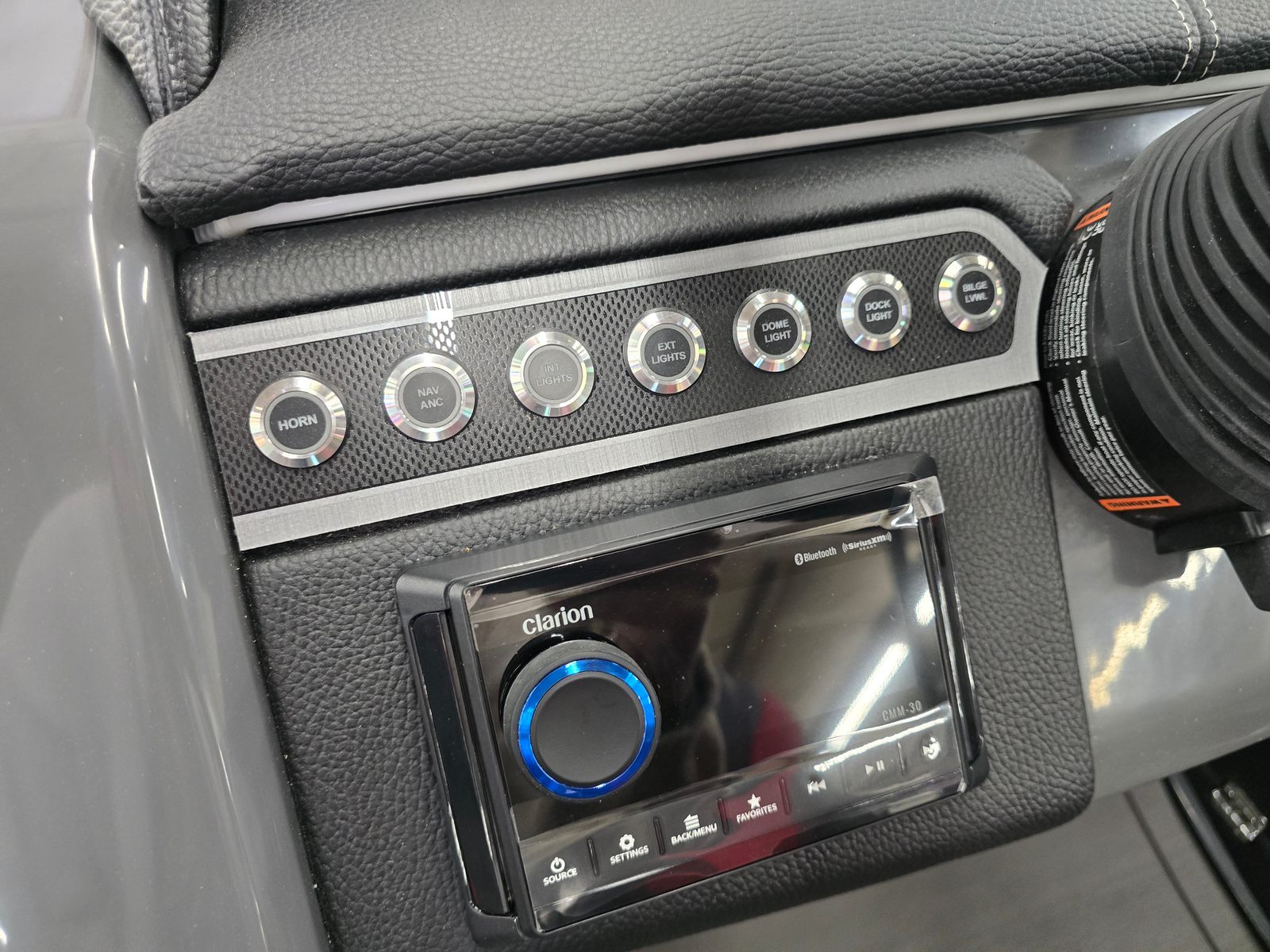 - Stereo; Clarion Gold - CMM-30 head unit with full color LCD display, Bluetooth, AUX input, 4x25W RMS output, (6) RGB Speakers with Sport Grilles w/ Chrome, 6 channel 450w amplifier
