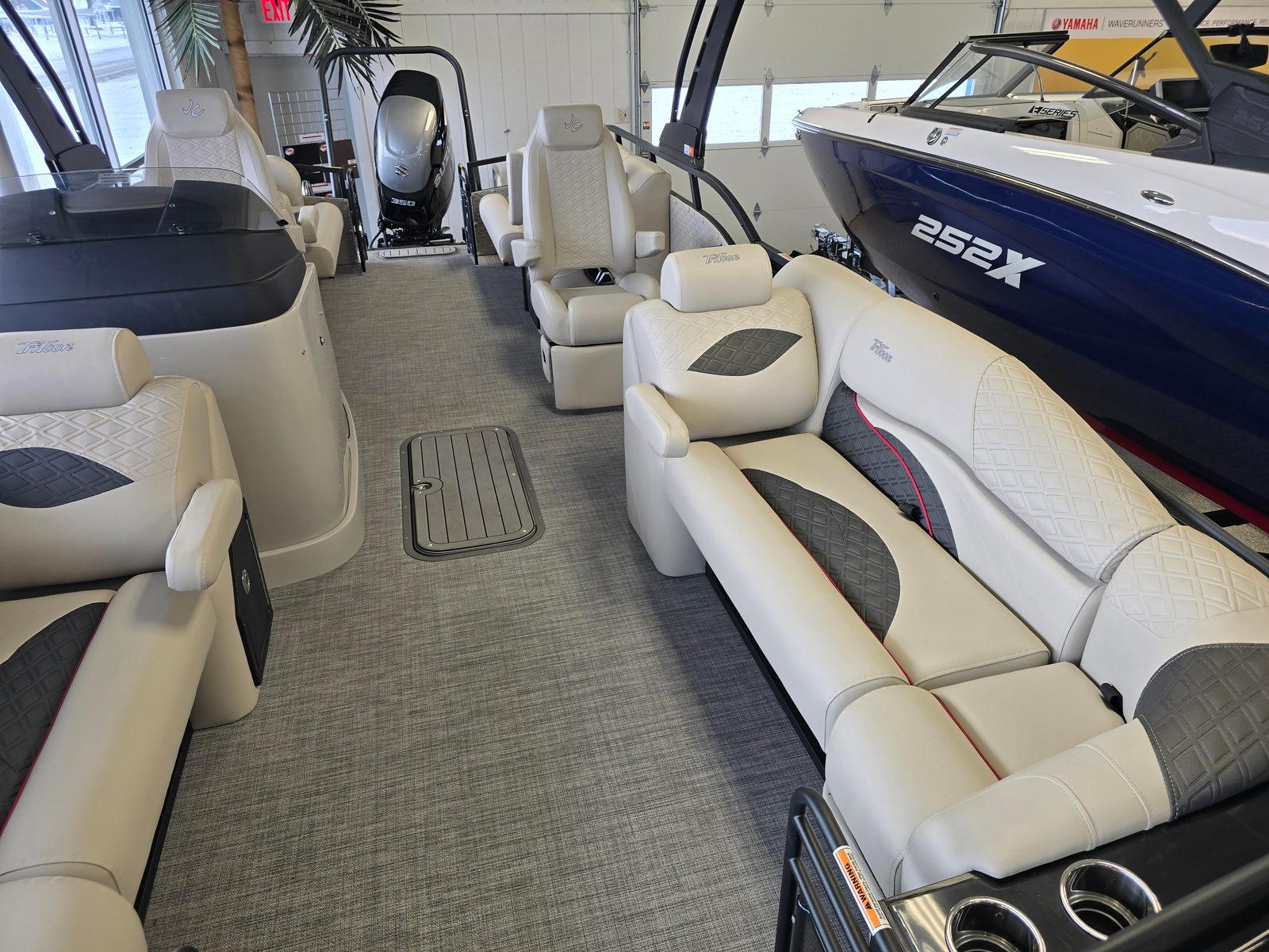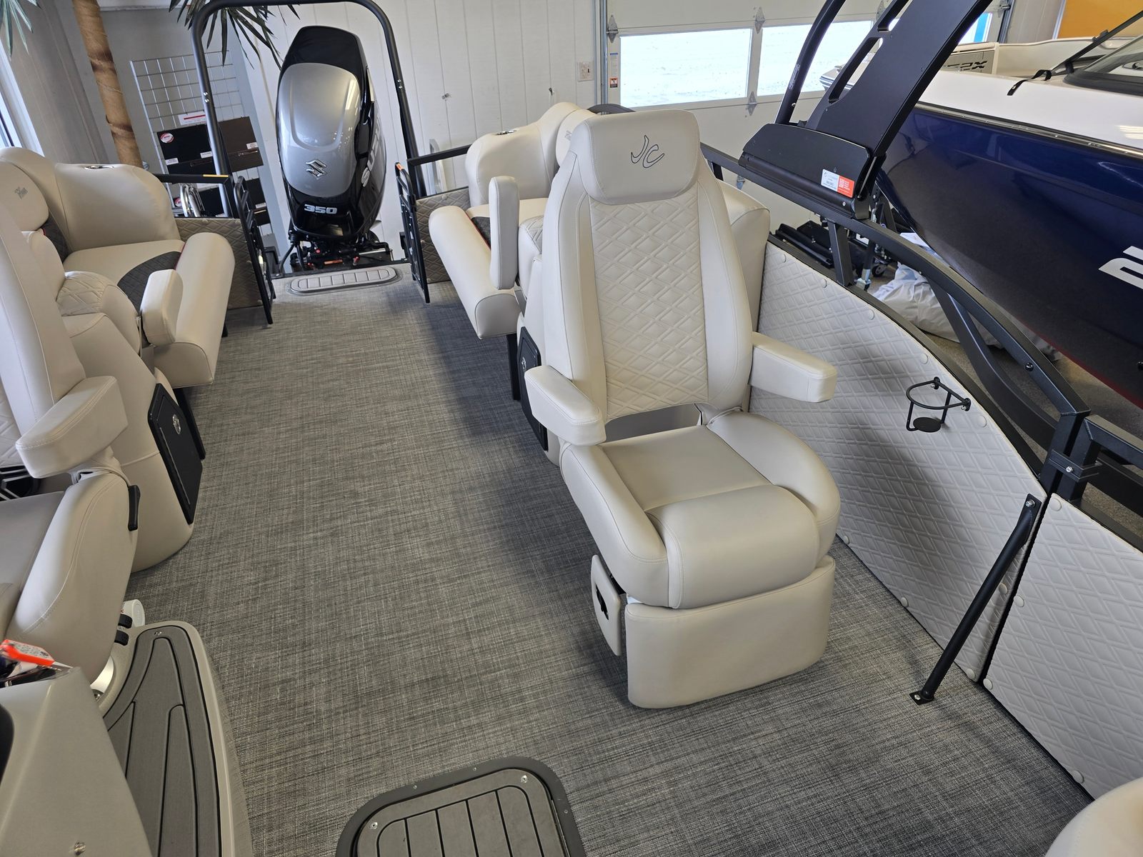Powering the Jc Sporttoon 24TT is a robust 350-horsepower engine, providing the muscle you need for exhilarating rides and smooth cruising. The prerig Suzuki setup ensures seamless integration and reliable performance, making every outing enjoyable and worry-free. With this level of horsepower, you’ll experience quick acceleration, effortless maneuverability, and the ability to handle a variety of water conditions with confidence. Whether you’re towing water toys, exploring new coves, or simply enjoying a leisurely cruise, the Sporttoon 24TT delivers the performance you expect from a premium pontoon boat.