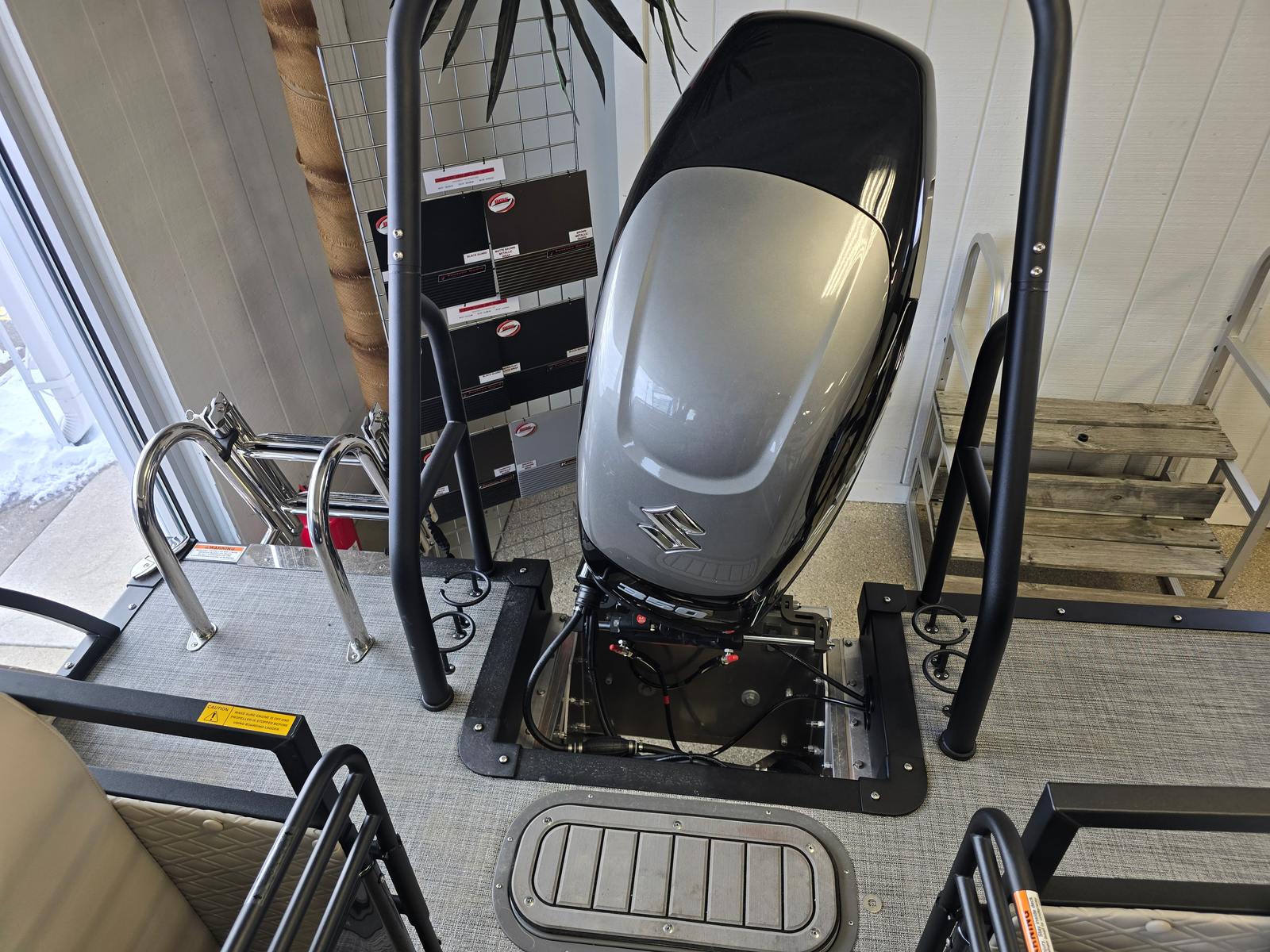 The Jc Sporttoon 24TT is as practical as it is beautiful. Its spacious layout offers plenty of room for storing your gear, water toys, and refreshments, so you’re always prepared for a day of fun. The easy-to-clean JC Grass Flooring means you can spend less time on maintenance and more time enjoying the water. Docking is a breeze thanks to the boat’s maneuverability and streamlined design, making it simple to access your favorite spots or return to shore after a day of adventure.Fuel efficiency is a key consideration for any boat owner, and the Sporttoon 24TT’s prerig Suzuki setup is engineered for optimal performance and reliability. You’ll appreciate the balance of power and efficiency, allowing you to make the most of your time on the water without worrying about excessive fuel consumption. The absence of a sundeck and starboard gate keeps the layout open and accessible, making it easy to move around and enjoy every inch of the boat.