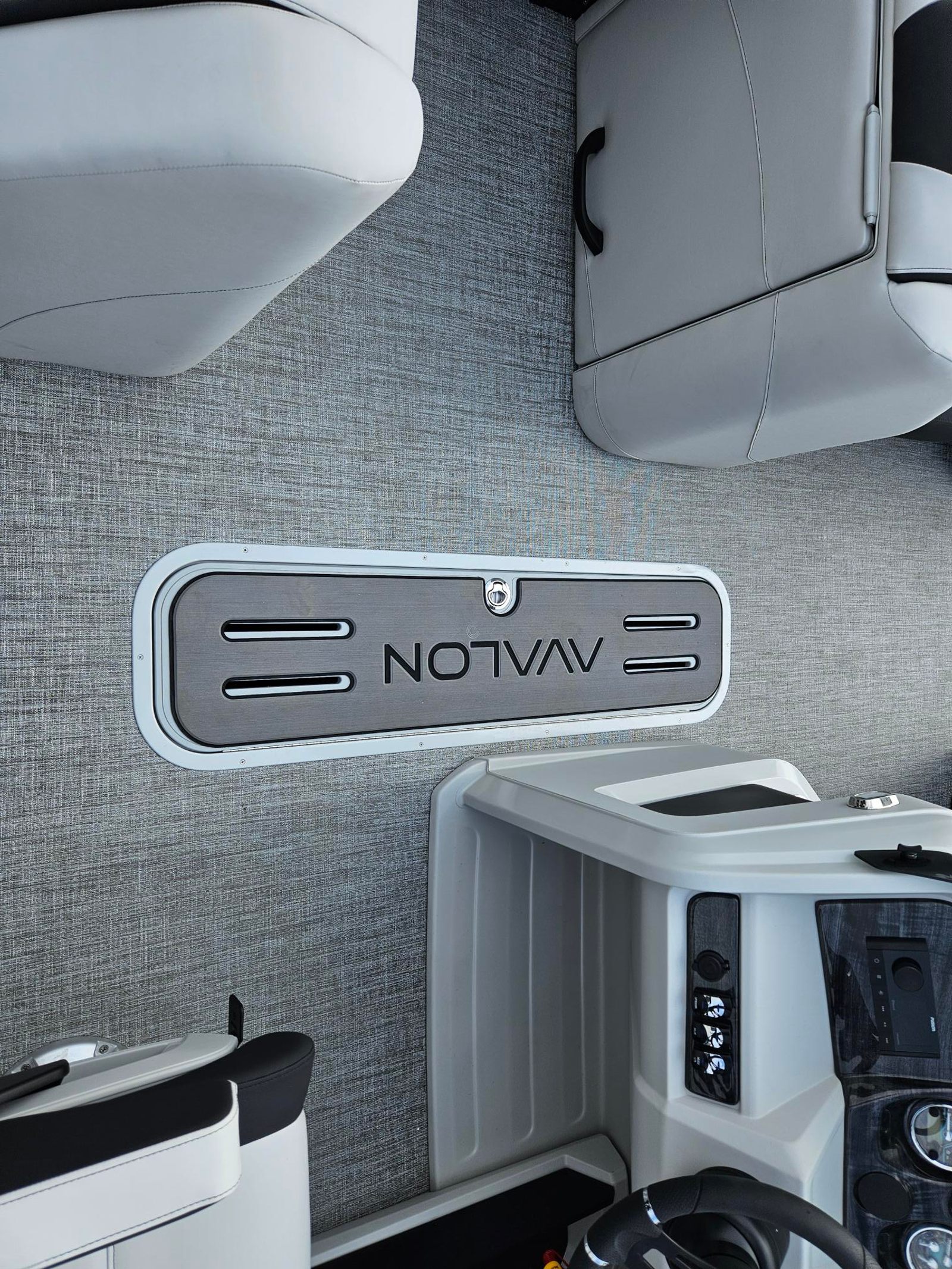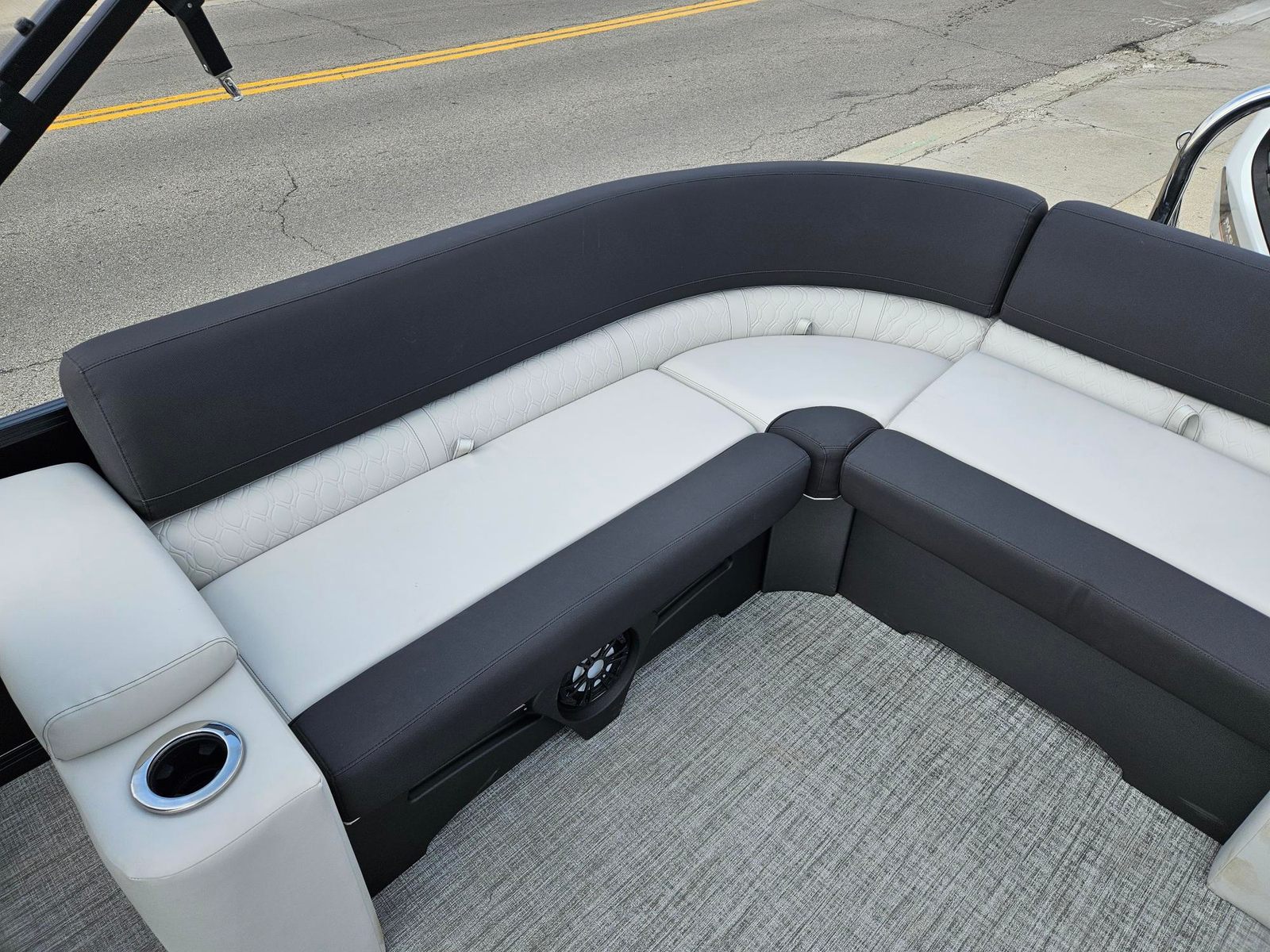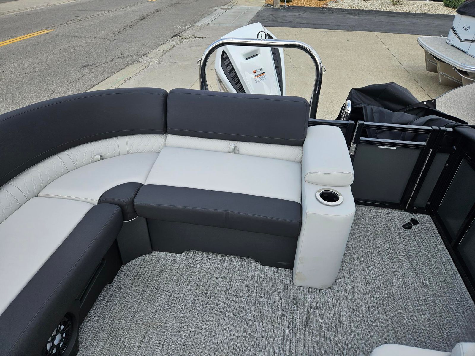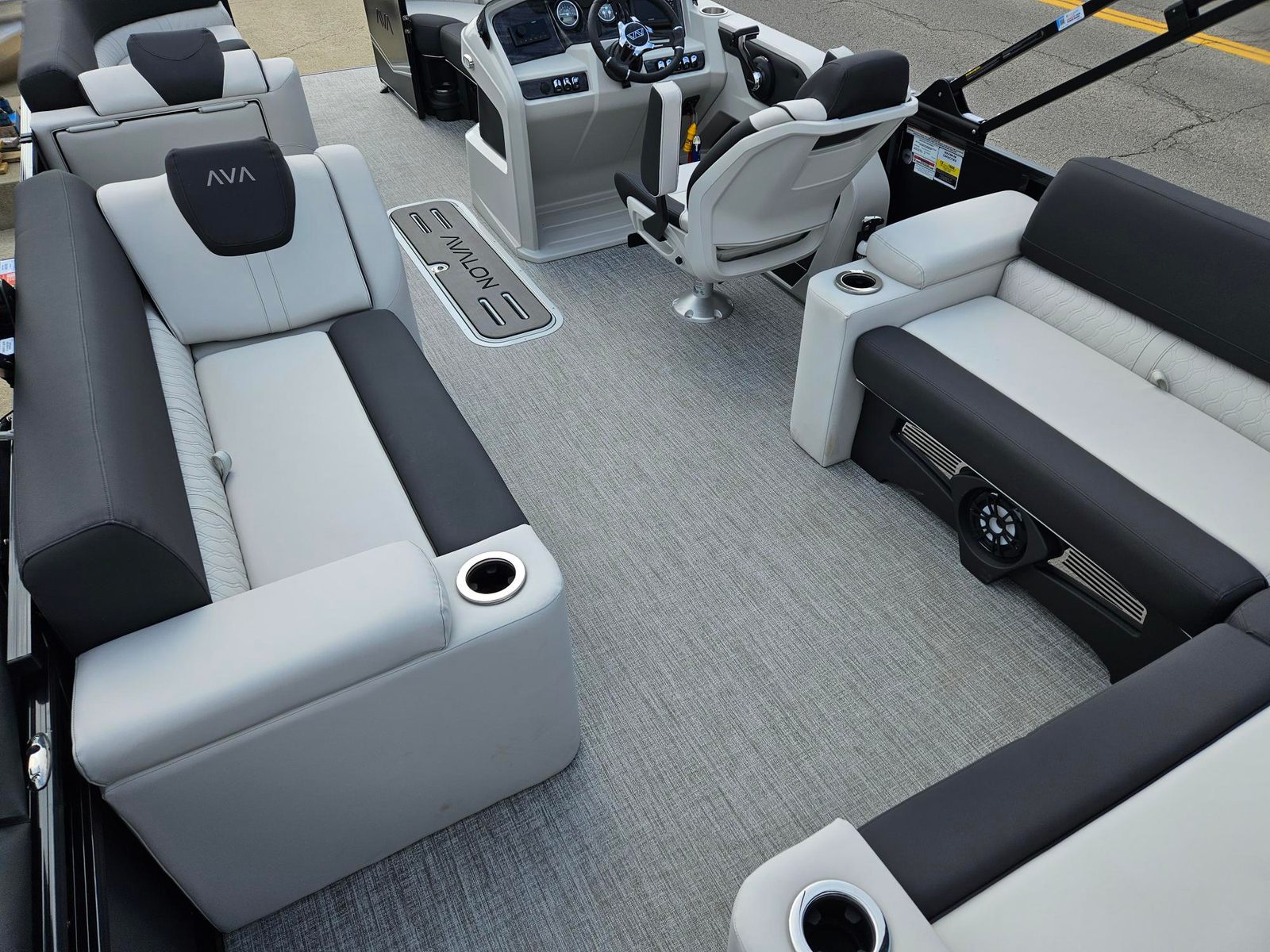 The Avalon LSZ Elite-23T is loaded with special features that set it apart from other pontoon boats for sale. The LSZ Platinum Edition package elevates the boat’s aesthetics and comfort, ensuring you and your guests enjoy a premium experience every time you step aboard. The 27 Waveglider Package enhances stability and ride quality, making every journey smooth and enjoyable, even in choppier conditions.For those who appreciate a touch of elegance, the Blue Ice Package adds a cool, modern flair to the boat’s appearance, while the Blackout Package delivers a sleek, contemporary look that is sure to turn heads at the marina. The seating is upholstered in Ultrafine Silver Base 1 Vinyl, complemented by Koolfab Black Base 2 Vinyl and Koolfab Black Accent Vinyl, creating a luxurious and inviting atmosphere. The Black Canvas adds a final touch of sophistication, providing shade and protection when needed.