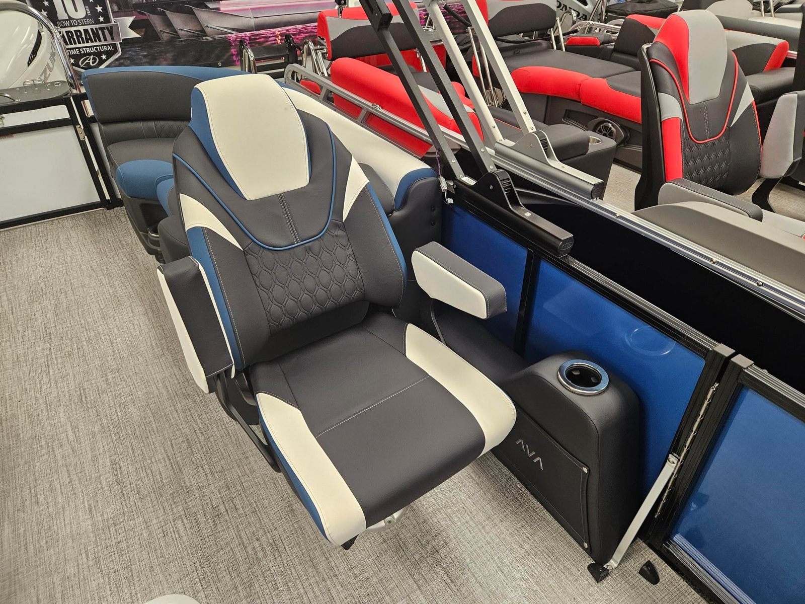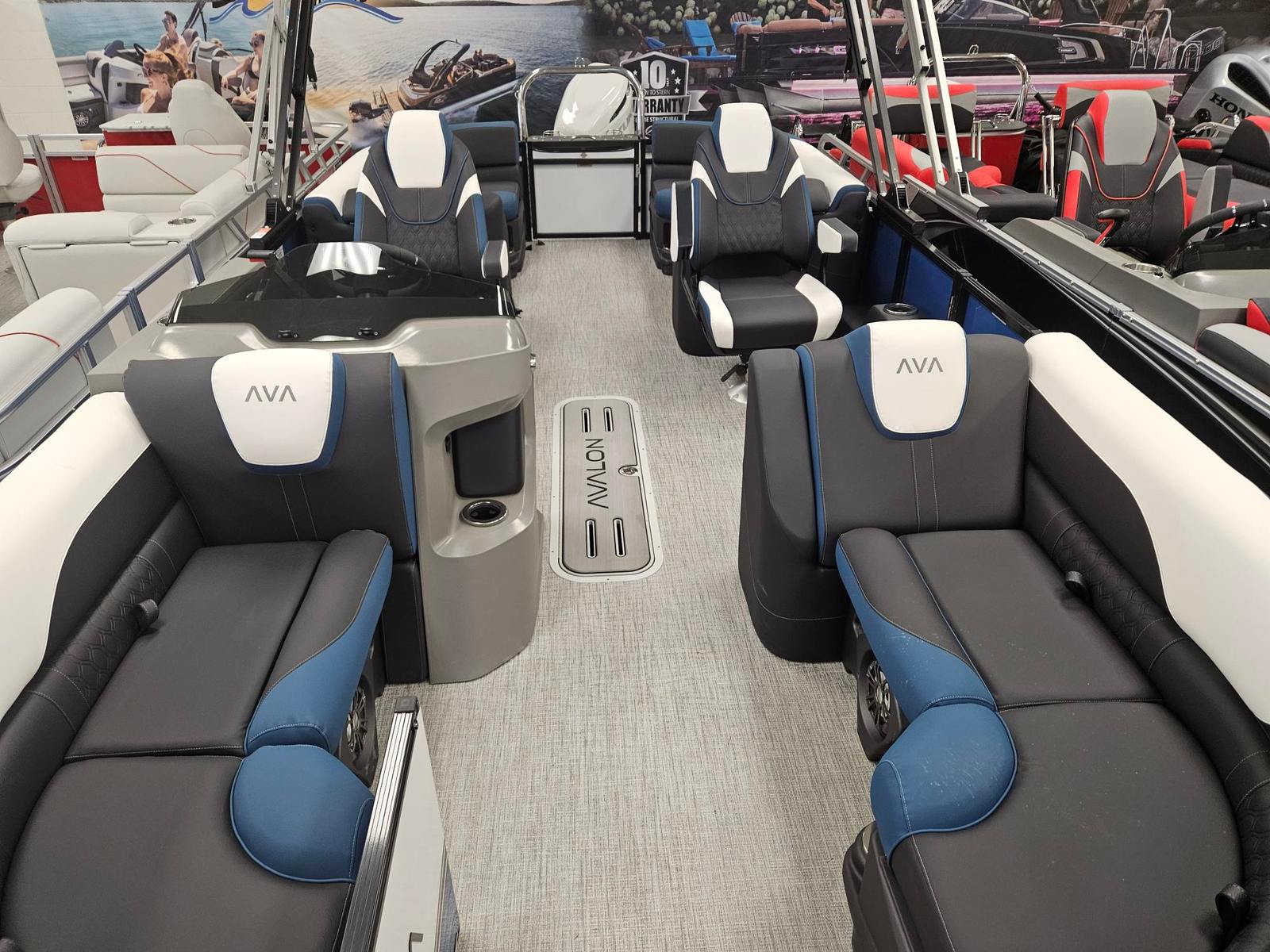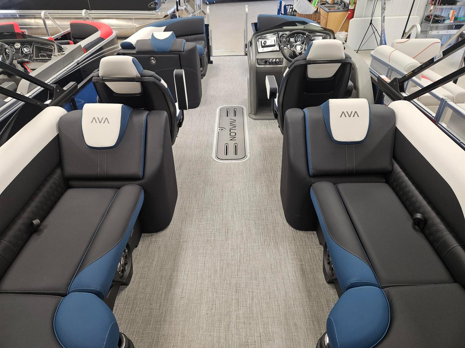 The 2026 Avalon LSZ QL-23T pontoon boat measures an impressive 24.5 feet in length, offering ample space for relaxation and recreation. As a new addition to the Avalon lineup, this model showcases the brand’s commitment to quality craftsmanship and innovative design. The LSZ QL-23T stands out with its sleek Caribbean Blue Walls, complemented by a striking White Flake Metallic second wall color. The combination of Black Fresco Base 1 Vinyl, Ultrafine Bright White Base 2 Vinyl, and Caribbean Blue Accent Vinyl creates a sophisticated and inviting atmosphere onboard. This Avalon boat for sale is not just a vessel; it is a statement of style and luxury.