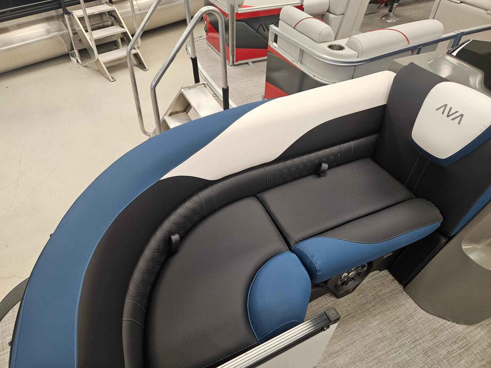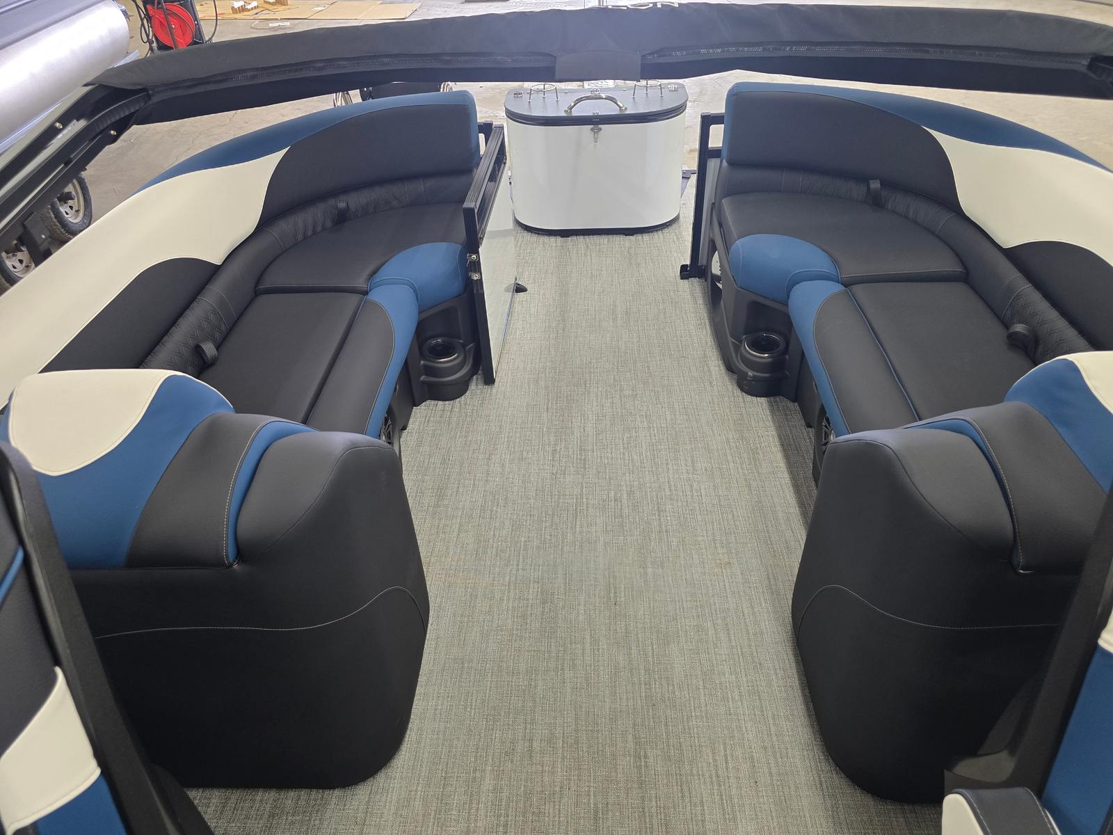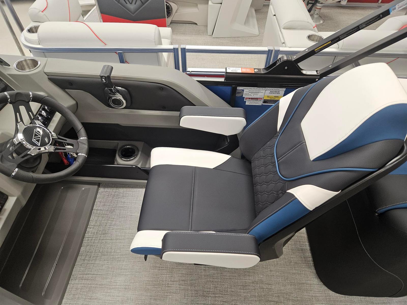 The Avalon LSZ QL-23T is packed with features designed to elevate your time on the water. The LSZ Platinum Edition brings a host of premium touches, from upgraded materials to refined finishes. The Blue Ice Package adds a cool, modern flair, making evening cruises even more magical. The Caribbean Blue Walls and White Flake Metallic accents create a visually stunning exterior, while the Black Fresco and Ultrafine Bright White vinyls, accented with Caribbean Blue, offer both comfort and durability for all-day lounging. The spacious 24.5-foot layout provides plenty of room for guests, making it easy to host gatherings or enjoy quiet moments with loved ones. Every detail of this pontoon boat is crafted to enhance your comfort and enjoyment.