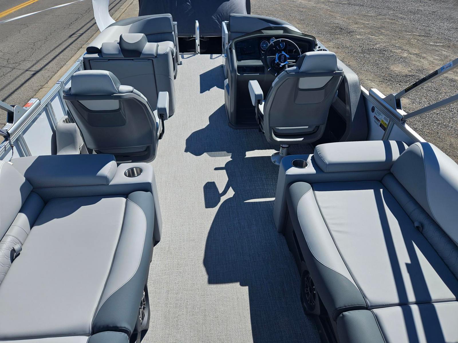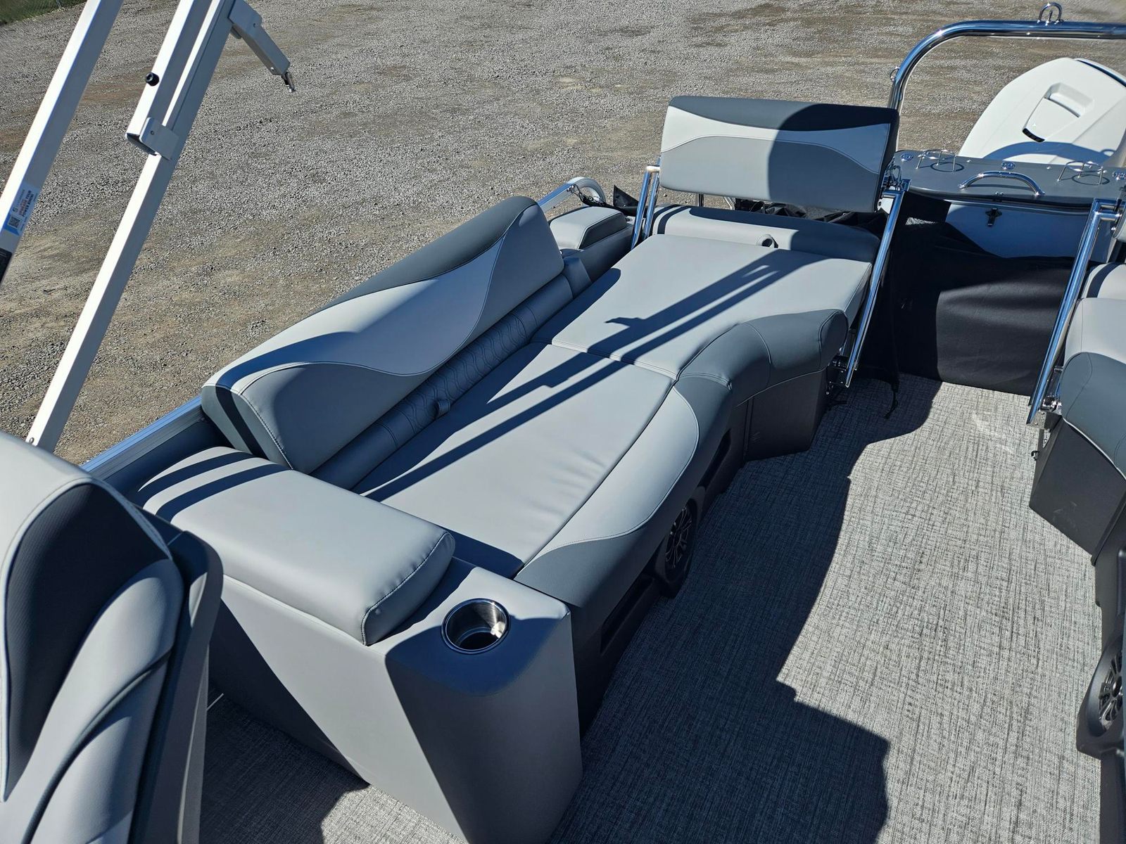 The Avalon LSZ QLS-23T is loaded with features designed to elevate your boating experience. The White Flake Metallic Walls and matching 2nd Wall Color not only add a touch of luxury but also provide durability and resistance to the elements. The interior is crafted with Leon Graphite Base 1 Vinyl and Leon Silver Base 2 Vinyl, offering a plush and comfortable seating area that is both stylish and easy to maintain. Koolfab Charcoal Accent Vinyl adds a modern flair, ensuring the interior feels as premium as it looks.For those who value comfort, the Port Sport High Back Reclining Chair and Starboard Sport High Back Reclining Chair provide exceptional support, making long days on the water more enjoyable. The Black Canvas offers shade and protection from the sun, allowing you to relax in comfort no matter the weather. The Sport Performance Package is engineered for those who crave excitement, delivering enhanced handling and stability for a more dynamic boating experience.