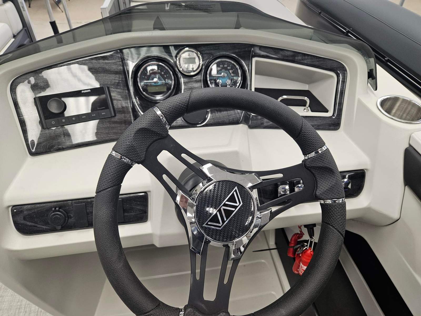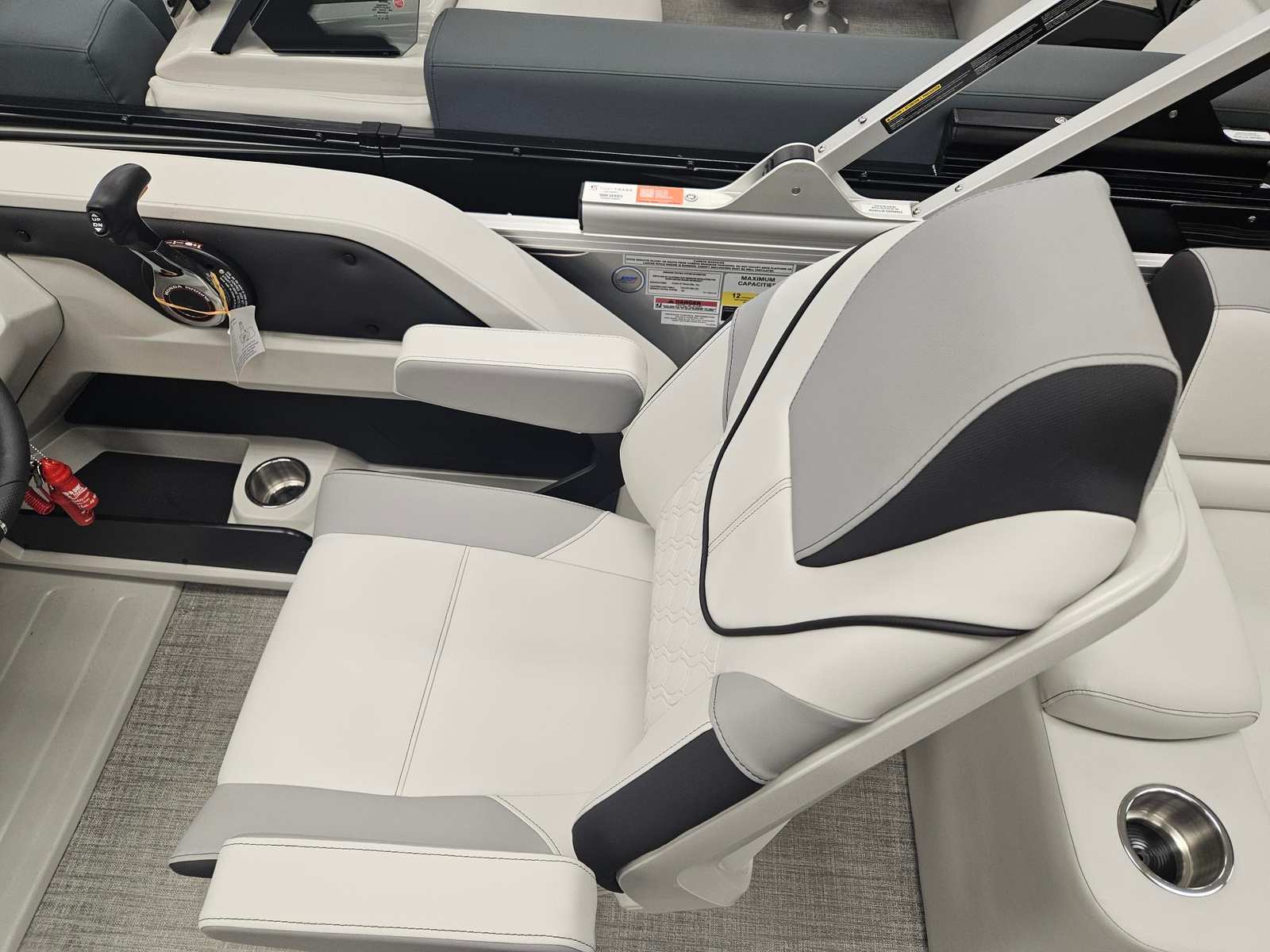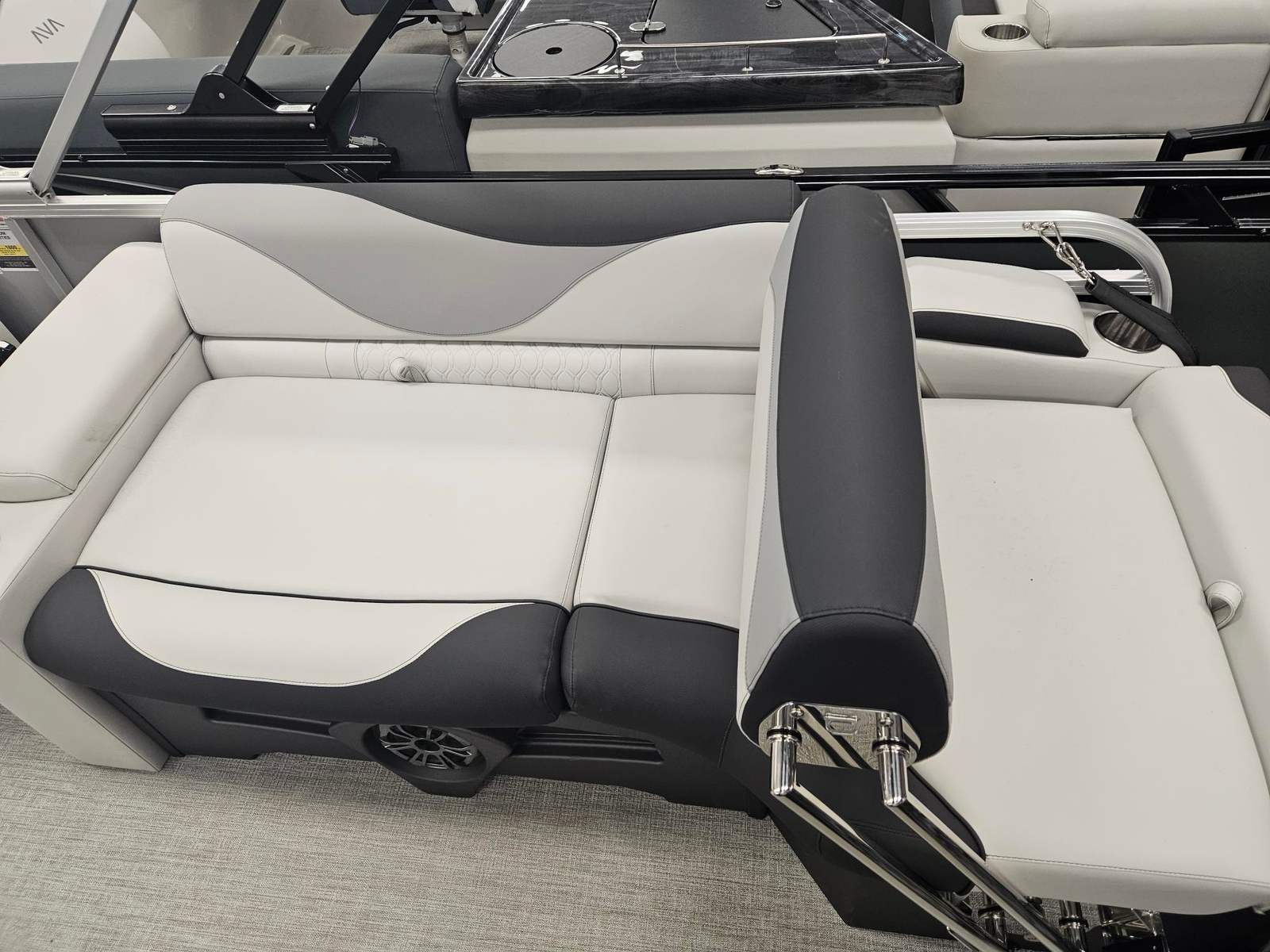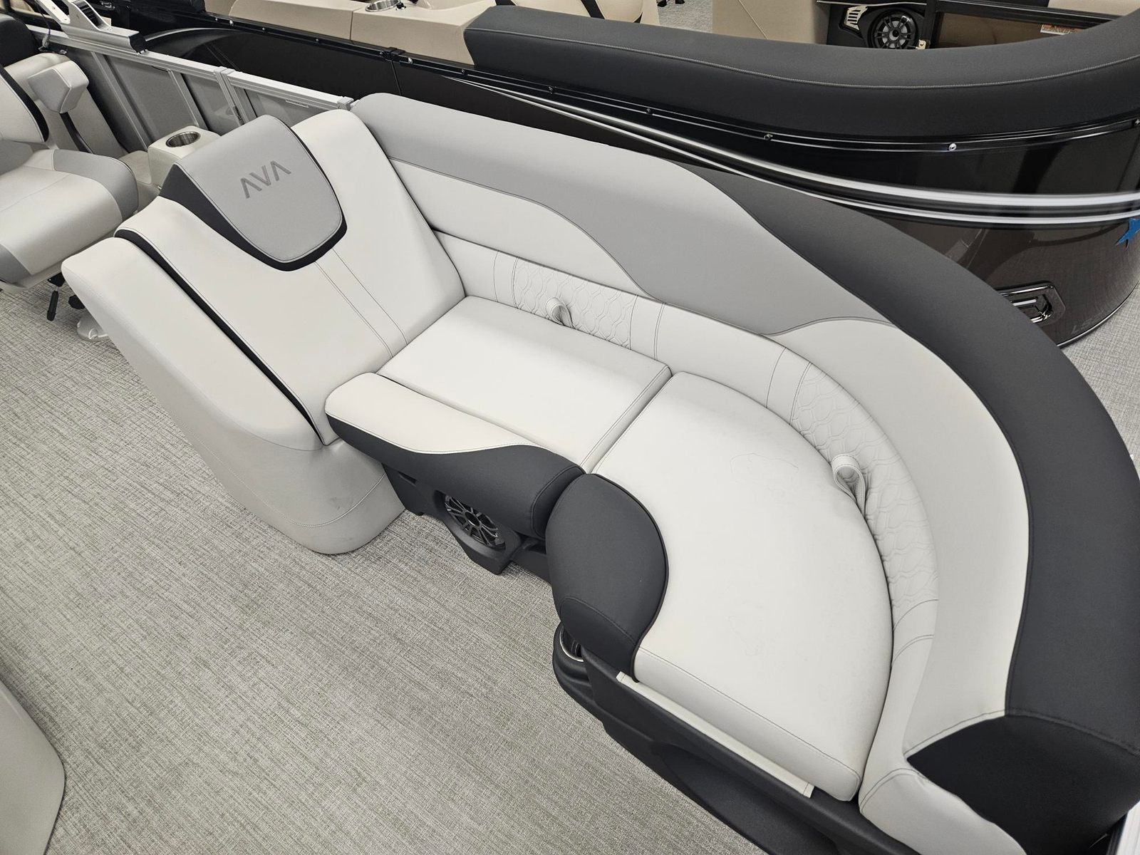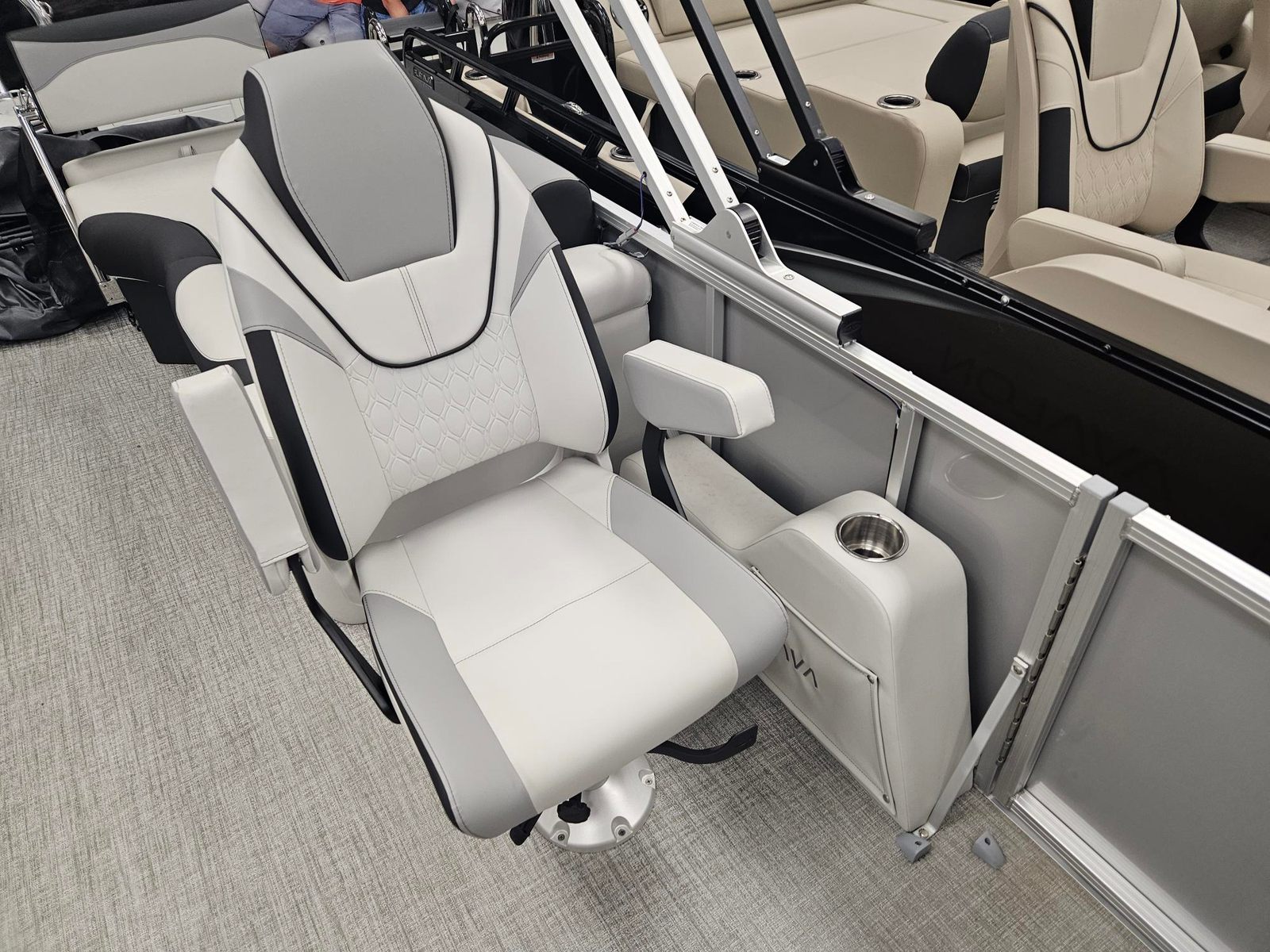 The Avalon LSZ QLS-23T is loaded with features that enhance both its visual appeal and on-water experience. The Silver Metallic Walls and Black accent create a modern, upscale look, while the Leon Silver Base 1 Vinyl and Leon Graphite Base 2 Vinyl offer a luxurious and durable seating surface. The Koolfab Black Accent Vinyl adds a touch of sophistication and comfort, ensuring that every seat is as inviting as it is stylish.The Sport Performance Package elevates the handling and ride quality, making this pontoon boat for sale a joy to captain in a variety of conditions. The Charcoal Canvas provides shade and protection from the elements, allowing you to enjoy your time on the water regardless of the weather. For the captain, the Port Sport High Back Reclining Chair offers superior comfort and support, making long days on the water even more enjoyable.