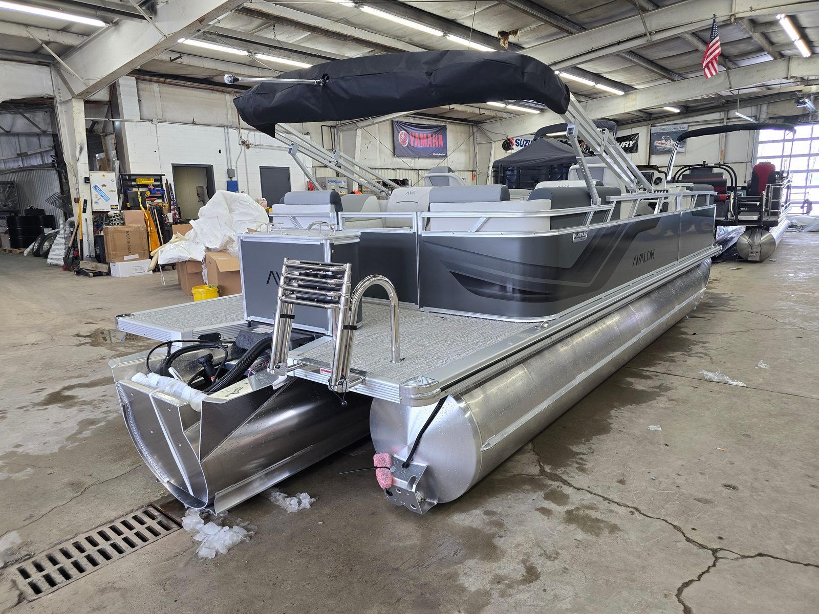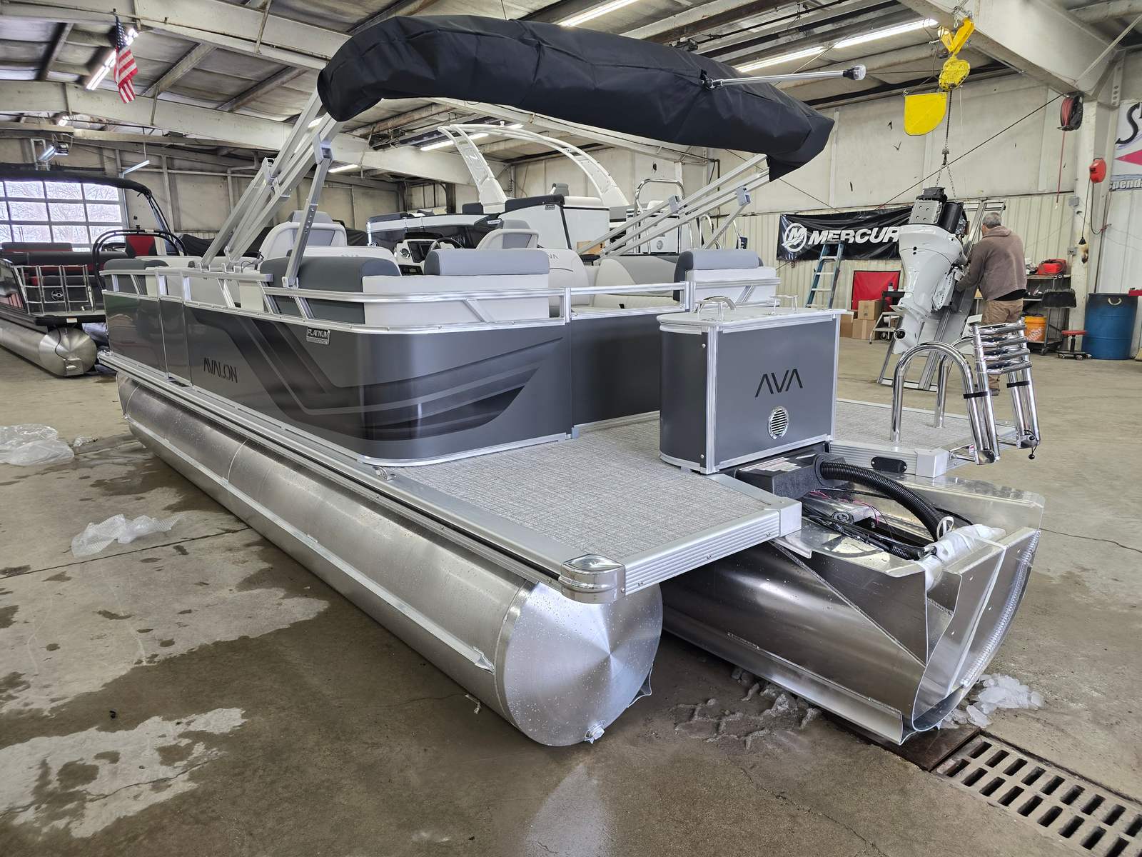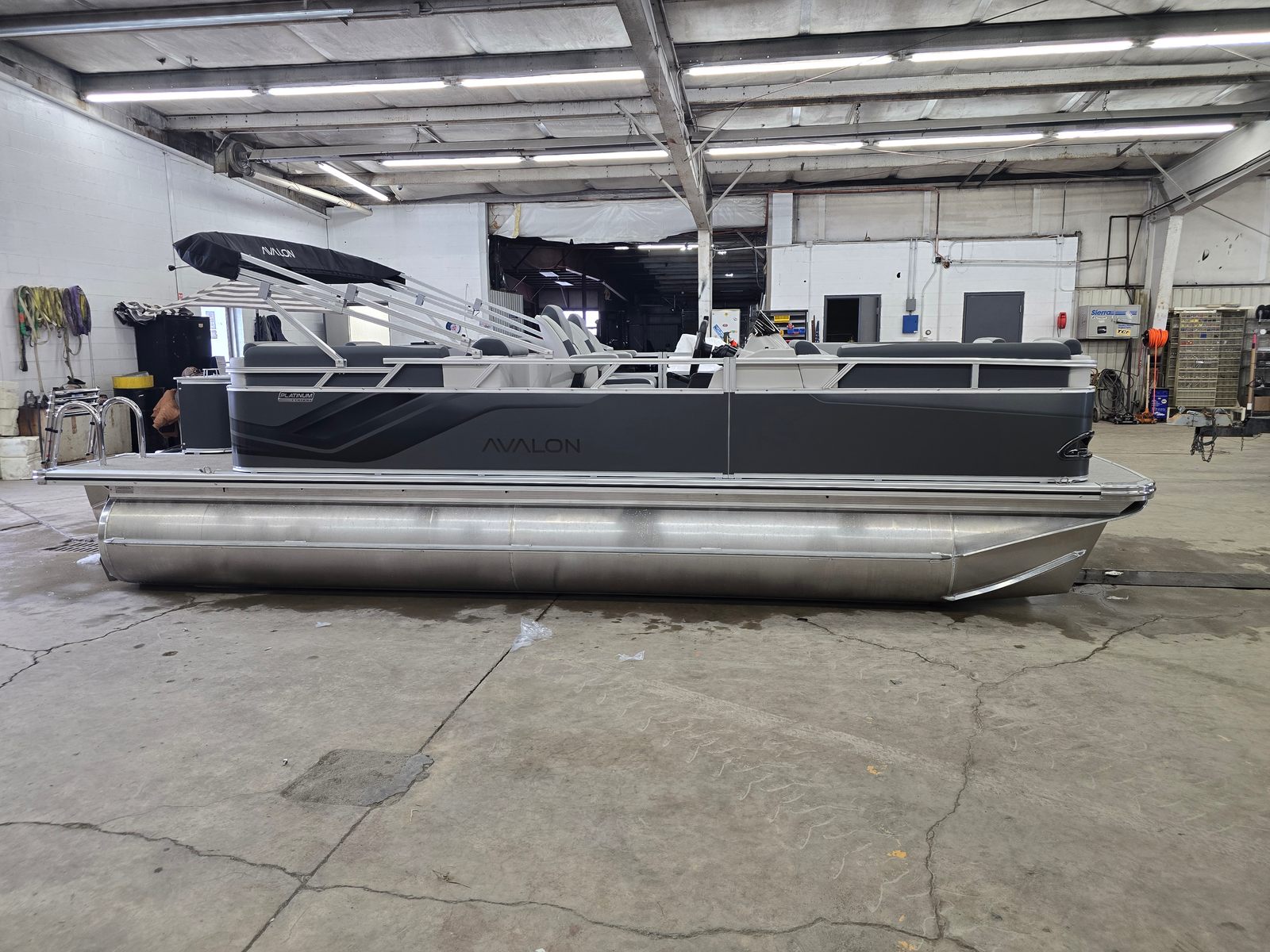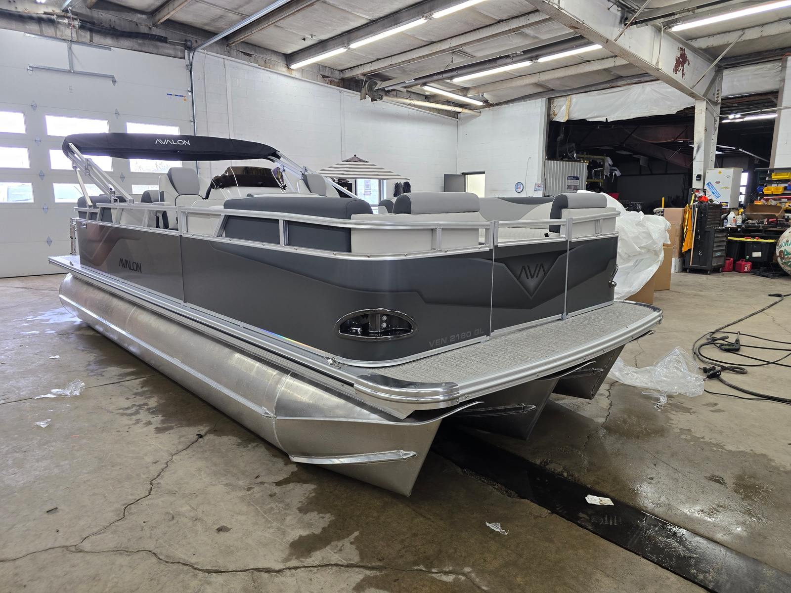 The Avalon VNT QL-21T is loaded with special features designed to elevate your time on the water. The Charcoal Matte Walls give the pontoon a contemporary, eye-catching look, while the Leon Silver Base 1 Vinyl and Leon Graphite Base 2 Vinyl offer a luxurious seating experience. The Koolfab Charcoal Accent Vinyl adds a touch of sophistication and comfort, ensuring every passenger enjoys the journey in style. The Venture Platinum Edition package brings an extra layer of elegance and exclusivity, making this Avalon boat for sale a true standout.The sturdy 25-inch tubes provide enhanced buoyancy and stability, allowing you to cruise with confidence even when the water gets lively. The Black Canvas offers shade and protection from the elements, so you can relax in comfort no matter the weather. Every detail of the Avalon VNT QL-21T has been thoughtfully designed to maximize enjoyment, safety, and convenience.