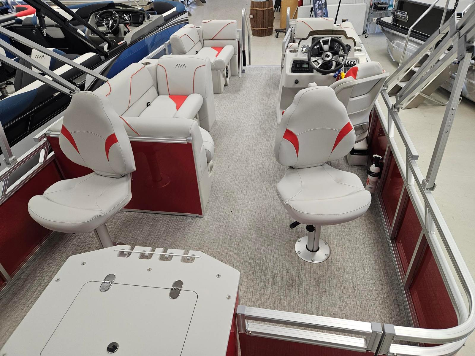 In summary, the 2026 Avalon VNT RF-19T is a standout pontoon boat for sale that offers the perfect blend of style, performance, and comfort. With its striking Red Walls, luxurious Leon Silver and Red Accent Vinyl, Venture Platinum Edition touches, and practical upgrades like the 8 ft. width and 25-inch tubes, this new Avalon boat for sale is ready to elevate your time on the water. Whether you are seeking relaxation, adventure, or a bit of both, the Avalon VNT RF-19T is designed to exceed your expectations. Do not miss your chance to own this exceptional pontoon – contact your dealer today to learn more and start your next great adventure.
