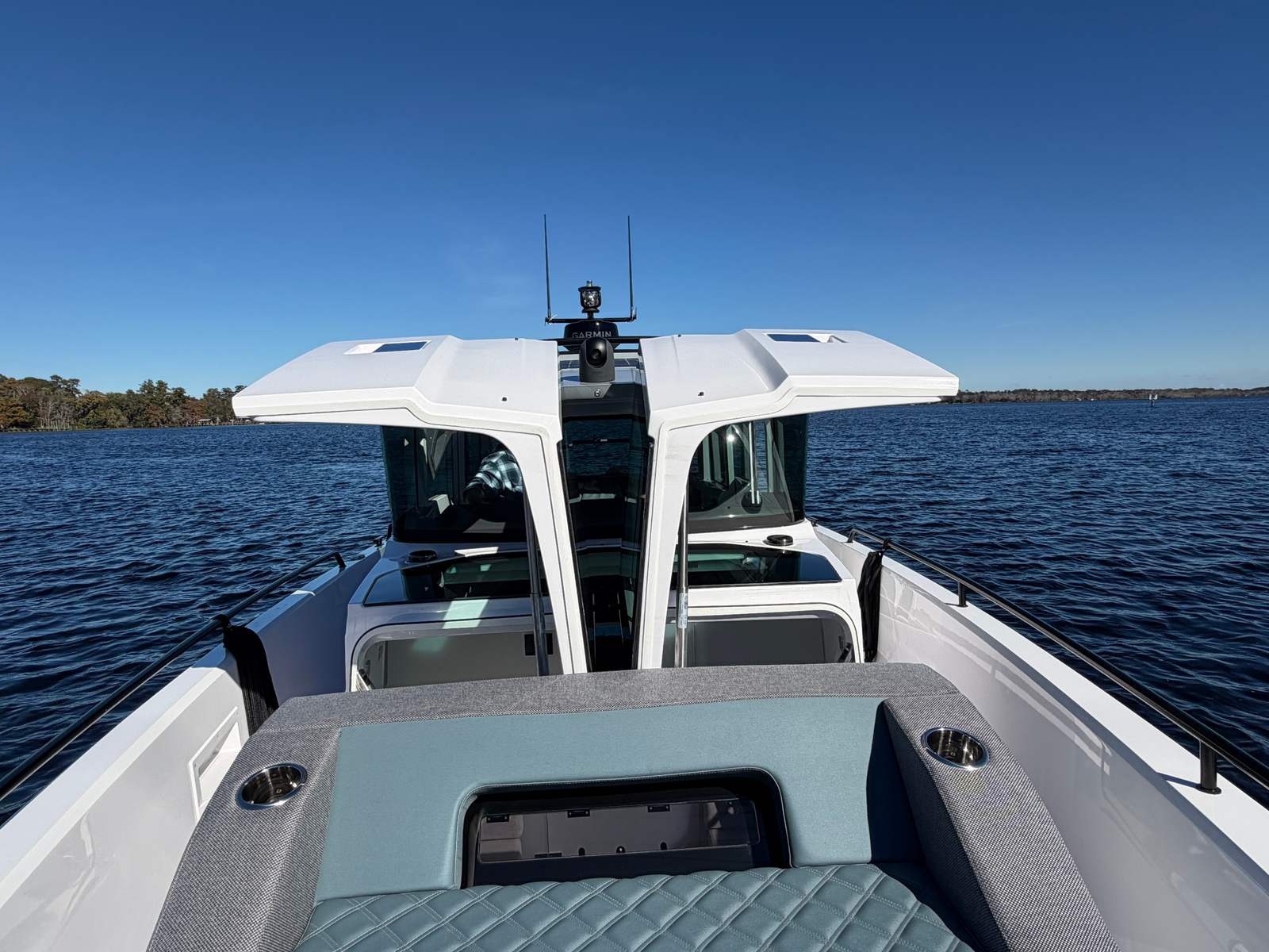 Imagine setting out on a sunny morning with your family, the spacious deck of the Axopar 37 XC providing plenty of room for everyone to spread out and enjoy the ride. Whether you are heading to a favorite fishing spot, exploring new coastal destinations, or simply cruising along the shoreline, this center console boat adapts to your every need. The generous seating and social spaces make it perfect for entertaining guests, while the ample storage ensures you have everything you need for a day of fun on the water.For those who love adventure, the Axopar 37 XC is ready to take you off the beaten path. Its powerful engines and agile handling make it easy to reach remote beaches, hidden coves, or offshore fishing grounds. The enclosed helm keeps you comfortable and protected, allowing you to extend your trips and make the most of every boating opportunity.