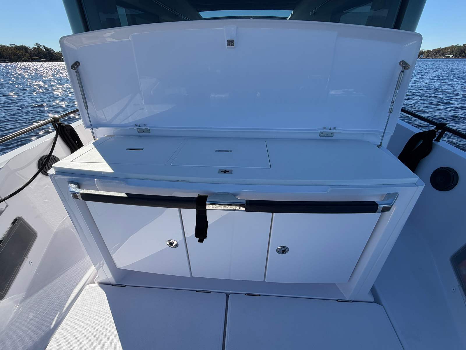 The Axopar 37 XC is packed with features designed to enhance your time on the water. Its spacious center console layout provides easy access around the deck, allowing for seamless movement whether you are fishing, entertaining, or simply relaxing. The enclosed helm offers protection from the elements, ensuring comfort during long days on the water or unexpected weather changes. The ergonomic helm station is thoughtfully designed for maximum visibility and control, putting all essential functions at your fingertips.Generous seating arrangements throughout the boat create inviting spaces for socializing and unwinding. The expansive bow area is perfect for sunbathing or enjoying panoramic views, while the aft deck offers plenty of room for fishing or setting up water sports equipment. Storage compartments are strategically placed to keep your gear organized and out of the way, maximizing usable space without sacrificing convenience.