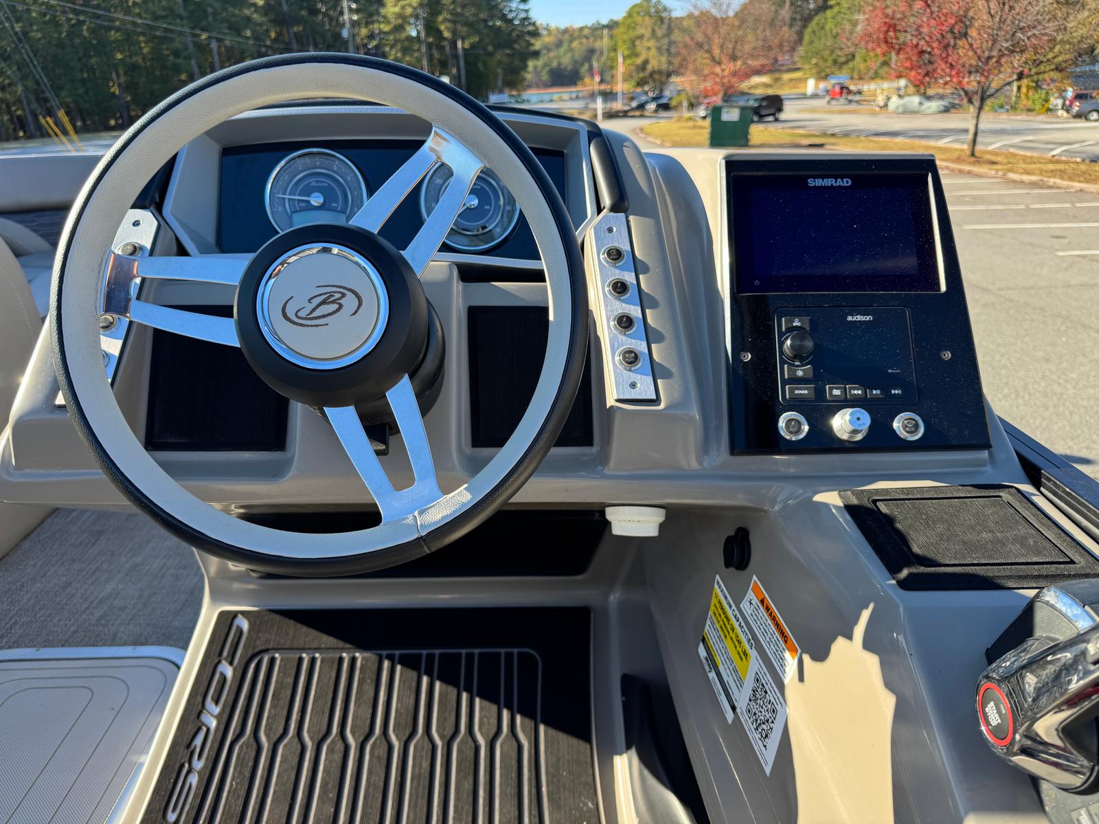 The 2023 Barletta Corsa 23UCA is thoughtfully designed to maximize comfort, convenience, and enjoyment. Its 25-foot length provides ample space for socializing, sunbathing, or simply relaxing with your favorite people. The pontoon’s layout is optimized for versatility, making it easy to transition from a lively party atmosphere to a tranquil retreat. High-quality materials and finishes throughout the boat ensure durability and a premium feel, while the ergonomic seating arrangements offer exceptional comfort for long days on the water. Every detail, from the stylish helm to the spacious deck, is crafted to enhance your boating experience and make every outing memorable.