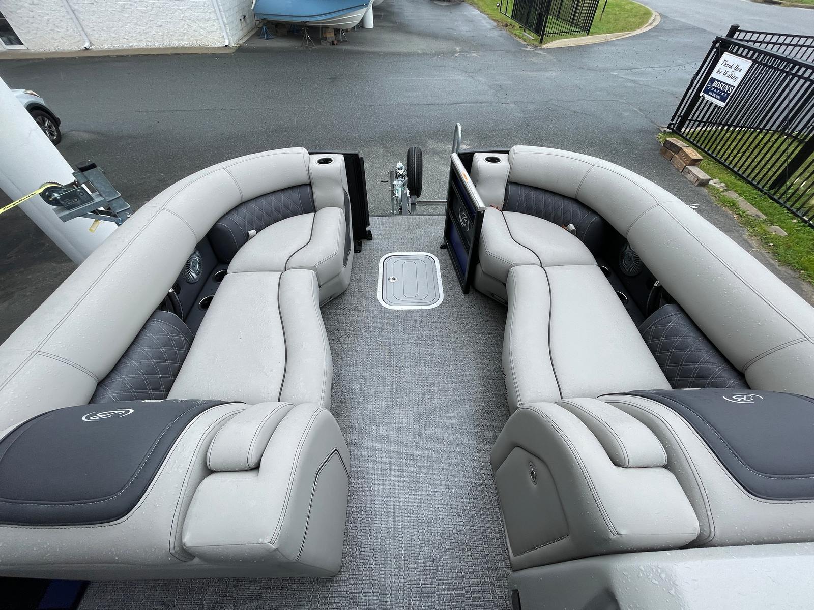 Beyond its recreational appeal, the Barletta Lusso L23UC offers practical benefits that make ownership a breeze. The generous deck space provides plenty of room for storing gear, coolers, and water toys, so you’re always prepared for a day of adventure. The boat’s layout is designed for easy movement and accessibility, making docking and boarding simple and stress-free.Fuel efficiency is another advantage of this pontoon boat, allowing you to spend more time on the water and less time refueling. The Lusso L23UC’s reliable engine and sturdy construction mean you can count on it for years of trouble-free operation, minimizing maintenance and maximizing enjoyment. Whether you’re planning a quick outing or an extended trip, this Barletta boat for sale offers the versatility and convenience you need to make the most of your boating lifestyle.