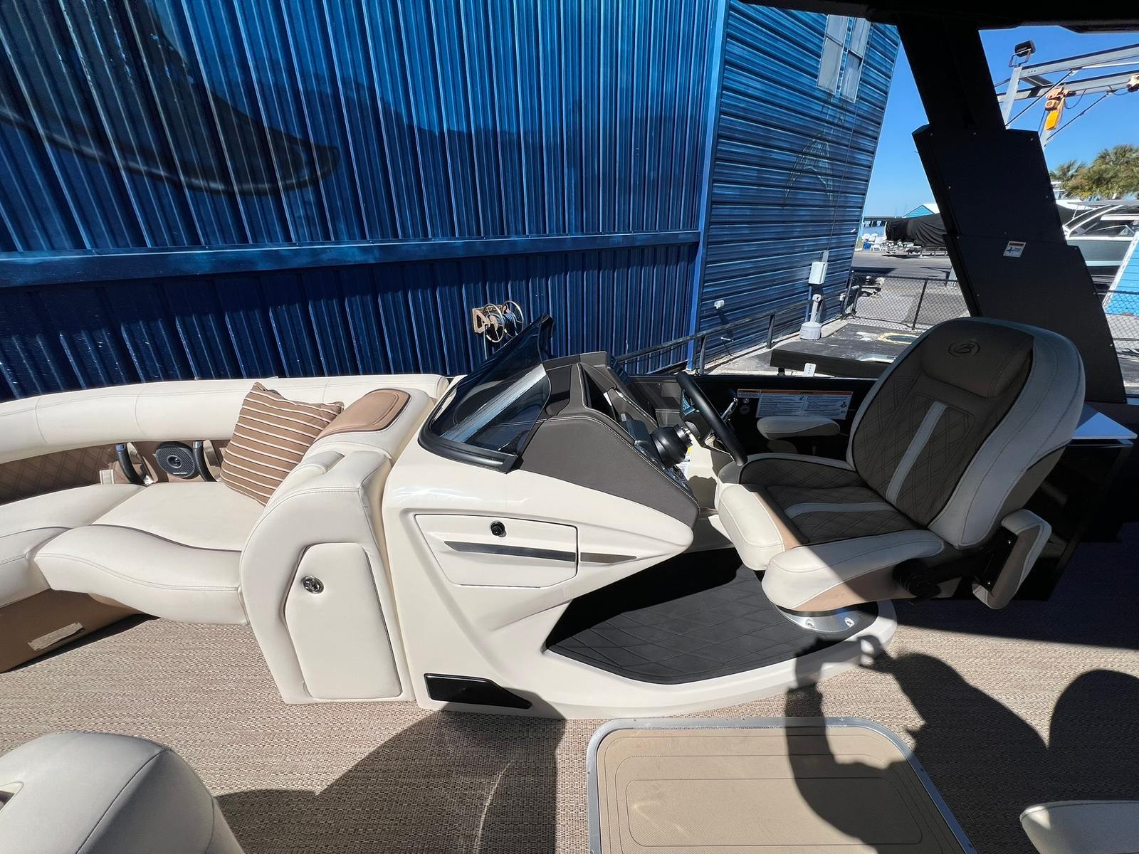 At the heart of the Barletta Reserve V26UC is a powerful single engine, boasting an impressive 400 horsepower. This robust setup ensures that you have all the power you need for exhilarating rides across the water, smooth cruising, and effortless handling. The engine’s performance is perfectly matched to the pontoon’s design, delivering a responsive and enjoyable driving experience every time you set out.With 400 horsepower at your command, you can expect swift acceleration, reliable towing capabilities for water sports, and the confidence to explore larger lakes and rivers. The engine’s efficiency and reliability make it an ideal choice for those who value both excitement and peace of mind on the water. Whether you are gliding across calm waters or picking up speed for a thrilling ride, the Barletta Reserve V26UC delivers performance that exceeds expectations.