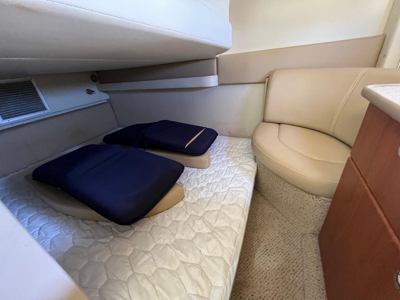 The 2006 Bayliner 325 Cruiser is thoughtfully designed to enhance your time on the water. Its spacious layout provides ample room for entertaining, relaxing, and enjoying the company of friends and family. The cockpit area is perfect for socializing, with comfortable seating and easy access to all areas of the boat. The interior is equally inviting, offering a welcoming space to unwind after a day of adventure. Every detail is crafted to maximize comfort and convenience, making this Bayliner boat for sale a true home away from home.