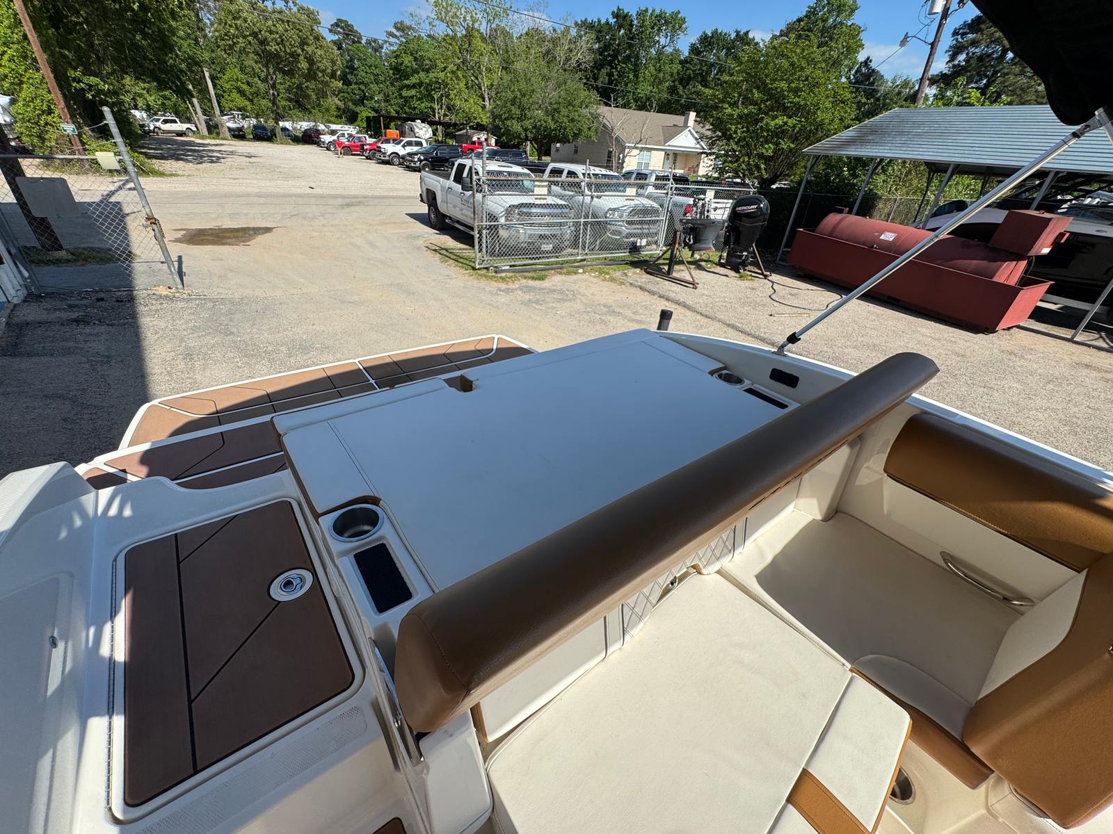 This Deckboat boat for sale is meticulously crafted to offer comfort and convenience. The spacious deck provides ample room for seating, lounging, and storage, making it ideal for both relaxation and entertainment. The sleek design not only enhances the boat's aesthetic appeal but also optimizes its performance on the water.