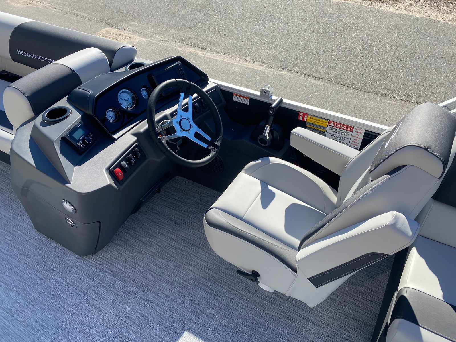 The Bennington 20 SSR SPS pontoon is loaded with special features that enhance both aesthetics and functionality. The Gemini Black panel gives the boat a modern, sophisticated look, while the No Accent - Textured finish adds a subtle touch of elegance. Inside, the Leon Light Silver upholstery and Slate Simtex interior accent create a welcoming and contemporary atmosphere, perfect for relaxing or entertaining.The Ironwood Dash Accent adds a touch of luxury to the helm, and the wireless charger ensures your devices stay powered throughout your day on the water. The Midnight Black canvas provides stylish protection from the sun, while the Ski Tow Bar - SPS opens up a world of watersports possibilities for thrill-seekers and families alike. Every detail, from the Yamaha pre-rig to the thoughtfully designed seating, is crafted to maximize your enjoyment and convenience.