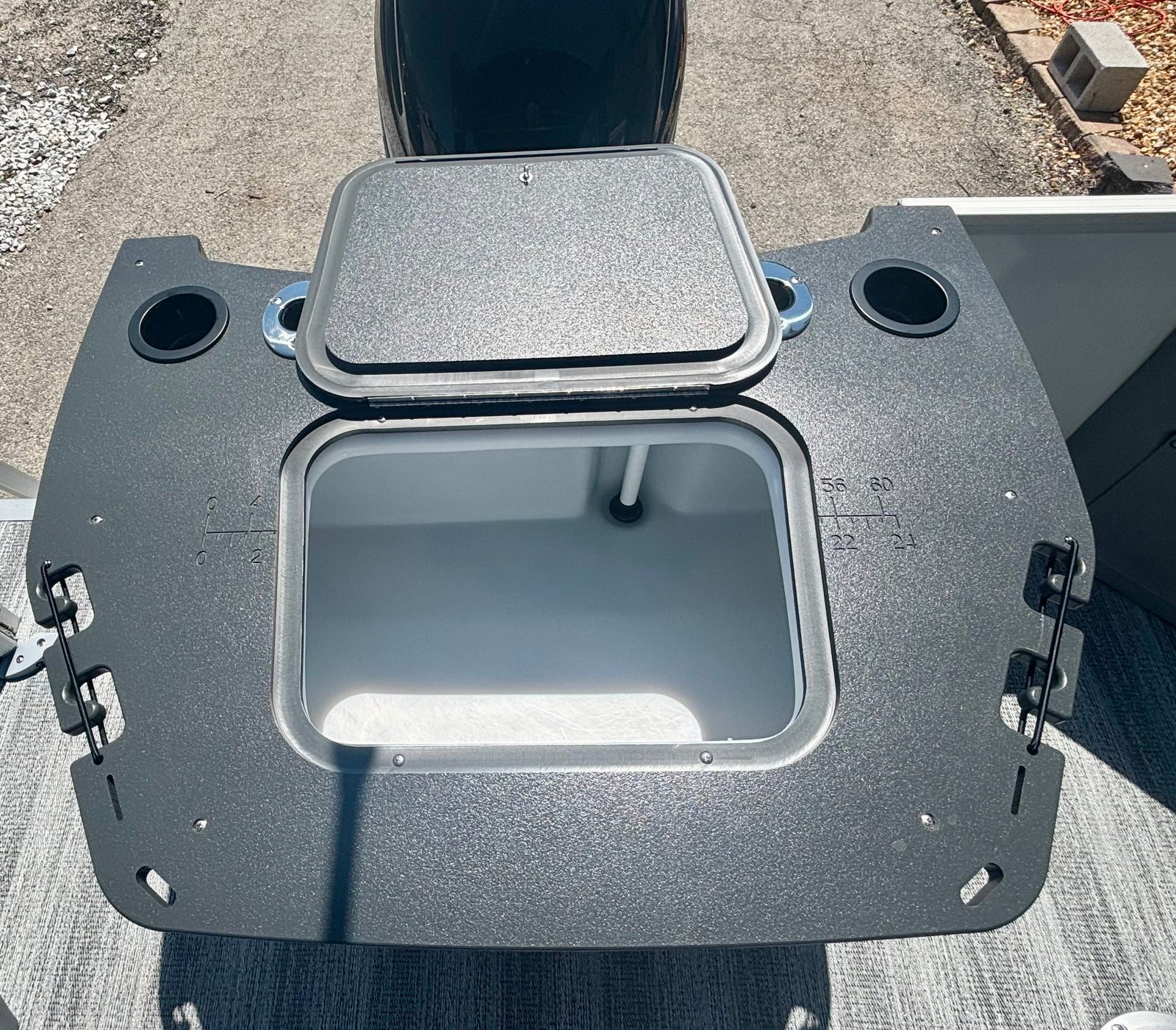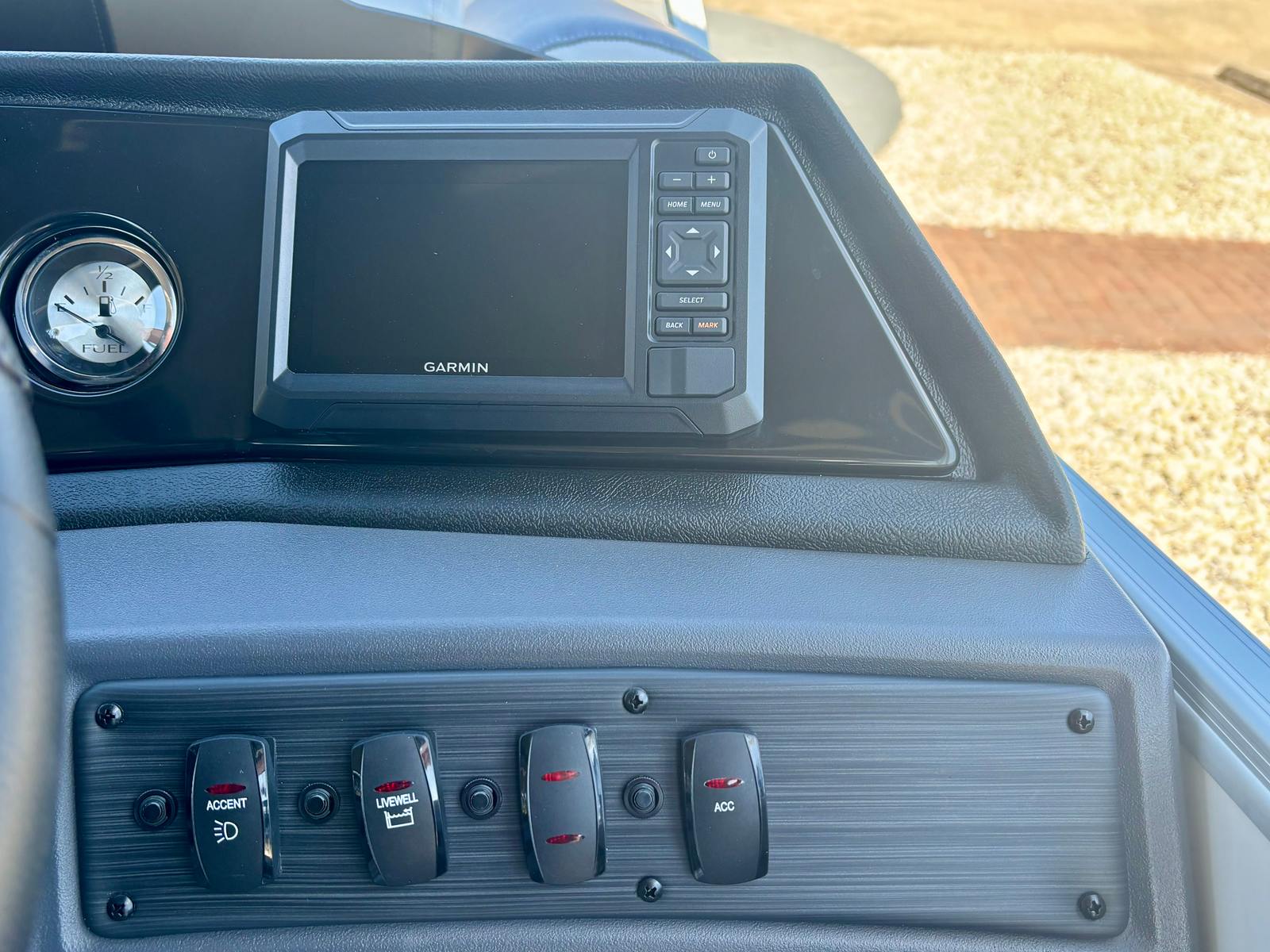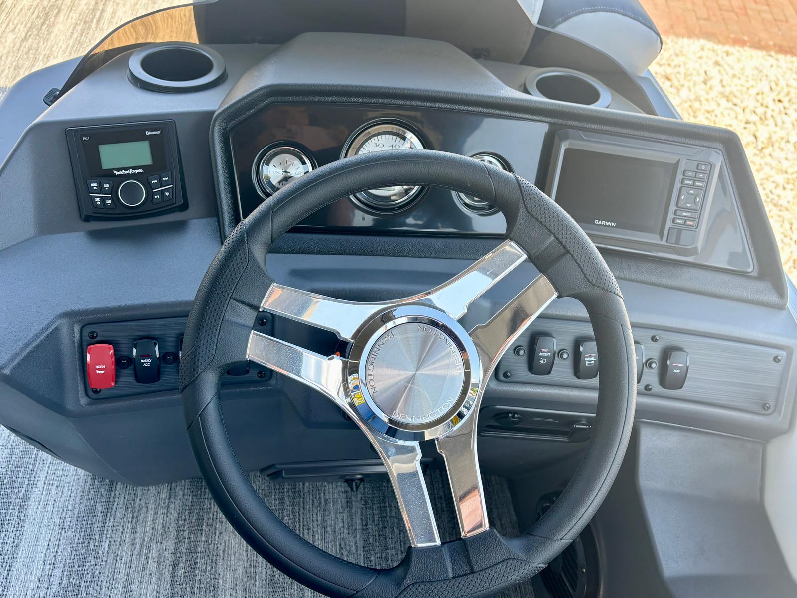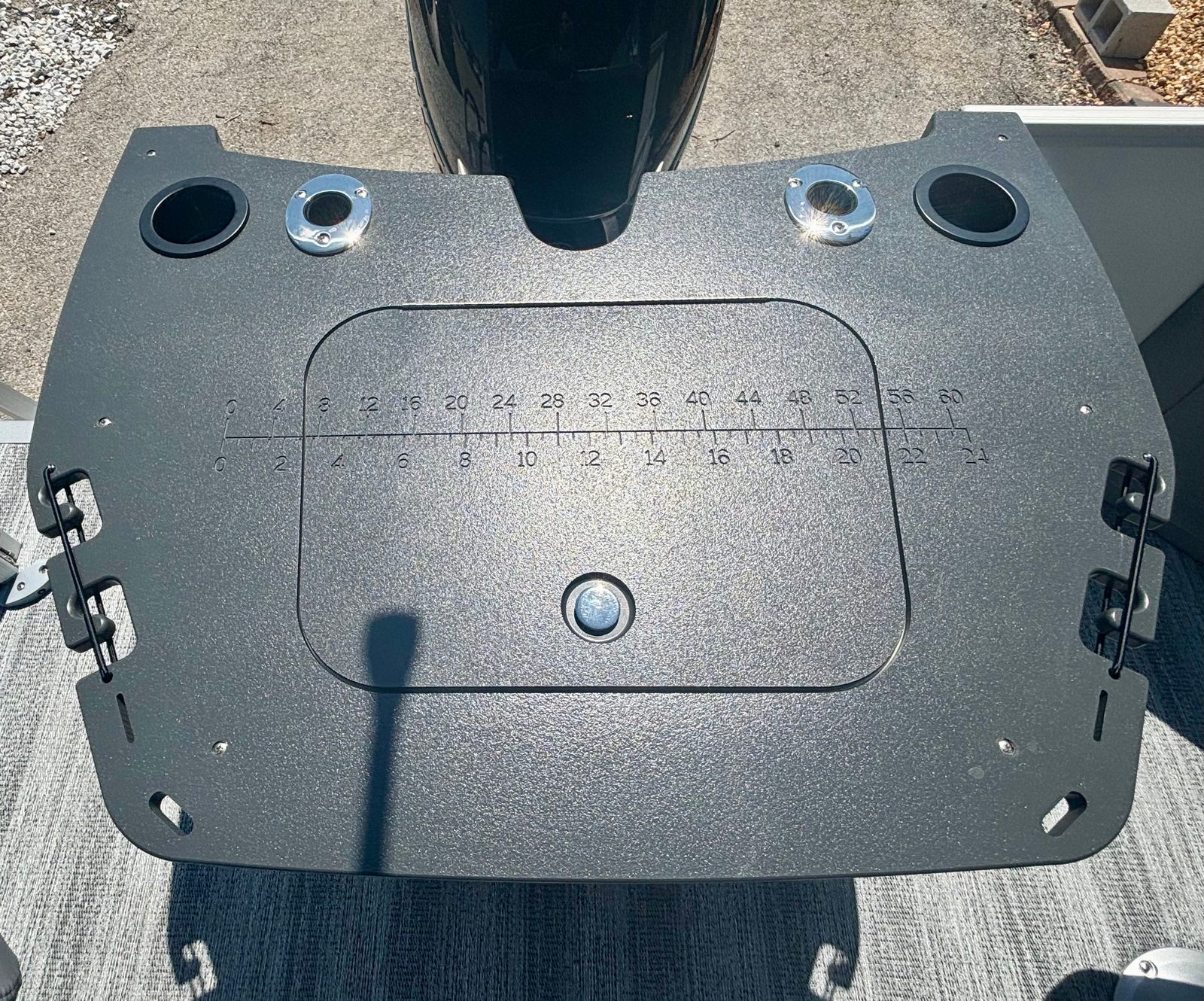 Step aboard the Bennington 21 SFC SPS and you will immediately notice the attention to detail and premium materials throughout. The smooth Metallic White color gives this pontoon a modern, sophisticated look that stands out at any marina. The Ironwood trim accents add a touch of elegance, while the Mythos Grey furniture accents create a refined and inviting atmosphere. The Shoreline Grey flooring is both stylish and practical, providing a comfortable and easy-to-clean surface for all your activities.For anglers and outdoor enthusiasts, the trolling motor gate and wiring harness offer added convenience, making it easy to customize your pontoon for fishing adventures. The fixed cleats at the aft and bow provide secure mooring options, ensuring your boat stays safely in place wherever you dock. The dimensional brushed logos add a distinctive flair, showcasing the Bennington brand’s commitment to excellence.The captain’s area is designed for ultimate comfort and control. The mid-back air recliner offers ergonomic support for long days on the water, while the captain’s chair slider and pedestal allow you to find the perfect position for navigating or relaxing. The black wheel with chrome accents adds a sporty touch, making every journey feel like a first-class experience.