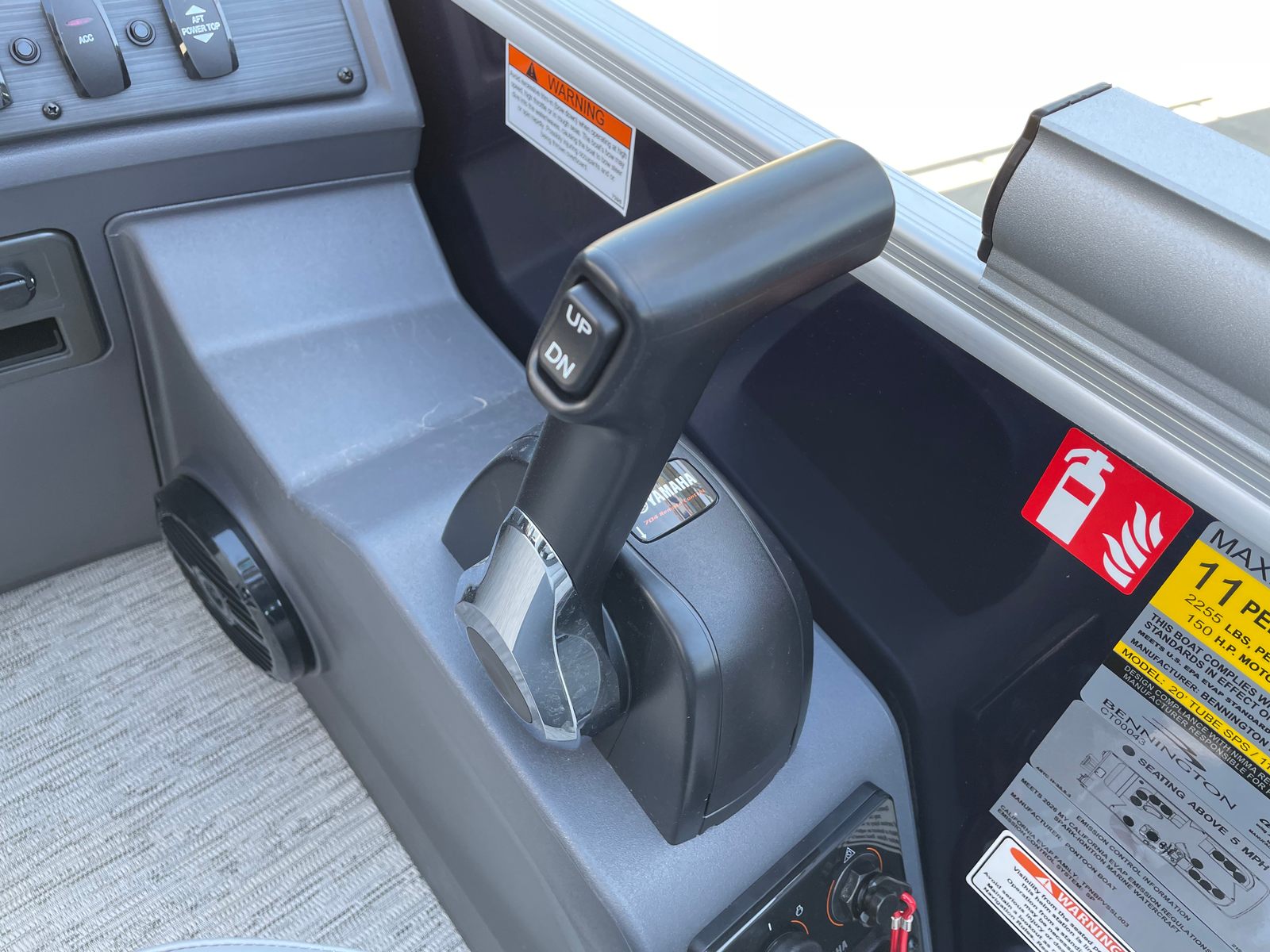Powering the Bennington 21 SLJ SPS is the robust Yamaha F150XD engine, delivering a thrilling 150 horsepower. This engine is renowned for its smooth operation, fuel efficiency, and dependable performance, making it ideal for both leisurely cruises and more spirited adventures. The Yamaha Mechanical Pre-Rig – Delete Hydraulic Cylinder ensures precise control and easy handling, giving you confidence at the helm whether you’re navigating busy marinas or open water. With the SPS Performance Package, including a 33-gallon transom direct fill, this pontoon is engineered for enhanced stability and agility, so you can enjoy responsive handling and a smooth ride every time you set out.