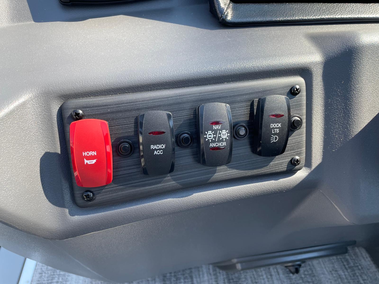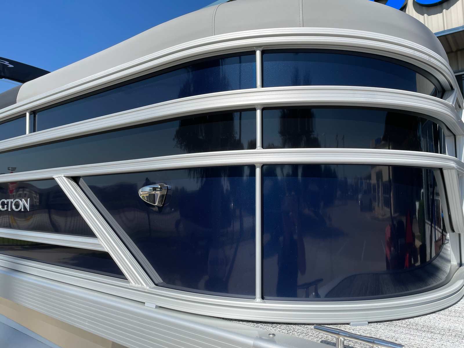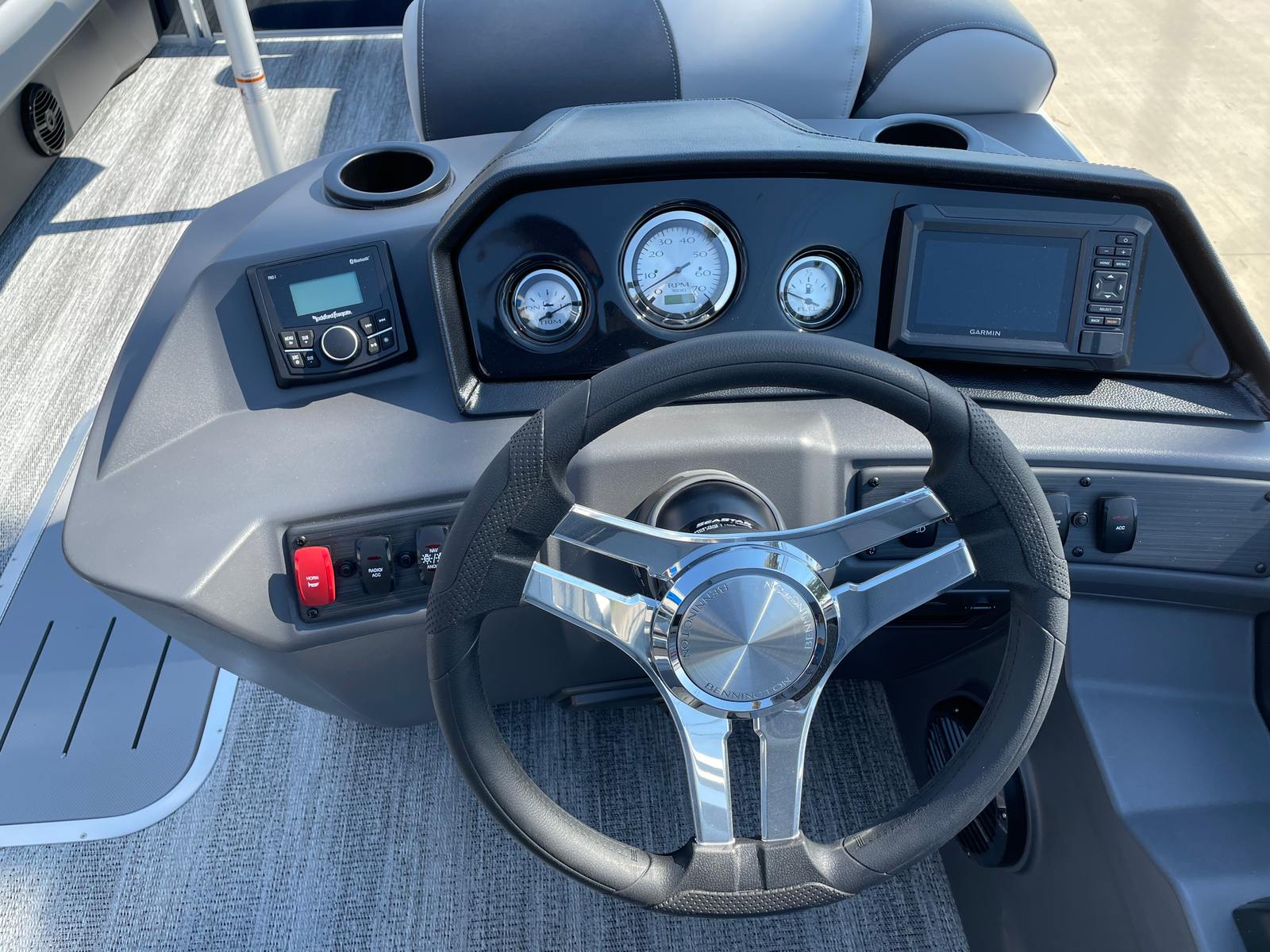 Step aboard the Bennington 21 SSR SPS and discover a host of special features designed to elevate your boating experience. The single switch battery system offers convenient power management, while the underdeck wave shield helps ensure a smooth and quiet ride by reducing water resistance. Stay connected and charged with the integrated wireless charger, and enjoy added protection from the elements with the stylish windscreen.For those who love watersports, the ski tow bar—part of the SPS package—makes it easy to enjoy wakeboarding, tubing, and skiing adventures. The accent in Smooth Gemini Black adds a touch of sophistication to the boat’s exterior, while the Serene Soft Touch Vinyl with Simtex accents and diamond pressed lumbar provides plush, supportive seating for all passengers. In-floor storage in the SPS S Series keeps your gear organized and out of the way, and the LaColla steering wheel with chrome accents adds a dash of elegance to the helm.