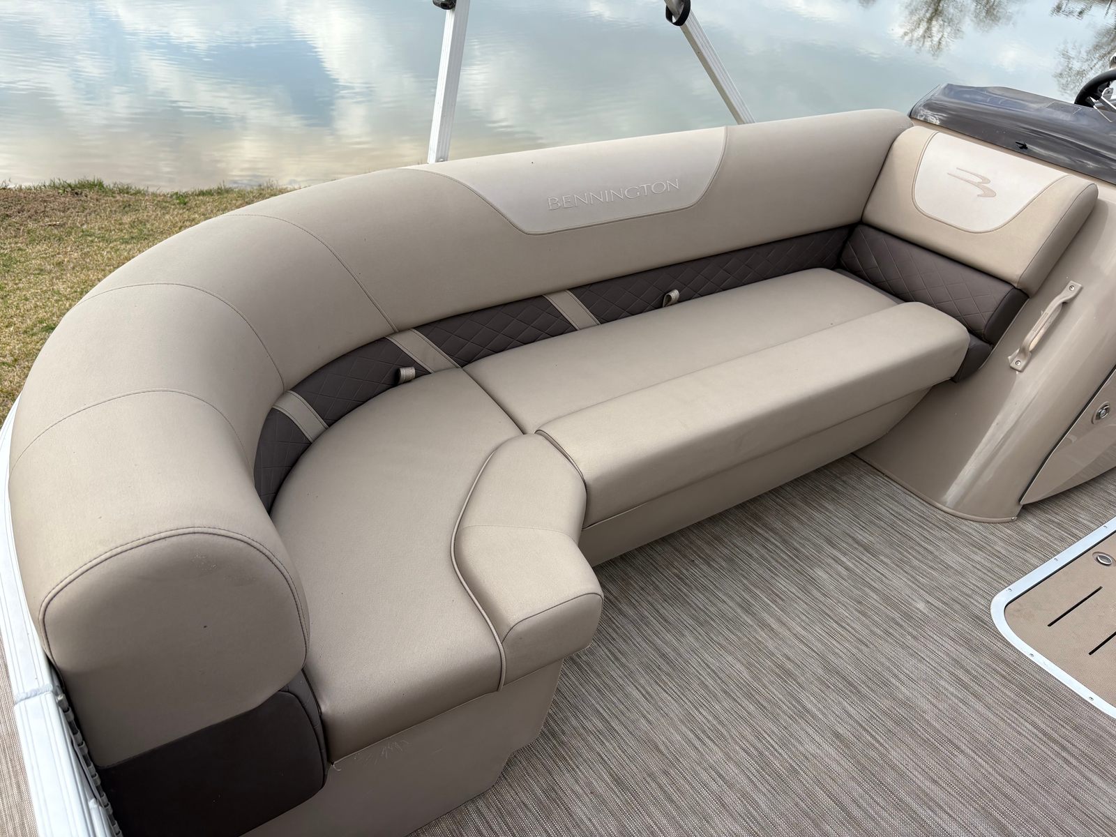 This Bennington 21 Sxsnpapg EXP pontoon boat for sale comes loaded with features that enhance both comfort and convenience. The spacious deck layout allows for easy movement and plenty of seating, making it ideal for entertaining guests or relaxing with family. The quality construction and premium materials used throughout the boat ensure durability and a luxurious feel. The pontoon’s design maximizes usable space, offering plenty of room for lounging, sunbathing, or enjoying a picnic on the water.The helm is thoughtfully arranged for intuitive control, allowing the captain to navigate with confidence. The pontoon’s sturdy rails and secure gates provide peace of mind for families with children or pets. Every detail, from the plush seating to the stylish accents, reflects Bennington’s commitment to excellence.