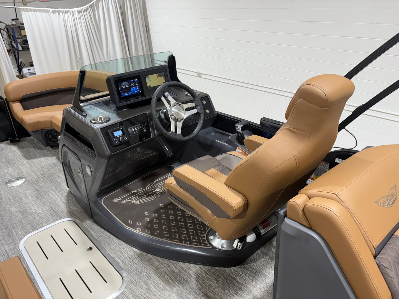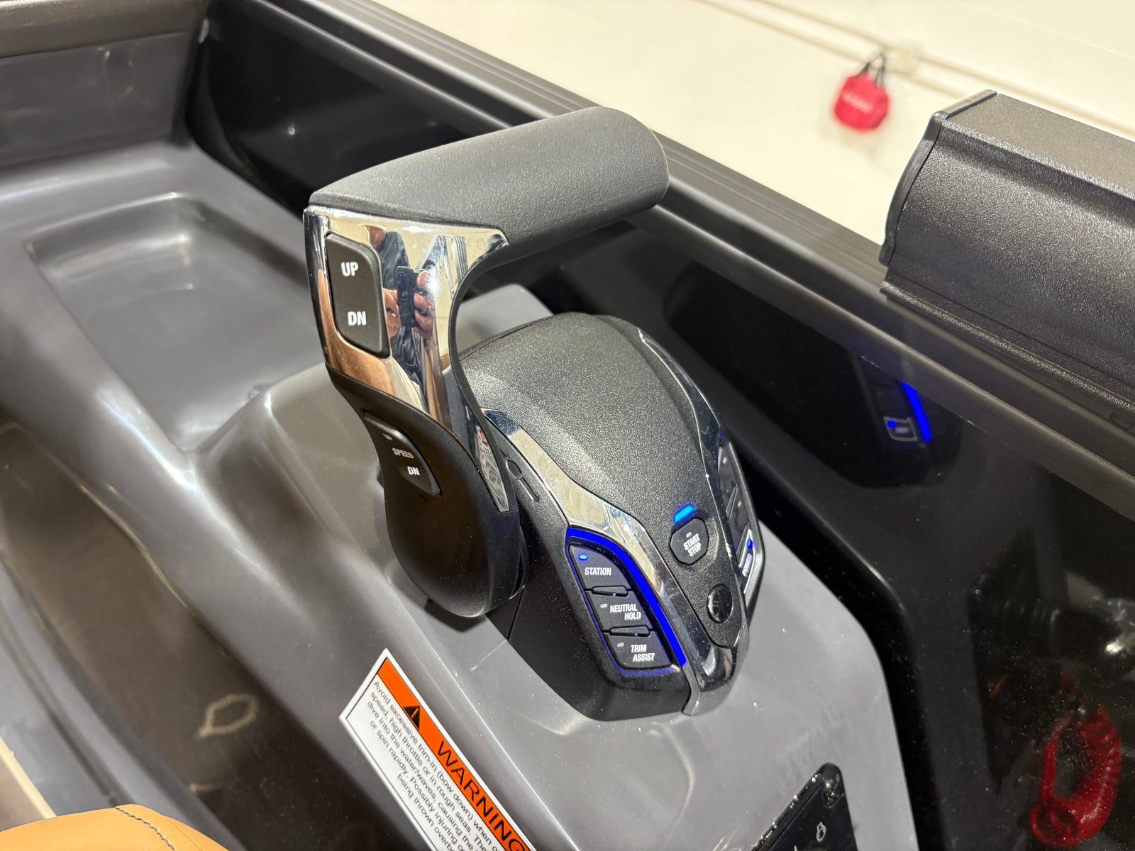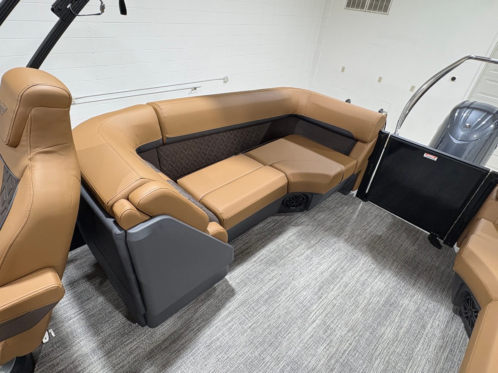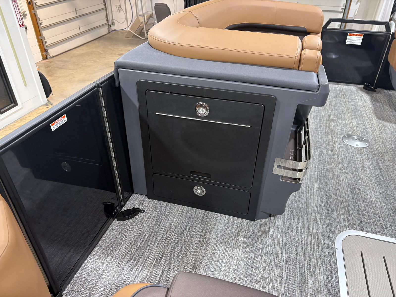The Bennington 22 MFB SPS is loaded with premium features designed to enhance your time on the water. The RGB Control M Series lighting system allows you to set the perfect mood, with customizable colors that illuminate the deck and create a vibrant atmosphere for evening gatherings. Exterior side lighting and underwater lighting not only add to the boat’s striking appearance but also improve visibility and safety during nighttime excursions.For those who appreciate comfort and convenience, the Bimini - Electric Power Top Curved 12B S/M Blk offers effortless shade at the touch of a button, allowing you to relax in comfort no matter the weather. The toekick lights (1-37" and 3-41") provide subtle illumination along the deck, enhancing both safety and ambiance.Entertainment is taken to the next level with six Rockford Fosgate Ml Lighted Speakers, delivering crystal-clear sound throughout the boat. Whether you are hosting a lively party or enjoying a quiet afternoon, the audio experience is second to none. The twelve illuminated cupholders ensure that your favorite beverages are always within reach, even after the sun goes down. The elevated console Mythos provides a commanding view and intuitive control layout, making every journey smooth and enjoyable.