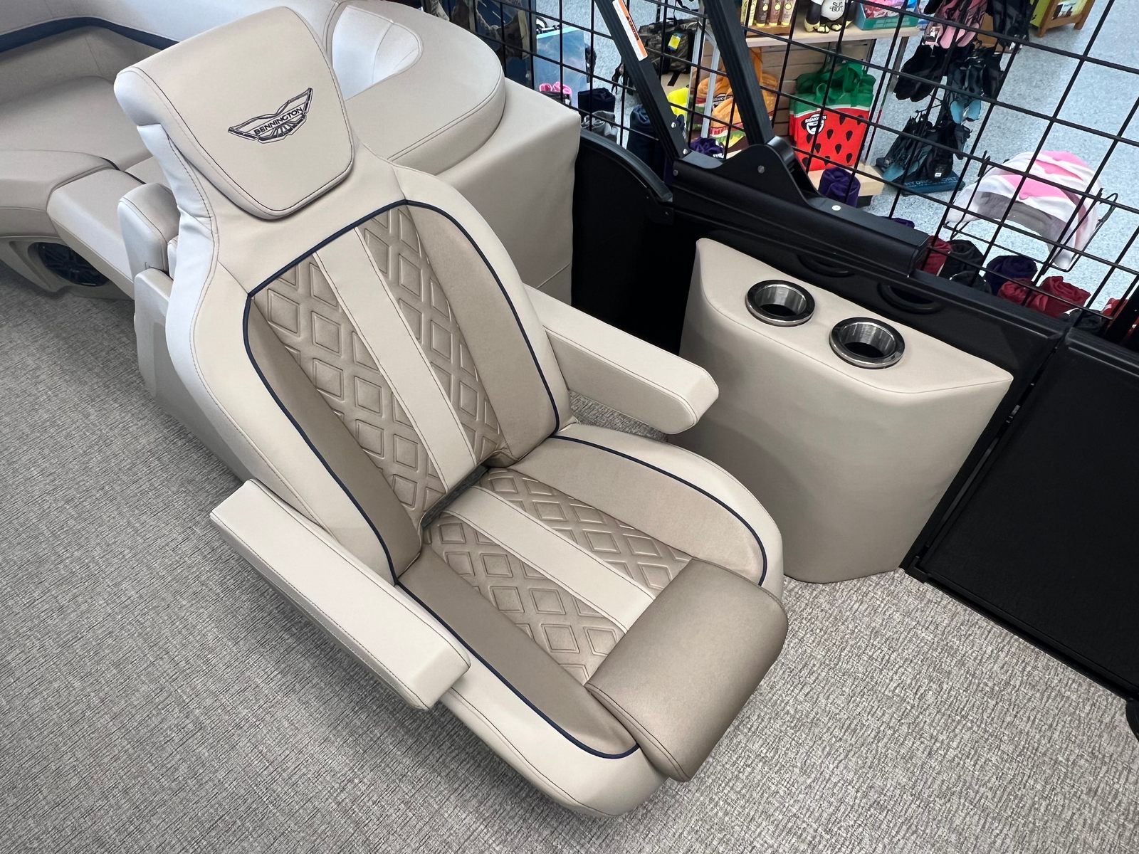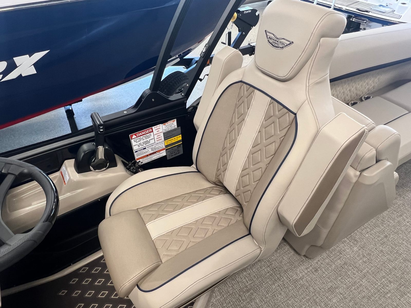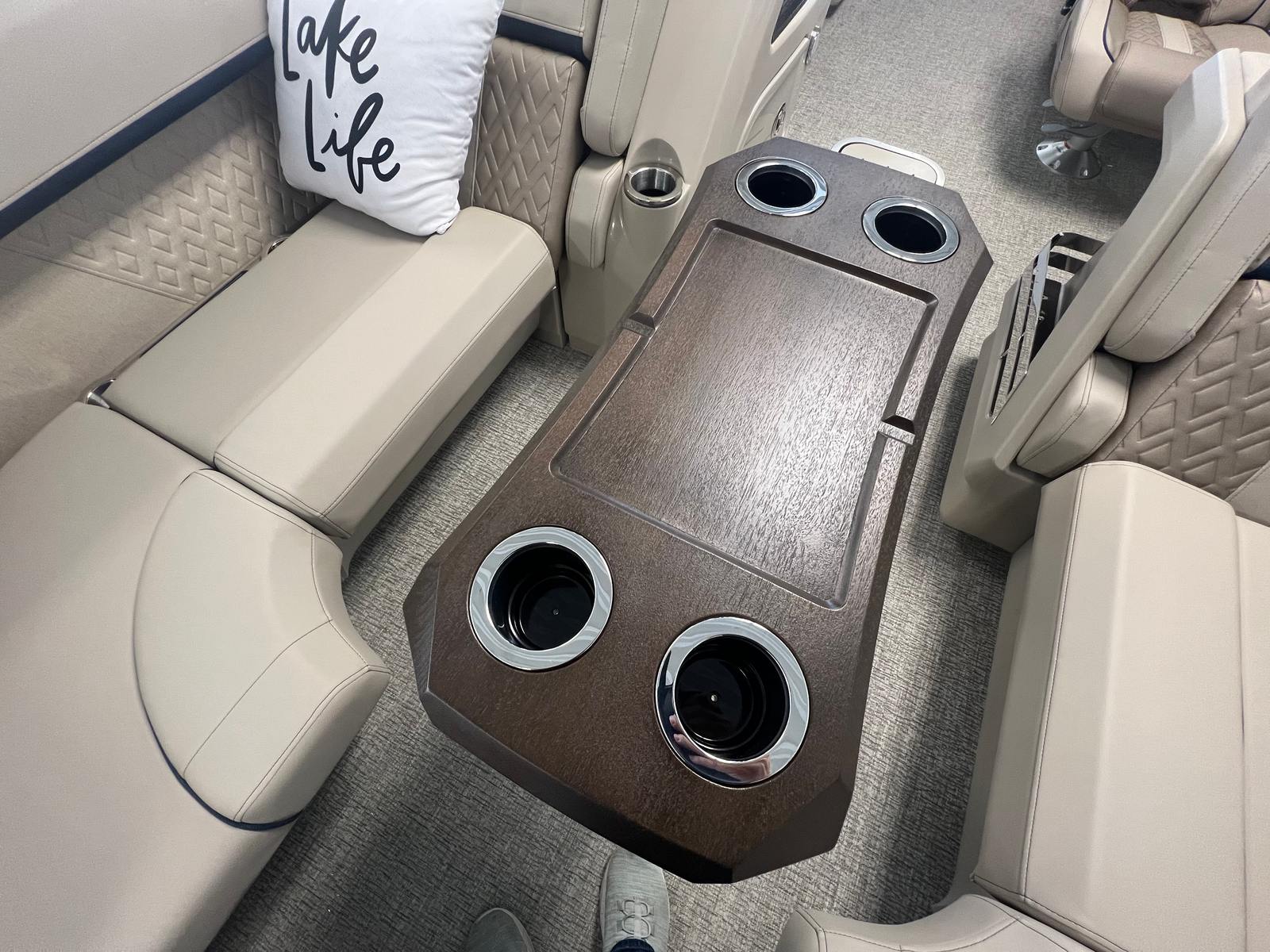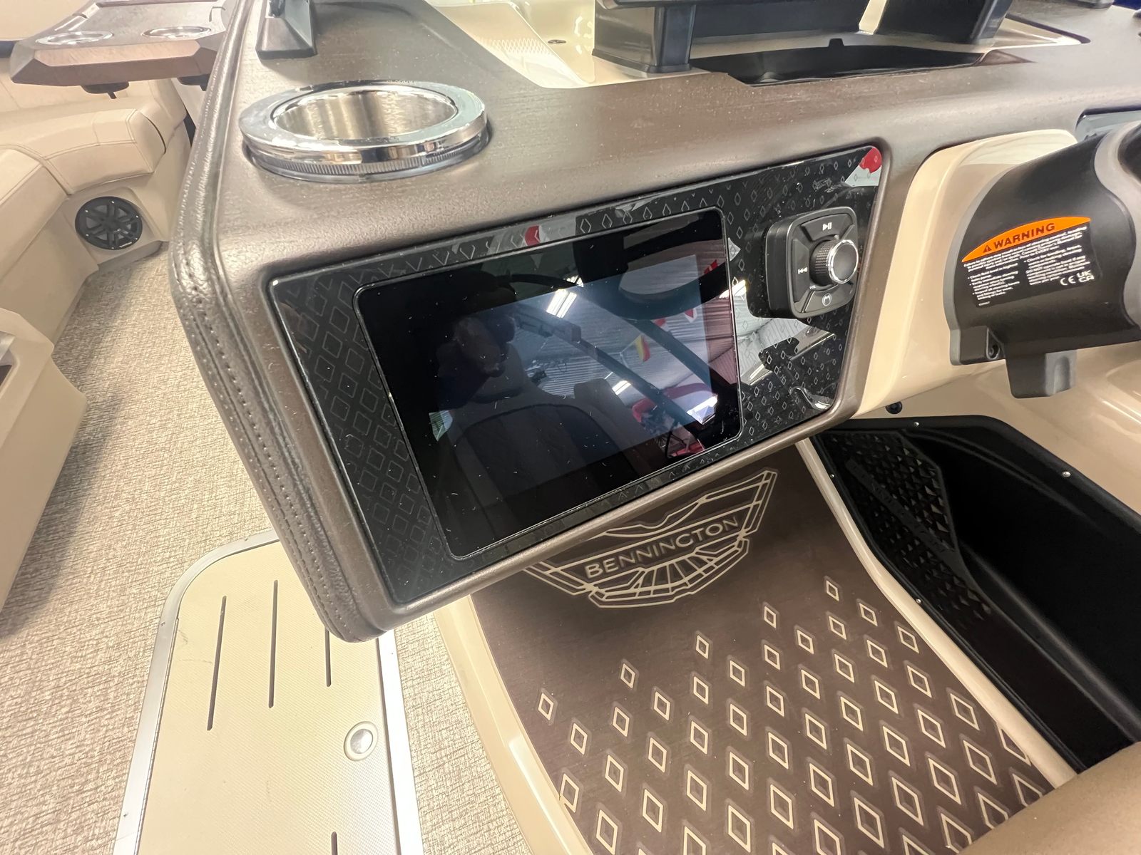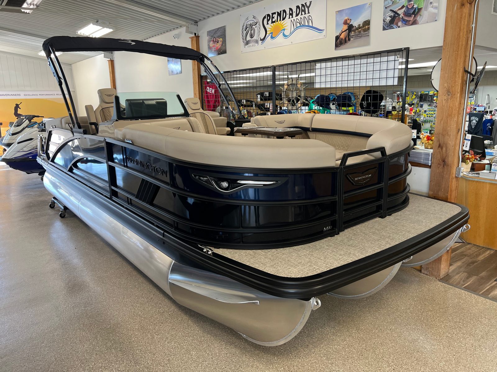 The 2026 Bennington 22 MFB SPS is packed with premium features designed to enhance your boating experience. The Electric Power Top Curved Vessel Bimini in black offers effortless shade and protection from the sun, allowing you to relax in comfort during those long summer days. The Zebrawood Matte Beige accents add a touch of sophistication to the interior, creating a warm and inviting atmosphere for you and your guests.For dining and entertaining, the Stowable Sculpted Rectangular Table Exchange provides a versatile space for snacks, drinks, or games, while the Bimini Cable Stays in black ensure stability and durability for your canopy. Water sports enthusiasts will appreciate the Ski Tow Bar, making it easy to enjoy tubing, wakeboarding, or skiing with family and friends.The Valencia Taupe upholstery and Dolce Veneto finishes deliver a luxurious feel, while the Black Rub Rail Insert and Smooth Gemini Black panels contribute to the boat’s sleek, modern appearance. Every detail has been thoughtfully designed to maximize comfort, style, and functionality, setting this Bennington pontoon apart from the rest.
