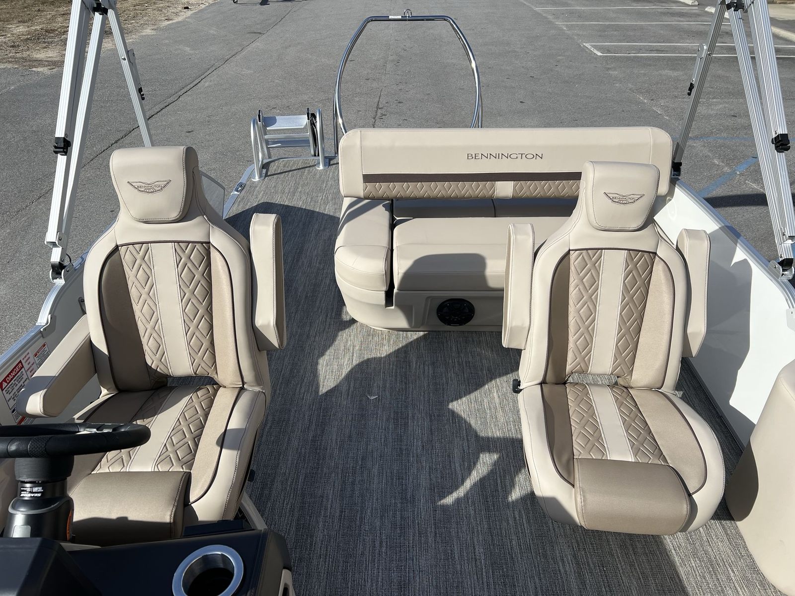 The 2025 Bennington 22 MSB SPS is loaded with premium features designed to enhance your boating experience. The 12 Button Digital Switching system offers intuitive control over the boat’s functions, allowing you to manage lighting, navigation, and more with ease. The 7" Vivid UX Touchscreen Display provides clear, real-time information at your fingertips, making navigation and system monitoring effortless. The Master Power feature ensures reliable operation, while the Horn USBP Panel with Wireless Charging Dock keeps your devices powered and ready for use.Aesthetically, this pontoon boat is a masterpiece. The Panel in Smooth Metallic White, accented by Smooth Metallic Sorrel, creates a sophisticated and modern look. The Canvas in Metallic Sorrel Tweed adds a touch of elegance, while the Dolce Veneto upholstery offers plush comfort for all passengers. Chrome logos complete the stylish appearance, ensuring your Bennington boat for sale stands out wherever you go.