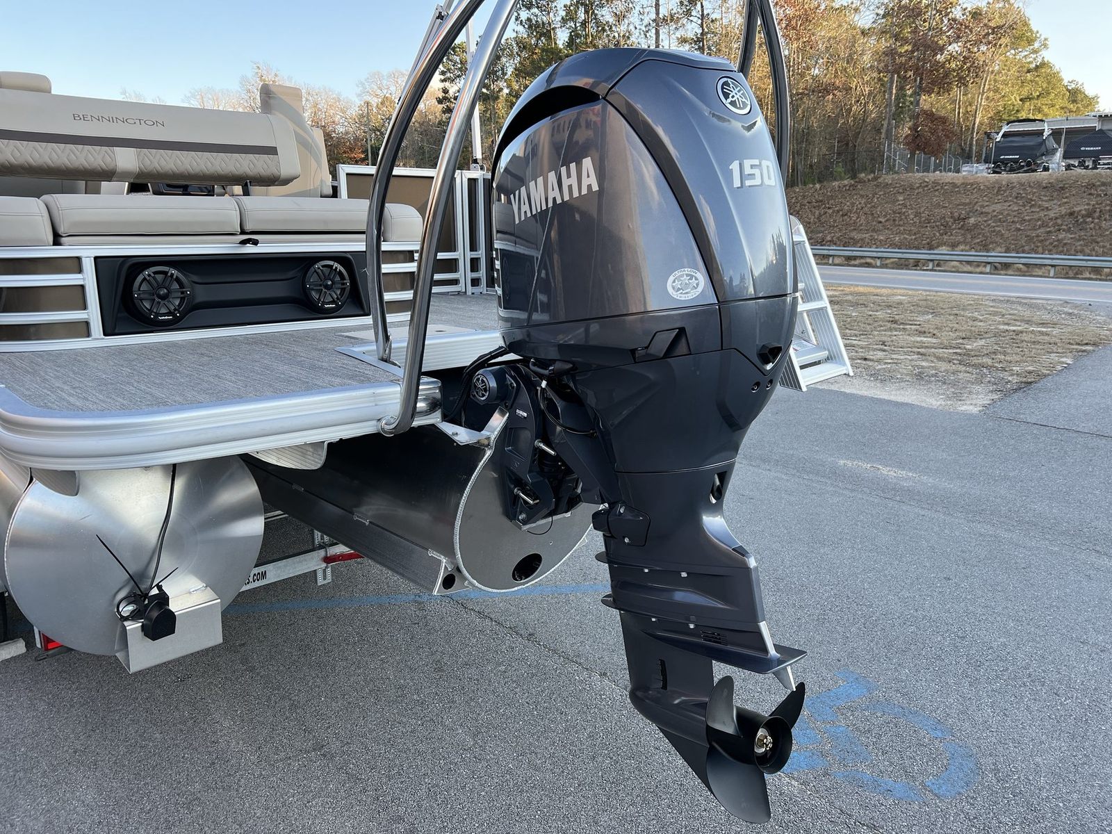 Powering the Bennington 22 MSB SPS is a robust Yamaha F150XC engine, delivering 150 horsepower for smooth, reliable performance on the water. This single-engine setup is engineered for efficiency and responsiveness, ensuring you have the power you need for cruising, watersports, or simply exploring new destinations. The Yamaha Mechanical Pre-Rig – Delete Hydraulic Cylinder configuration provides precise control and a seamless boating experience, making it easy to navigate tight marinas or open waters alike. Whether you are gliding across calm lakes or tackling a bit of chop, this pontoon boat offers a stable and enjoyable ride every time.