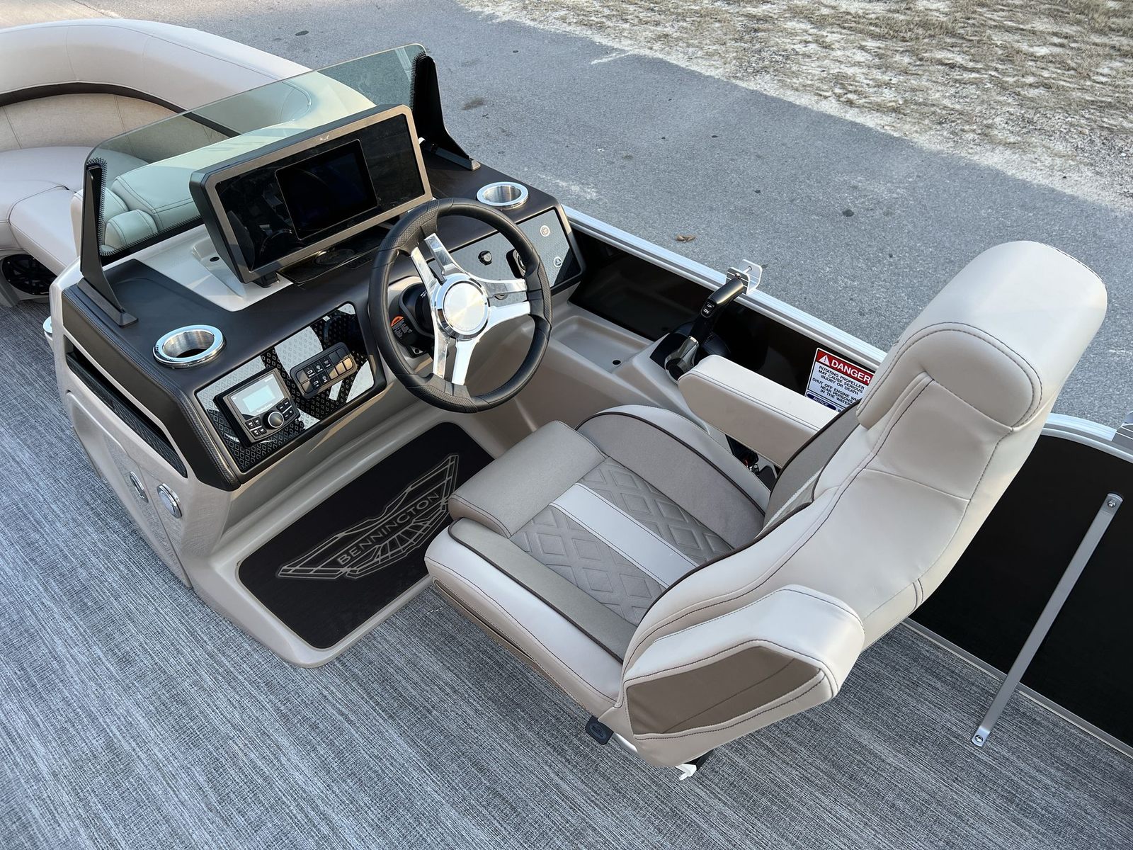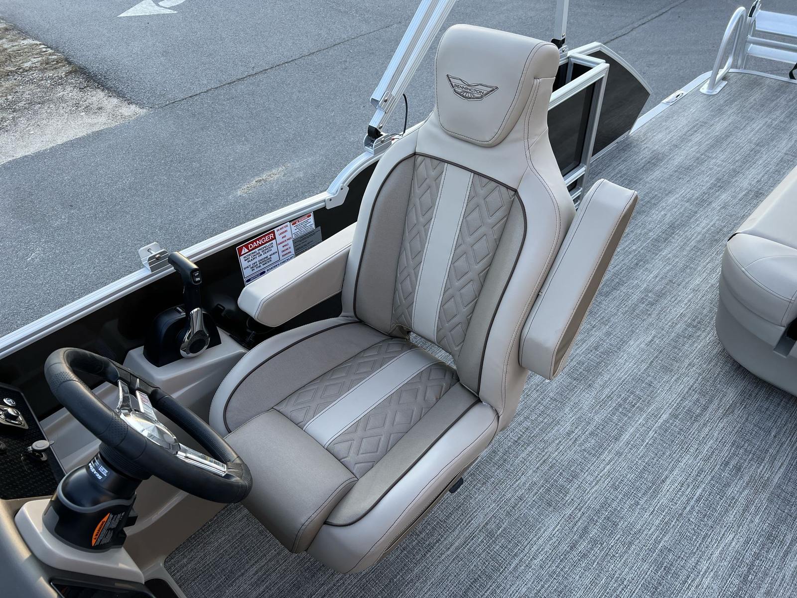 The 2025 Bennington 22 MSB SPS is packed with innovative features designed to enhance your time on the water. The 12 Button Digital Switching system puts control at your fingertips, allowing you to manage onboard systems with ease. The 7" Vivid UX Touchscreen Display offers intuitive access to navigation, system monitoring, and entertainment options, ensuring you stay connected and informed throughout your journey. The Master Power switch provides added convenience and safety, while the horn ensures you can communicate effectively on busy waterways.For added comfort and convenience, the USBP Panel with Wireless Charging Dock keeps your devices powered up and ready to go, so you never miss a moment. The panel’s Smooth Metallic Sorrel finish, accented by Smooth Metallic White, gives the helm a modern and upscale look. Chrome logos add a touch of elegance, while the Dolce Veneto upholstery offers plush seating for all your guests. The Metallic Sorrel Tweed canvas provides shade and protection from the elements, ensuring your outings are comfortable no matter the weather.