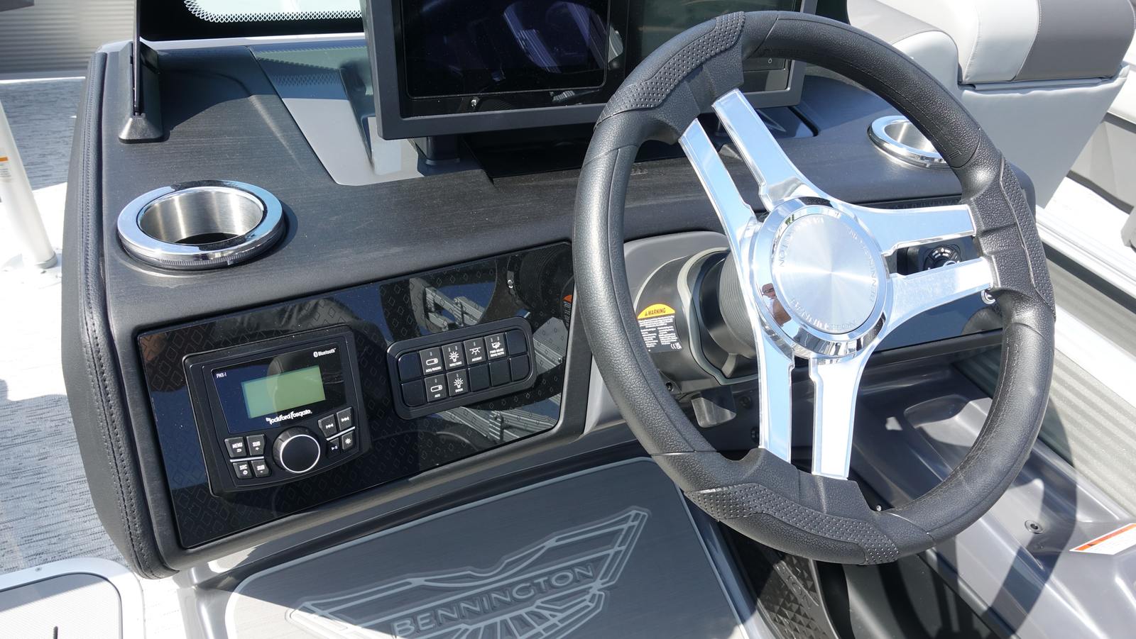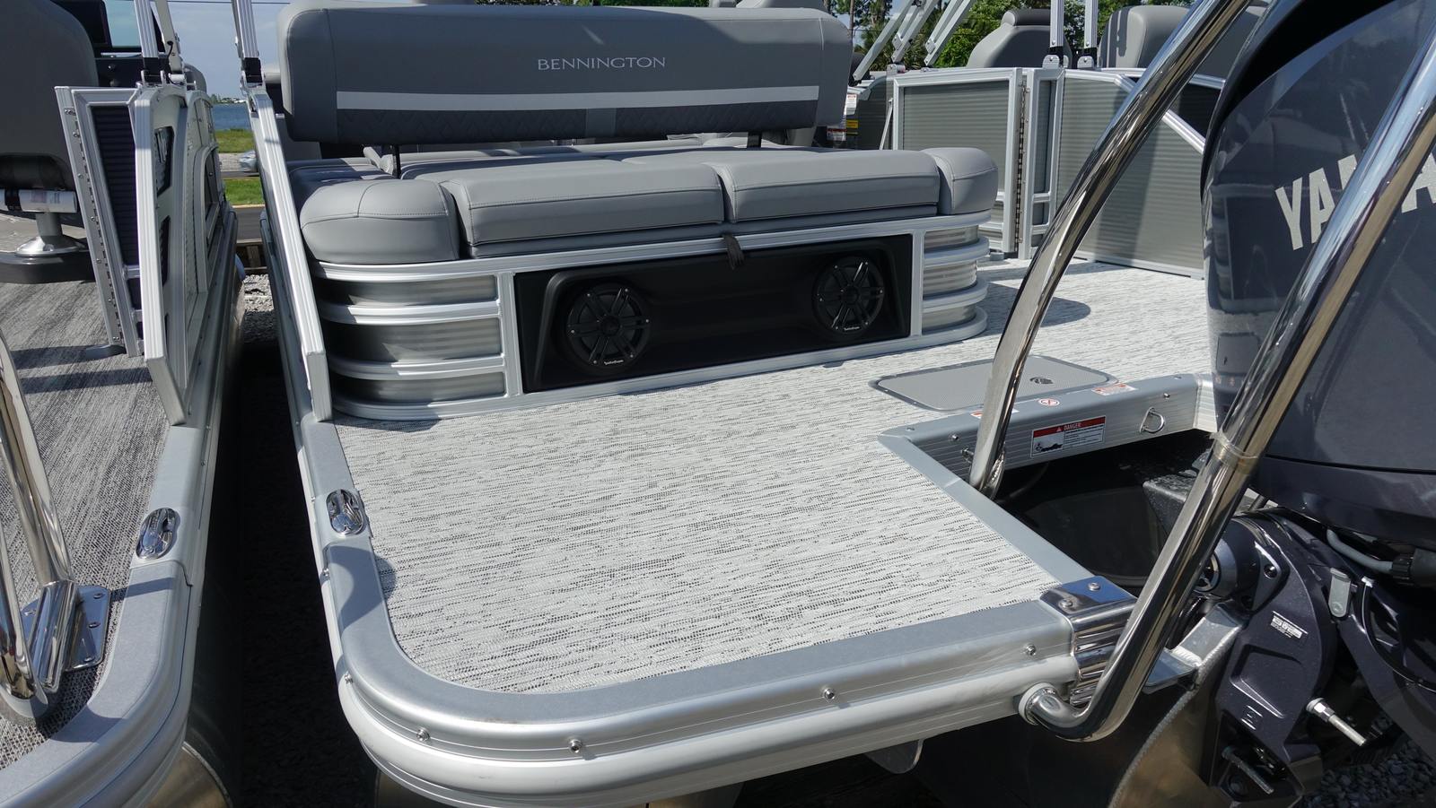 Powering the Bennington 22 MSB SPS is a single Yamaha F150XC engine, delivering an impressive 150 horsepower. This engine is celebrated for its reliability, smooth operation, and fuel efficiency, ensuring you get the most out of every outing. The Yamaha Mechanical Pre-Rig - Delete Hydraulic Cylinder and Steering - Power Hydraulic Assist work together to provide responsive handling and effortless maneuverability, even in challenging conditions. The Rough Water Package further enhances stability and control, allowing you to navigate choppy waters with confidence and ease. Whether you’re cruising at a leisurely pace or picking up speed for water sports, this Bennington boat for sale offers a dynamic and enjoyable ride.