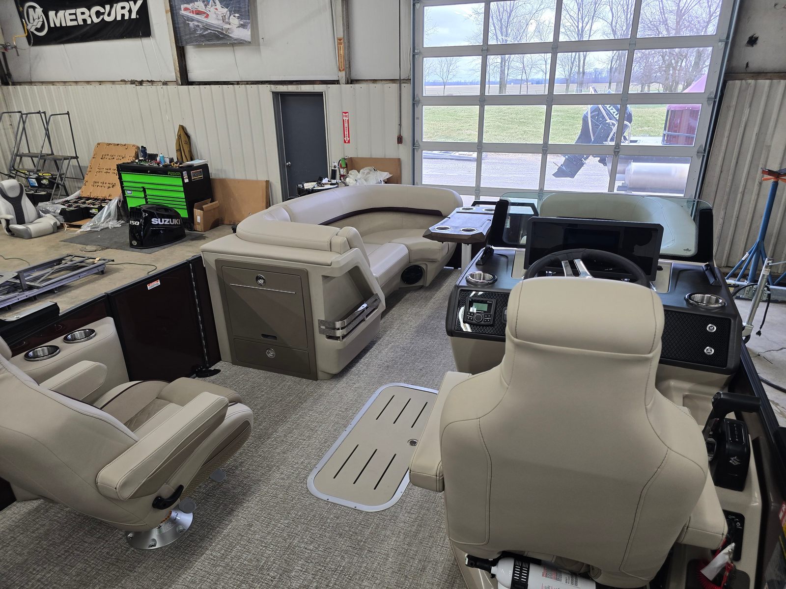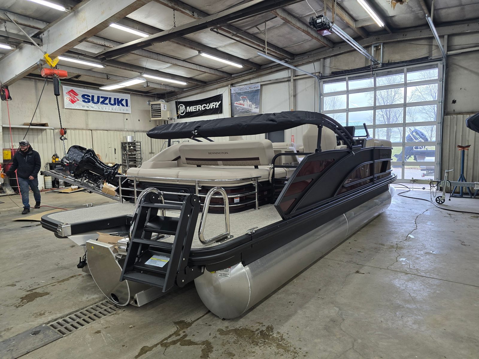 The Bennington 22 MSB SPS pontoon is as practical as it is enjoyable. Its generous deck space offers plenty of room for coolers, gear, and water toys, making it easy to prepare for a day of adventure. The single battery switch with fuse simplifies power management, while the water fuel separator ensures your engine runs smoothly and efficiently.Docking and maneuvering are a breeze thanks to the responsive Suzuki engine and thoughtfully designed controls. Whether you’re navigating busy marinas or exploring quiet coves, this pontoon boat offers the agility and ease of use that make every trip enjoyable. The elevated console provides excellent visibility, enhancing safety and confidence on the water.