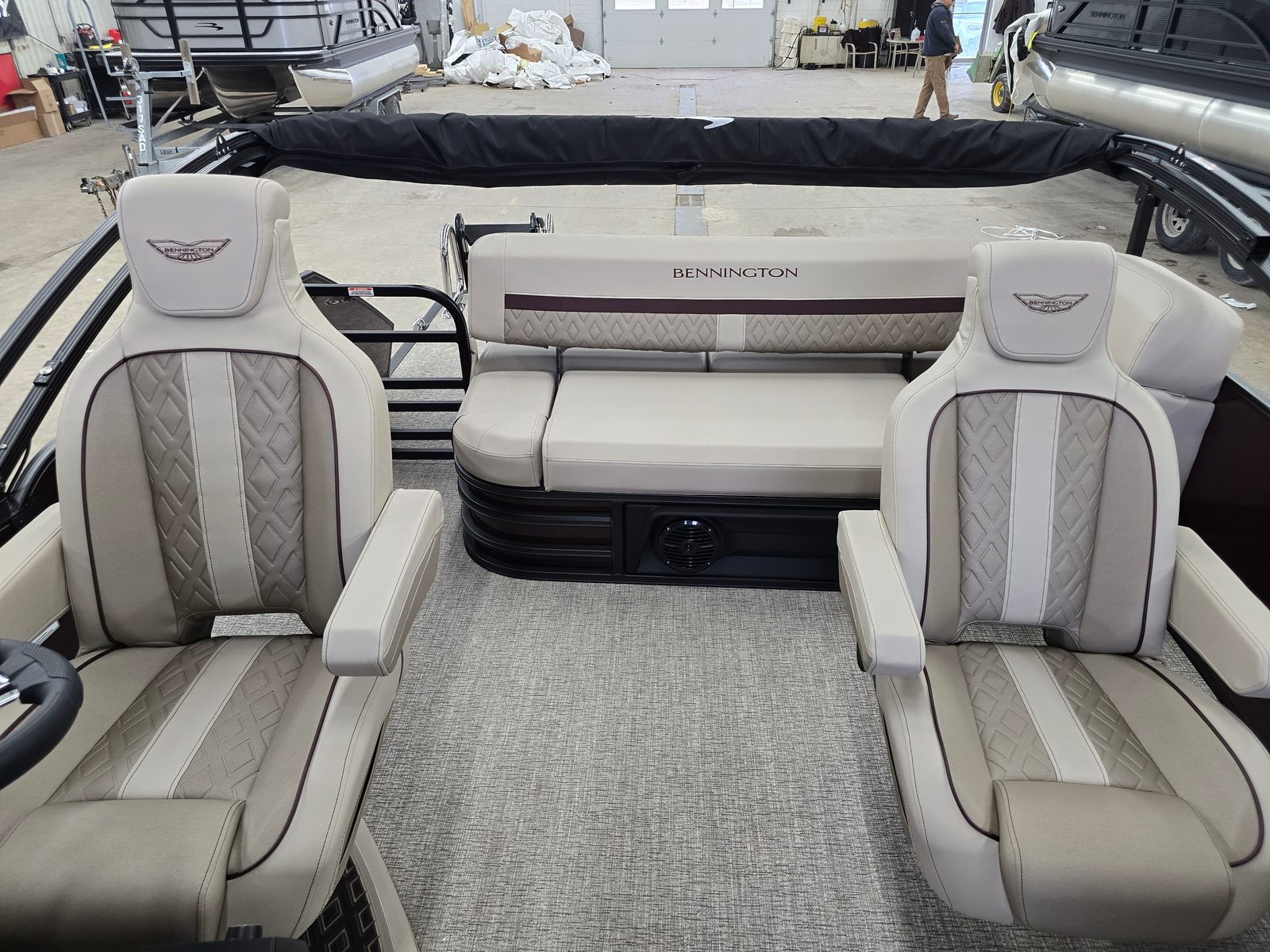 Owning the Bennington 22 MSB SPS pontoon means embracing a lifestyle of relaxation, fun, and social connection. The spacious layout is perfect for hosting gatherings, whether you’re sharing a meal, playing games, or simply soaking up the sun. The plush Dolce Veneto seating invites you to unwind in comfort, while the elevated console ensures the captain enjoys both style and superior control.The electric power top Bimini makes it easy to adapt to changing weather, providing shade and protection when you need it most. The removable flag pole with American flag adds a festive touch to your adventures, making every outing feel like a celebration. With its smooth handling and powerful engine, this Bennington boat for sale is designed to create lasting memories on the water.