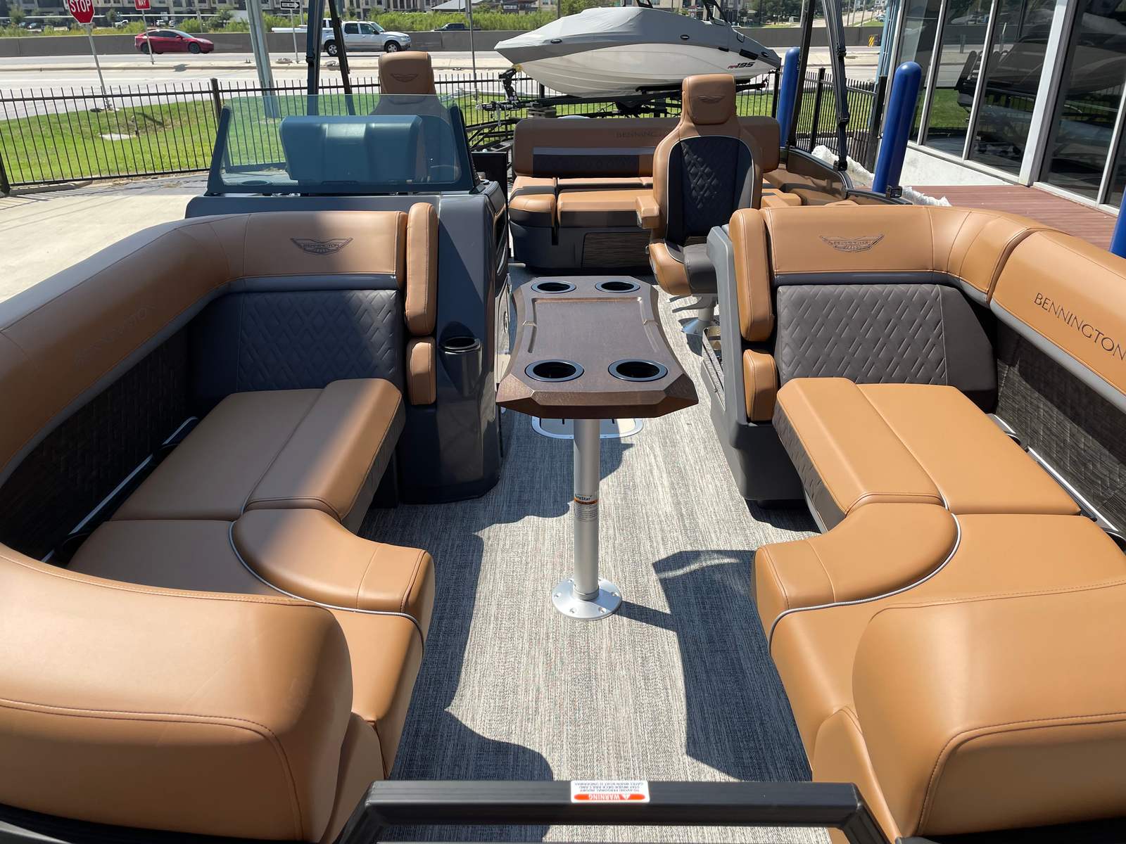 The 2026 Bennington 22 MSB SPS is a testament to Bennington’s commitment to quality and innovation. Measuring an impressive 24.25 feet in length, this pontoon provides ample space for relaxation, entertainment, and unforgettable days on the water. Its sleek design is complemented by premium finishes and modern touches, making it a top choice for those who demand both aesthetics and functionality in their pontoon boat.