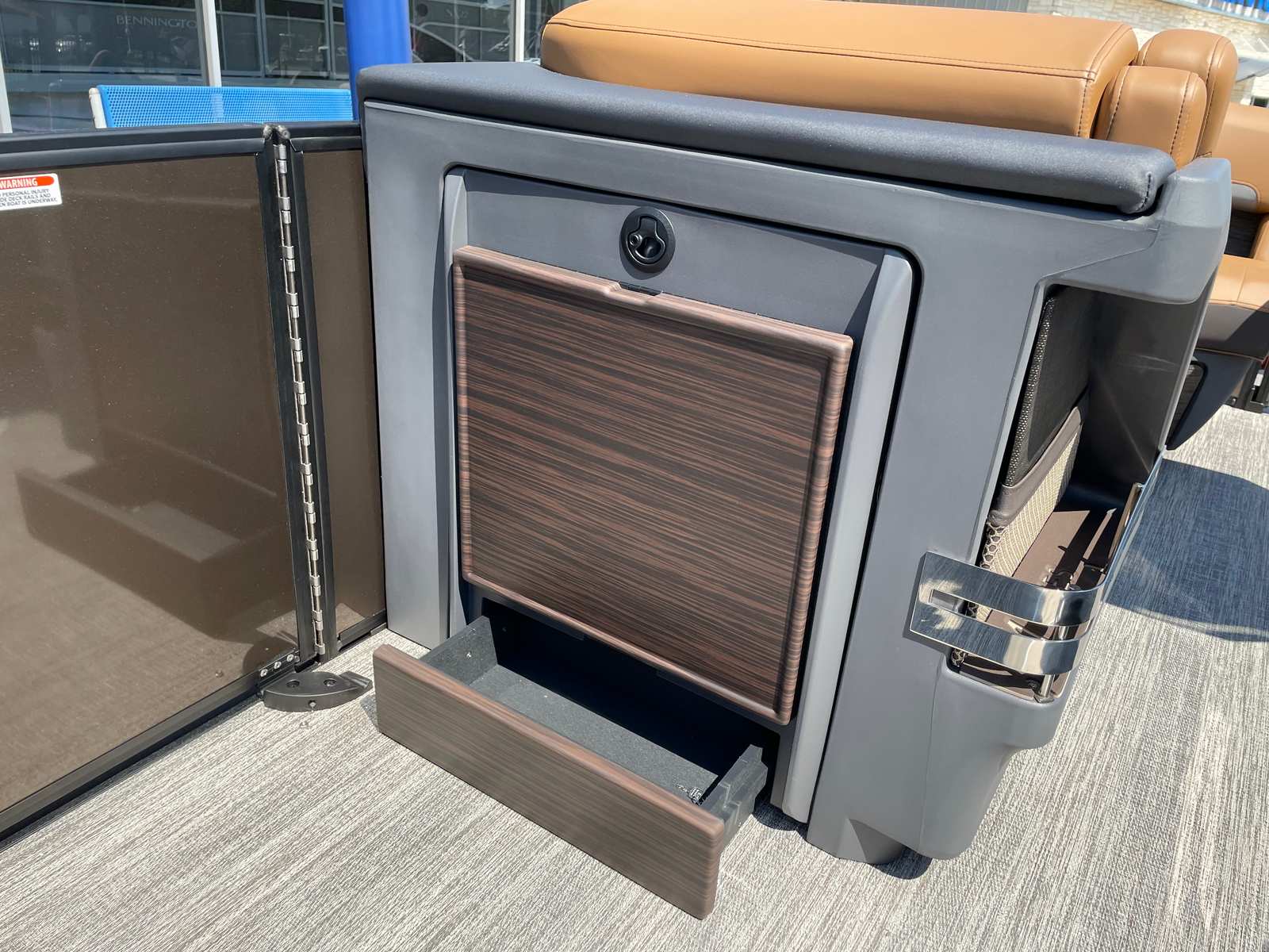 Practicality meets luxury in the Bennington 22 MSB SPS. The dual battery system ensures reliable power for all your onboard electronics and accessories, so you can focus on having fun without interruption. The efficient engine and thoughtful design contribute to excellent fuel economy, allowing you to spend more time on the water and less time refueling.Docking and maneuvering are made easier thanks to the responsive handling and well-planned layout. The toekick lights provide added visibility during low-light conditions, enhancing safety for you and your guests. With ample space for storage, you can bring along all your essentials for a full day of adventure, from water toys to picnic supplies.