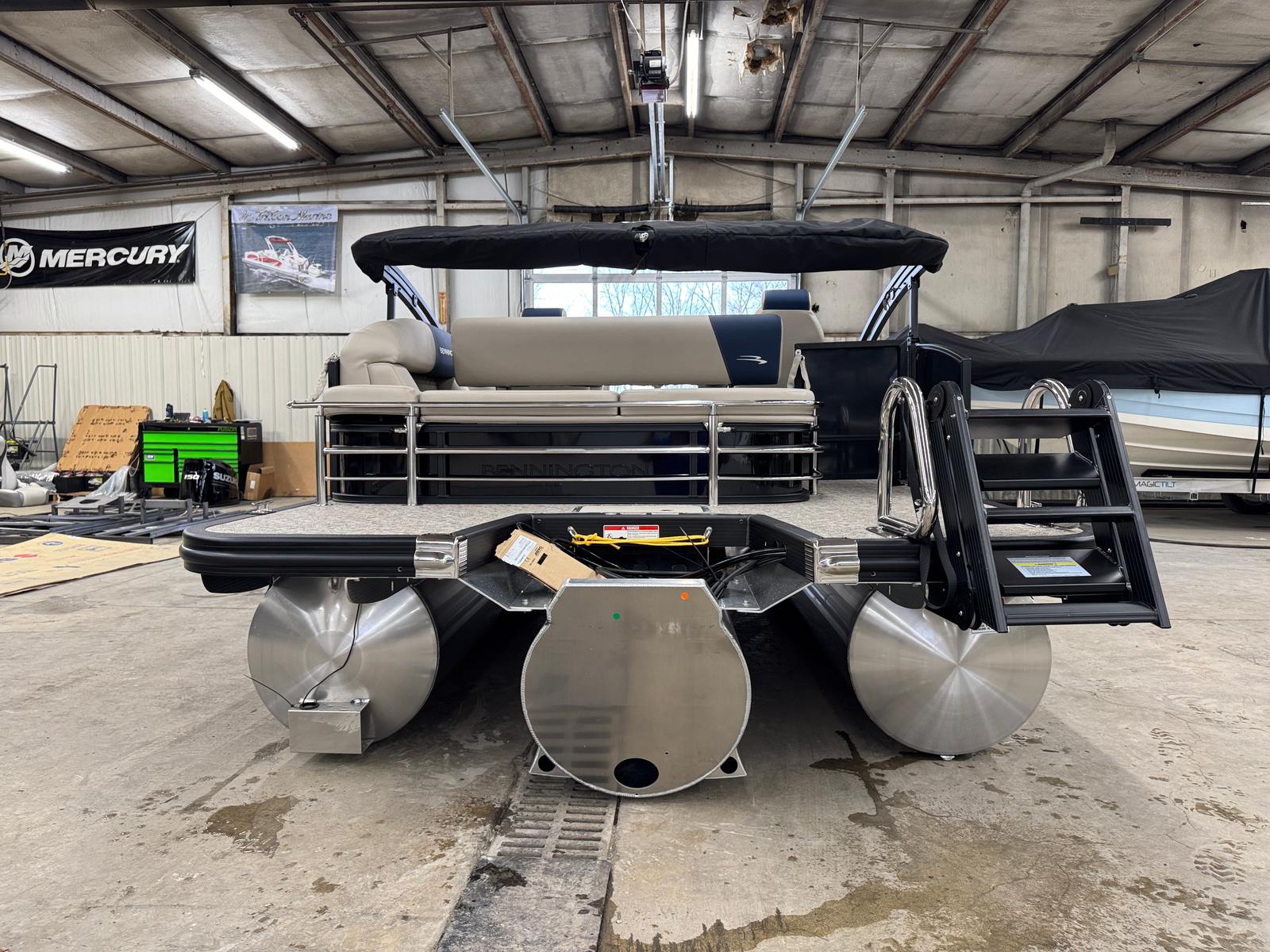 Owning a Bennington 22 SSB SPS pontoon boat means unlocking a world of fun and relaxation. The spacious deck layout is perfect for socializing, allowing you to host gatherings, enjoy meals, or simply lounge in comfort. The plush seating and thoughtful design create an inviting atmosphere, making every outing feel like a special occasion. Whether you’re soaking up the sun, taking a refreshing swim, or enjoying a sunset cruise, this pontoon boat offers the ideal setting for making memories with family and friends.The advanced engine and fuel systems ensure that your time on the water is worry-free, with reliable performance and efficient operation. The electric power top makes it easy to adjust your shade on the fly, so you can stay comfortable no matter the weather. With its stylish accents and premium materials, the Bennington 22 SSB SPS is as much a pleasure to look at as it is to own.