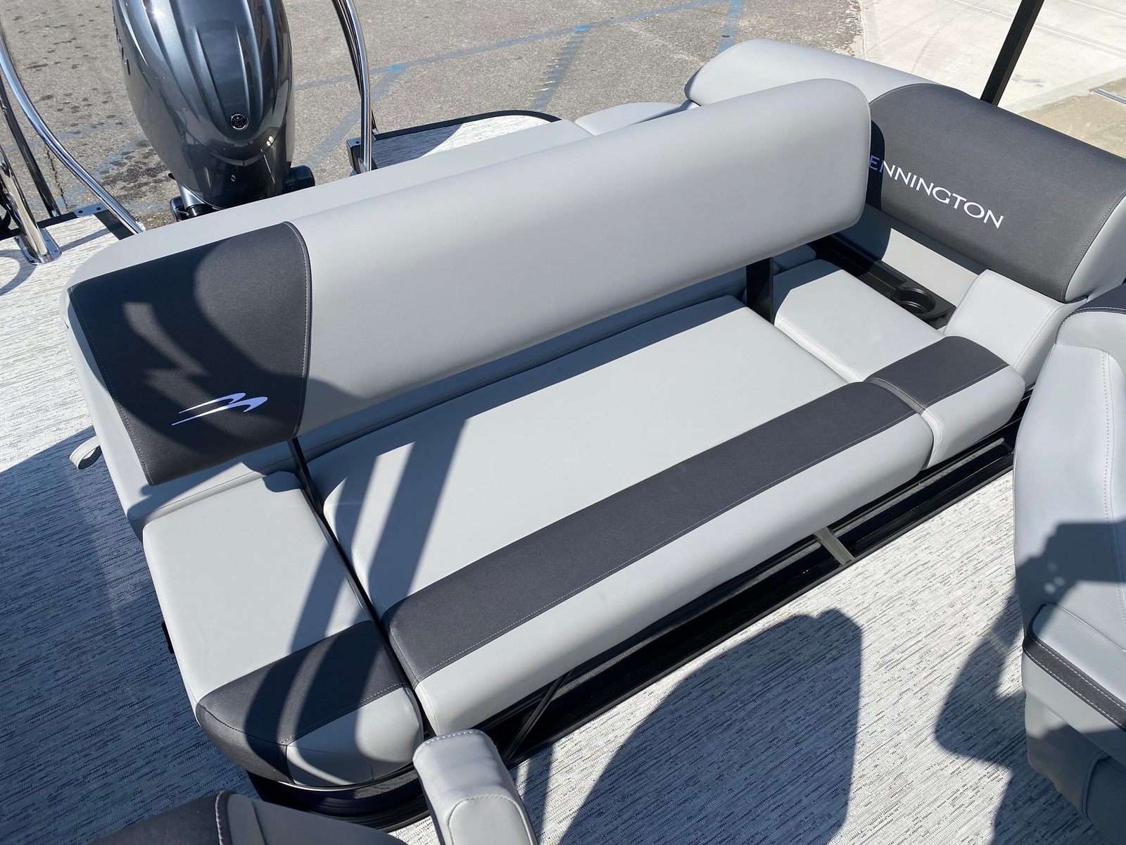 The Bennington 22 SSB SPS is as practical as it is enjoyable. Its nearly 23-foot length provides ample storage for all your gear, from water sports equipment to picnic supplies. The efficient deck layout makes it easy to move around the boat, while the single switch battery system simplifies power management, so you can focus on having fun instead of worrying about technical details.Docking and maneuvering are a breeze thanks to the responsive Yamaha engine and thoughtfully designed helm controls. Whether you are an experienced boater or new to pontoon ownership, you will appreciate the ease of handling and low-maintenance features that make every outing stress-free. The durable canvas provides reliable protection from sun and rain, ensuring your boat stays in top condition for years to come.
