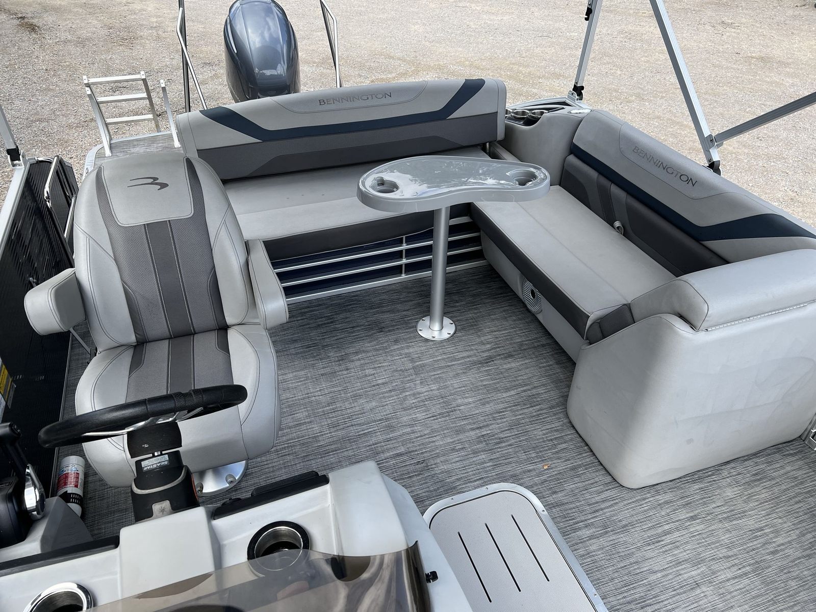 The 2021 Bennington 22 Ssbx Pontoon is a versatile and spacious vessel, measuring 21.5 feet in length. This model is designed to maximize your enjoyment on lakes, rivers, and calm coastal waters, making it an ideal choice for those who value both relaxation and recreation. With its sleek lines and modern design, the Bennington 22 Ssbx stands out among pontoon boats for sale, offering a premium boating experience at an attractive value.This pontoon is in used condition, but with only 75 engine hours, it has plenty of life left for new adventures. Bennington’s reputation for quality craftsmanship and attention to detail is evident throughout, ensuring that this boat remains a top contender for anyone seeking a reliable and stylish pontoon boat for sale.