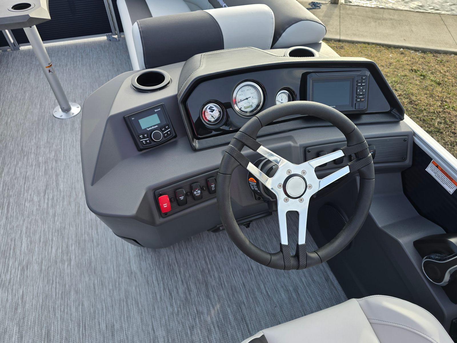 At the heart of the 2026 Bennington 22 SSR SPS is a powerful Suzuki DF150ATX5 engine, delivering an impressive 150 horsepower. This robust engine ensures smooth acceleration, reliable cruising speeds, and the capability to handle a variety of water conditions with ease. The integration of Yamaha Mechanical Pre-Rig further enhances the boat’s operational efficiency, providing seamless control and responsive handling. Whether you are towing water toys, cruising across the lake, or simply enjoying a leisurely ride, the performance of this Bennington pontoon boat is sure to impress.