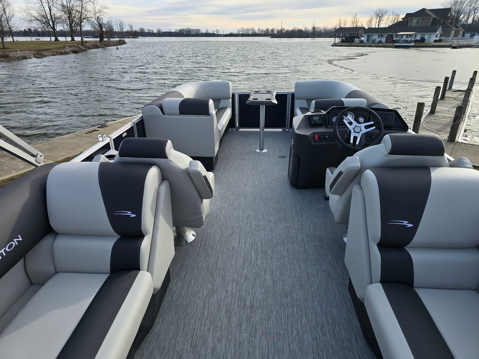 The Bennington 22 SSR SPS stands out with a suite of thoughtfully designed features that elevate both style and function. The No Accent - Textured finish and Ironwood Dash Accent create a sophisticated and modern aesthetic, while the Leon Light Silver exterior and Dimensional Brushed Silver Logos add a touch of elegance and distinction. Inside, the Interior Accent - Slate Simtex upholstery offers both comfort and durability, ensuring your guests can relax in style.A Captain’s Recliner Mid Snap provides the ultimate in comfort for the captain, making long days on the water enjoyable and fatigue-free. The wireless charger keeps your devices powered up, so you can capture every moment and stay connected throughout your adventures. For those who love water sports, the Ski Tow Bar - SPS is a game-changer, making it easy to tow skiers, wakeboarders, or inflatable tubes for hours of fun. Every detail, from the Ironwood Dash Accent to the Dimensional Brushed Silver Logos, reflects Bennington’s commitment to quality and craftsmanship.