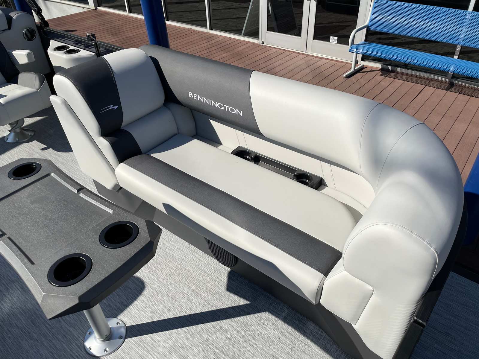 At the heart of the Bennington 22 SSR SPS is a single, robust engine delivering 150 horsepower. This powerful setup ensures that you have all the performance you need for a variety of on-water activities. Whether you are gliding across calm waters or picking up speed for a thrilling ride, the 150 HP engine provides responsive acceleration and reliable power. The advanced engineering behind this pontoon boat guarantees a smooth and quiet ride, making every outing enjoyable for both the captain and passengers. With this level of performance, you can confidently explore new destinations, tow water toys, or simply cruise in style.