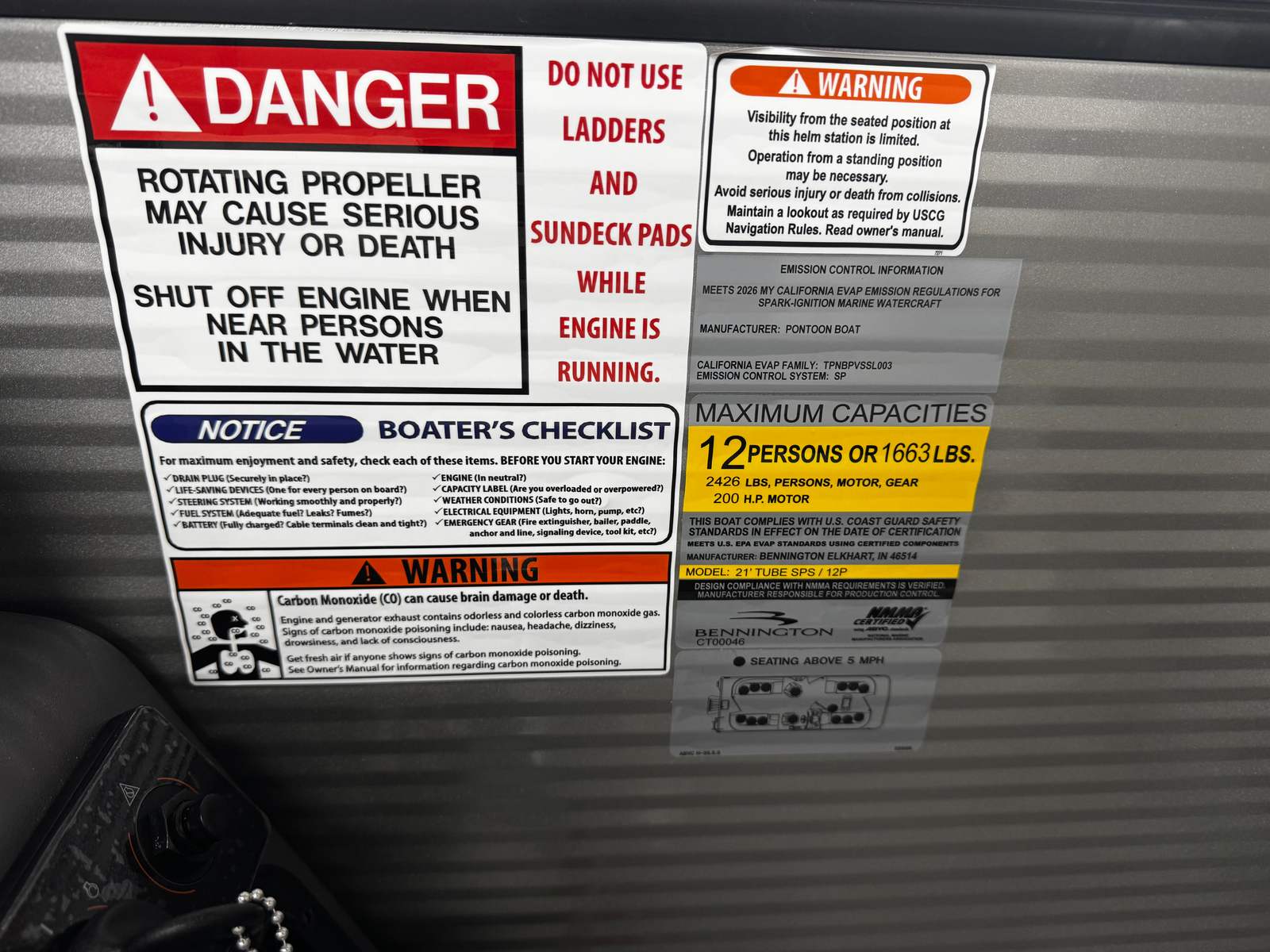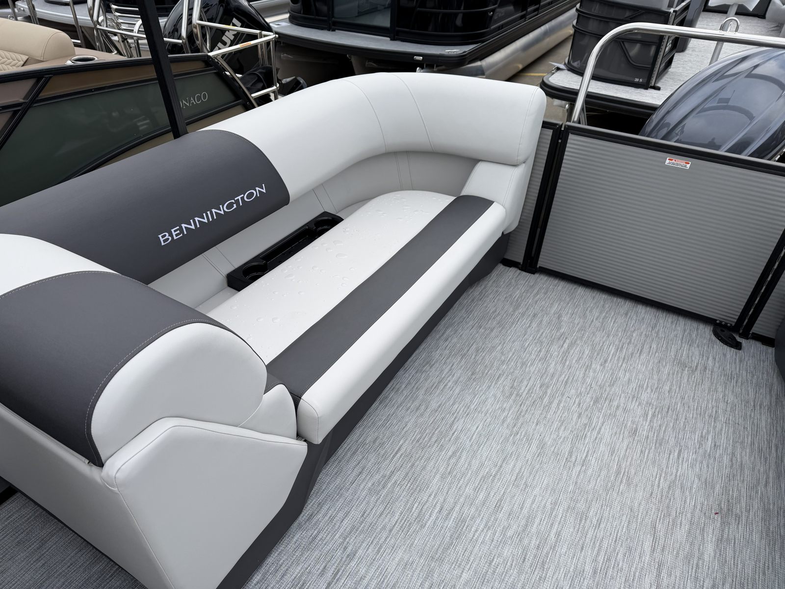 The 2026 Bennington 22 SSR SPS is loaded with features designed to enhance your boating experience. The Metallic Silver panel and canvas create a cohesive, upscale appearance, while the No Accent – Textured finish adds a touch of understated elegance. The Ironwood Dash Accent brings warmth and style to the helm, making every moment at the wheel a pleasure. For added convenience, a wireless charger is integrated into the design, keeping your devices powered up and ready for action.The Blackout Luxe Package elevates the boat’s aesthetic with sleek, modern accents, ensuring you stand out wherever you go. Watersports enthusiasts will appreciate the Ski Tow Bar – SPS, which makes it easy to enjoy tubing, wakeboarding, or skiing with family and friends. The spacious Bimini – 8.5X10 Blk provides ample shade, allowing you to relax in comfort even on the sunniest days.