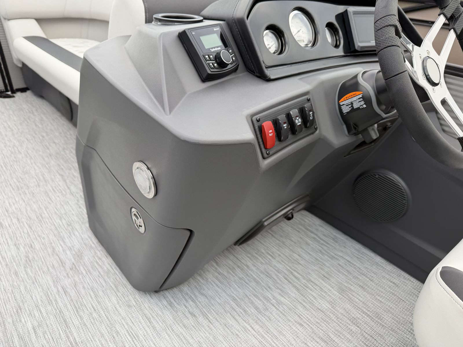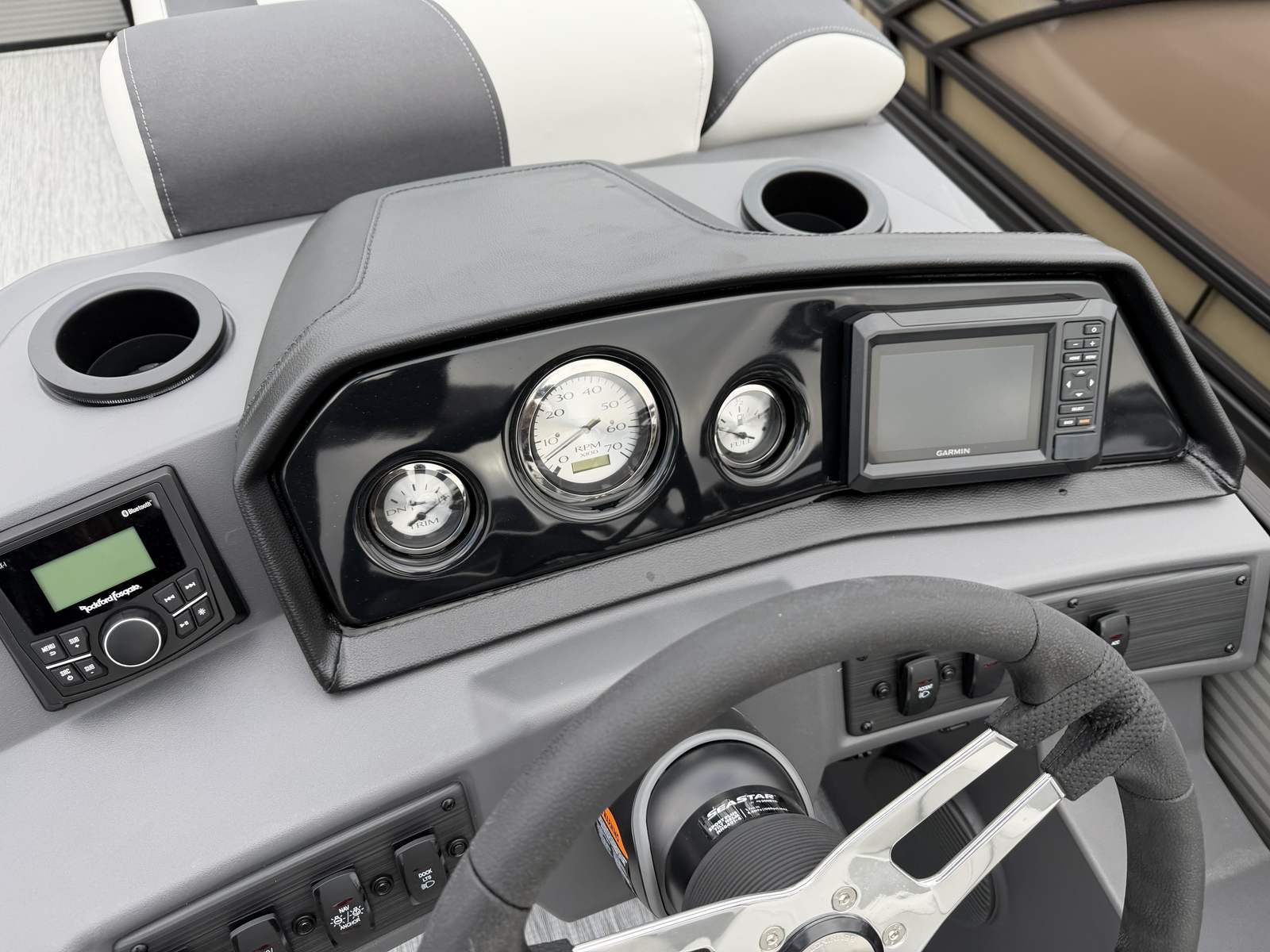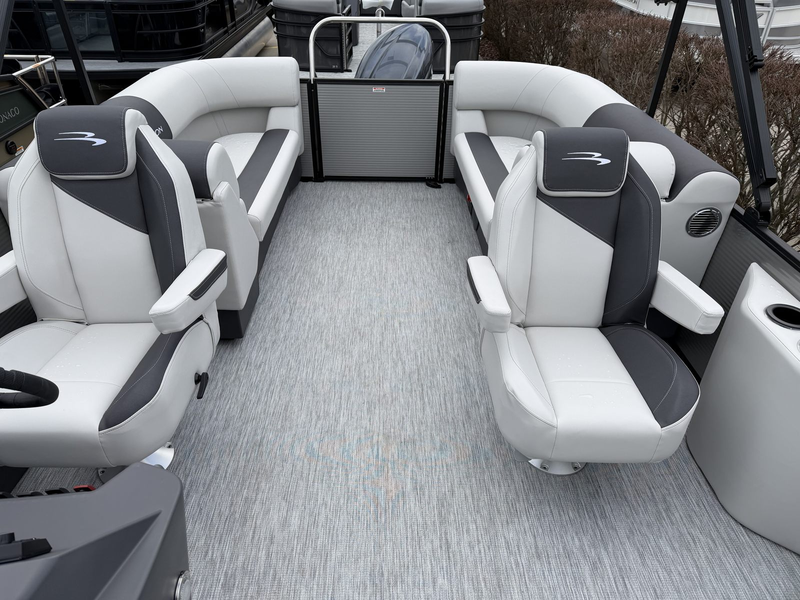 Owning the Bennington 22 SSR SPS pontoon means embracing a lifestyle of fun, relaxation, and connection. The generous layout offers plenty of room for guests, making it ideal for social gatherings, family outings, or romantic escapes. The plush seating and thoughtful design ensure everyone on board enjoys maximum comfort, whether you are lounging in the sun or sharing a meal on the water.The powerful Yamaha engine delivers exhilarating performance, while the advanced features make every trip effortless and enjoyable. The wireless charger keeps your devices ready for music, navigation, or capturing memories, and the stylish finishes create an inviting atmosphere that enhances every outing. With the Blackout Luxe Package and Ironwood Dash Accent, you will enjoy a boat that is as beautiful as it is functional.