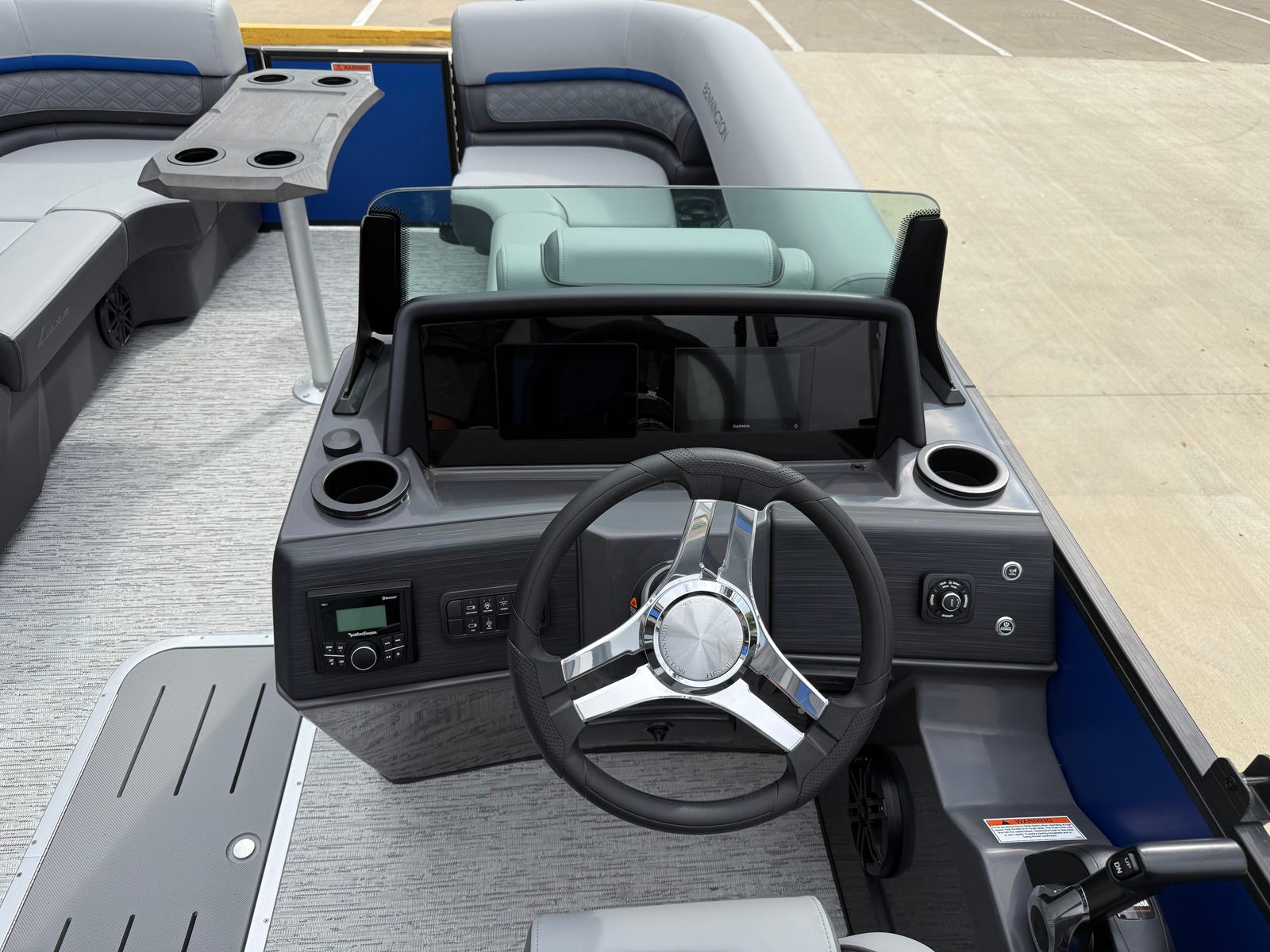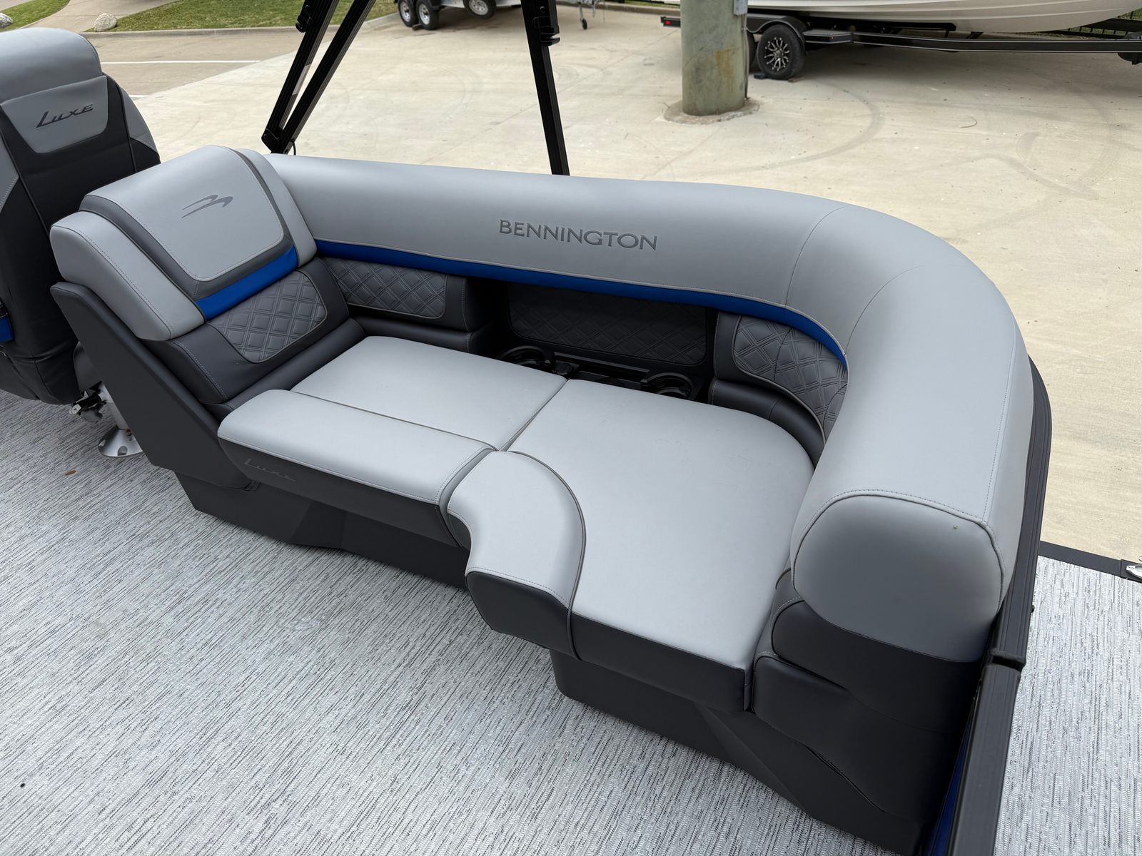 The Bennington 22 SSR SPS is packed with features that elevate your boating experience. Its spacious deck layout offers ample room for lounging, socializing, and entertaining. The plush seating is designed for maximum comfort, allowing you and your guests to relax in style. High-quality materials and finishes are used throughout, reflecting Bennington’s commitment to luxury and durability.The pontoon’s thoughtful design includes easy access points for boarding and disembarking, as well as strategically placed storage compartments to keep your gear organized and out of the way. The helm is equipped with intuitive controls, ensuring the captain has everything needed for a smooth and enjoyable ride. Every detail, from the railings to the flooring, is crafted to enhance your time on the water.