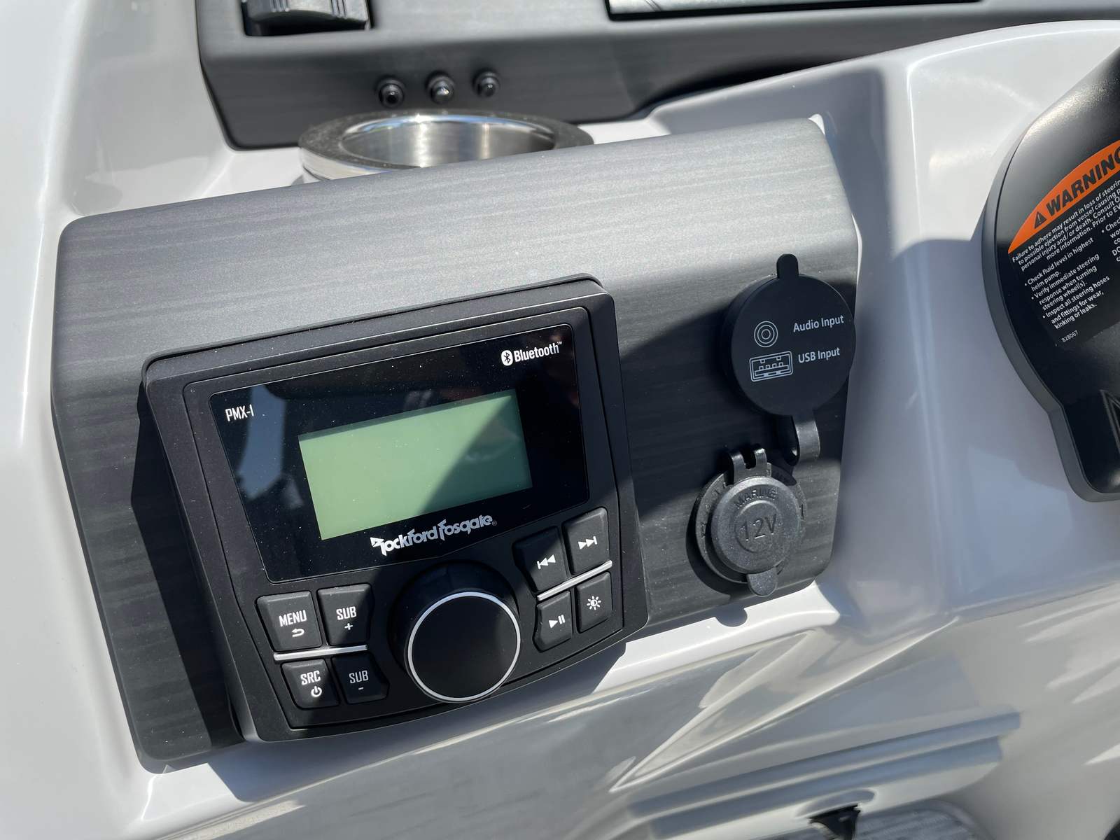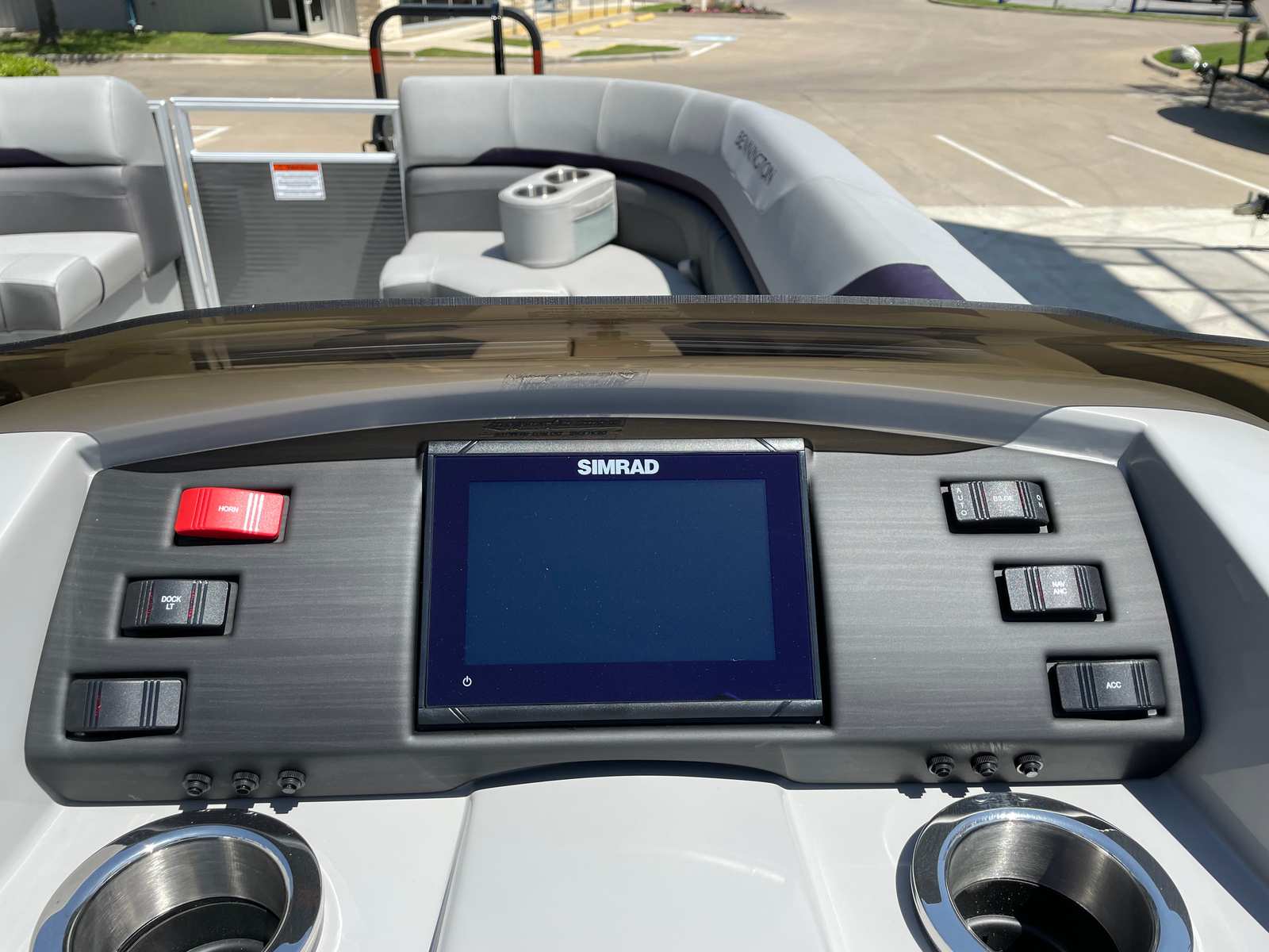 The 2025 Bennington 22 Sxsb SPS is loaded with special features that set it apart from other pontoon boats for sale. The portable armrest with stainless steel cup holders adds a touch of convenience and luxury, ensuring your favorite beverages are always within reach. Rub rail protectors safeguard the boat’s exterior, preserving its pristine appearance even after frequent docking.For those who love to set the mood, the RGB toe kick lighting and RGB controller SX allow you to customize the ambiance with vibrant, color-changing lights. The Rockford Fosgate M1 lighted speakers not only deliver premium sound quality but also enhance the atmosphere with synchronized lighting effects, making every outing feel like a celebration.The interior is adorned with Zebrawood Matte Slate accents and dimensional brushed silver logos, creating a modern and sophisticated look. Silver Simtex upholstery offers both durability and comfort, ensuring that every seat is as inviting as it is stylish. These thoughtful details make the Bennington 22 Sxsb SPS a true standout in the world of luxury pontoons.