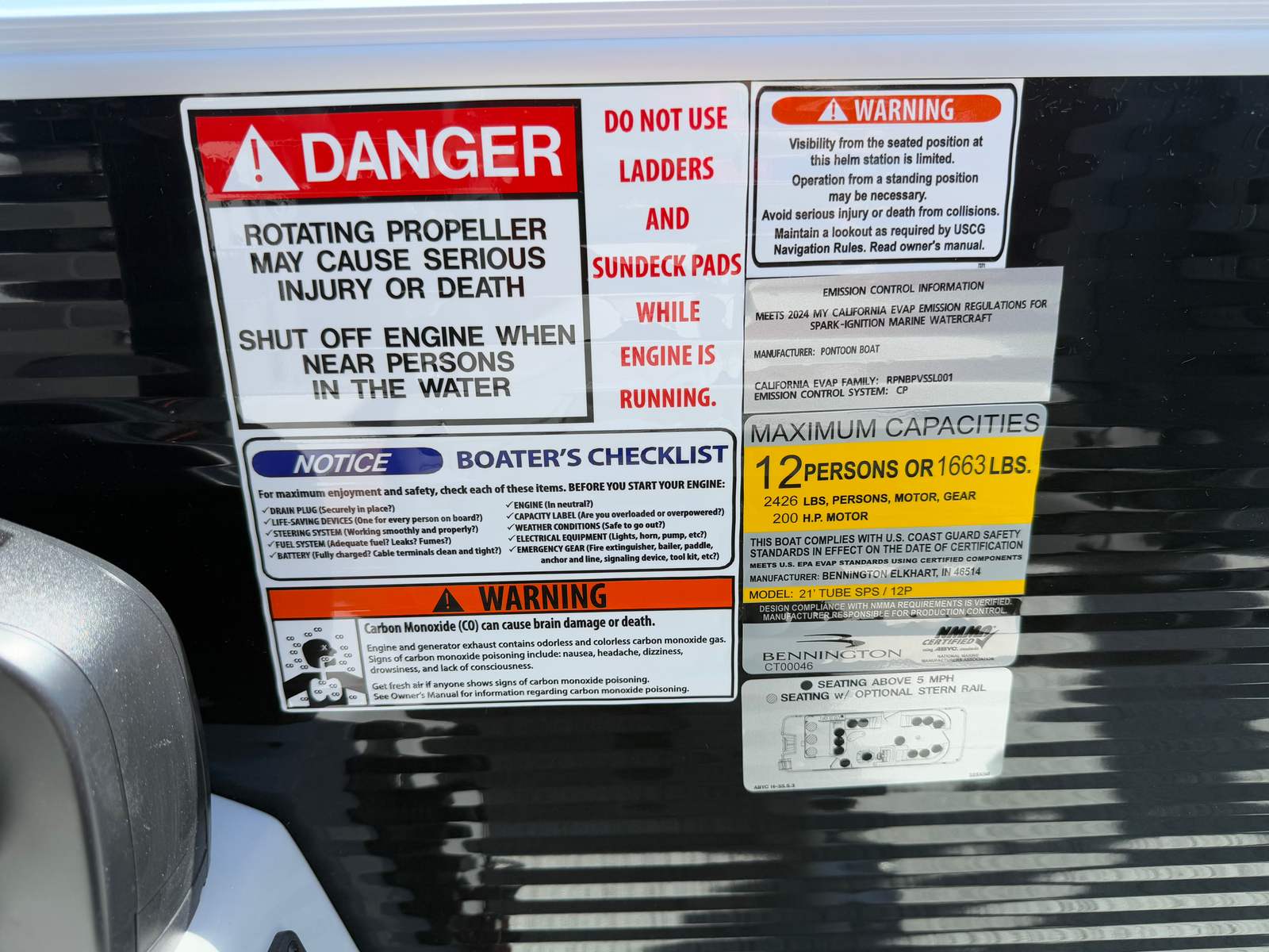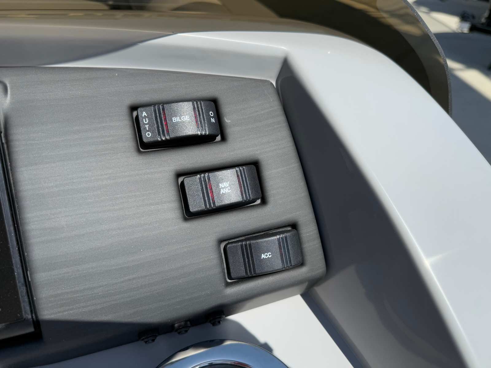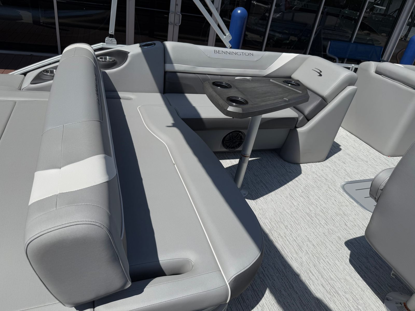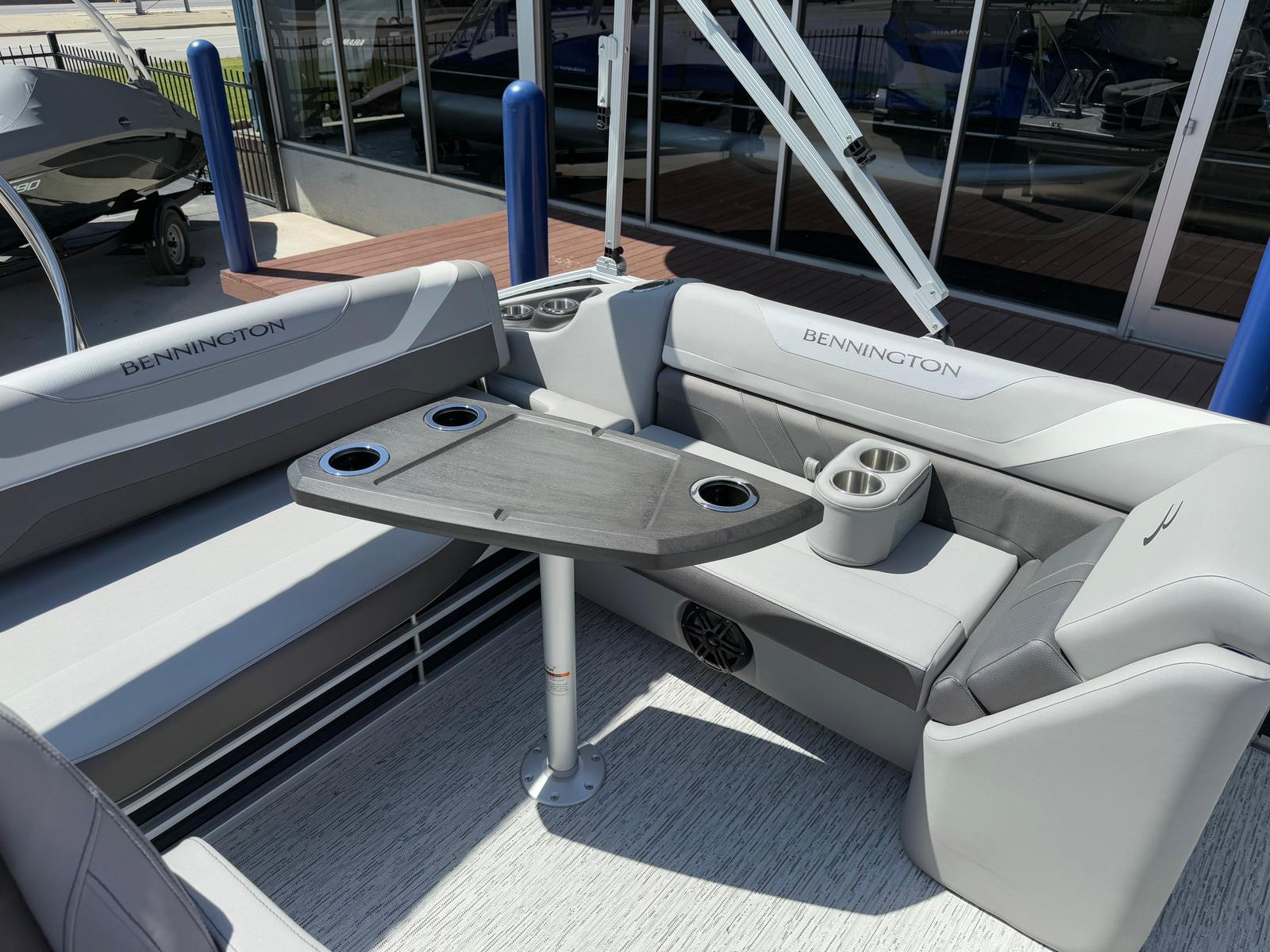 The Bennington 22 Sxsb SPS is loaded with features designed to enhance your boating experience. The portable armrest with stainless steel cup holders offers flexible comfort and convenience, allowing you and your guests to relax in style. Rub rail protectors safeguard your pontoon from everyday bumps and scrapes, preserving its pristine appearance for years to come.For those who love to set the mood, the RGB toe kick lighting and RGB controller SX provide customizable ambient lighting throughout the boat. Whether you are hosting an evening gathering or enjoying a quiet sunset cruise, you can tailor the atmosphere to suit any occasion. The Rockford Fosgate M1 lighted speakers deliver premium sound quality, ensuring your favorite playlists sound incredible on the water, while also adding a visual flair with their integrated lighting.The combination of Metallic Silver accents, Zebrawood Matte Slate finishes, and Arctic Ice White Diamante interior creates a sophisticated and inviting space. Every detail is thoughtfully designed to maximize comfort, style, and functionality, making this Bennington boat for sale a true standout in its class.